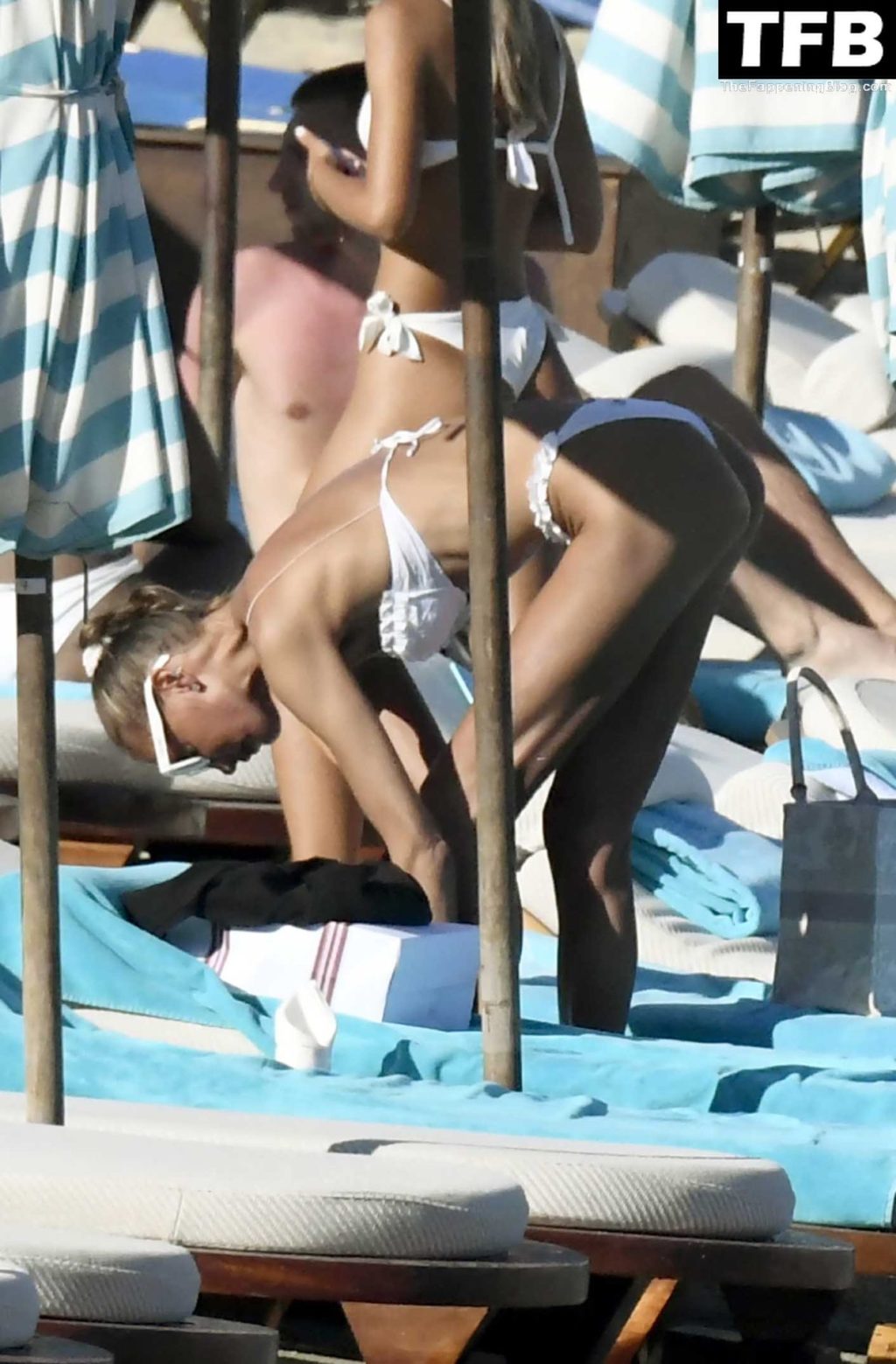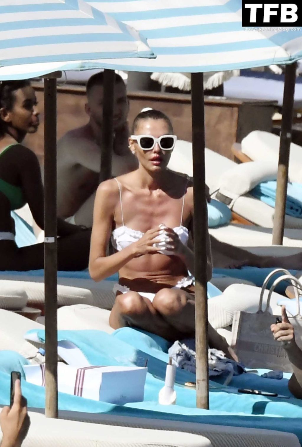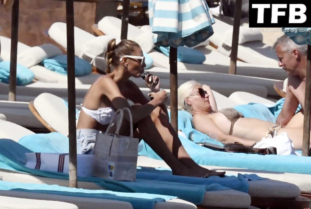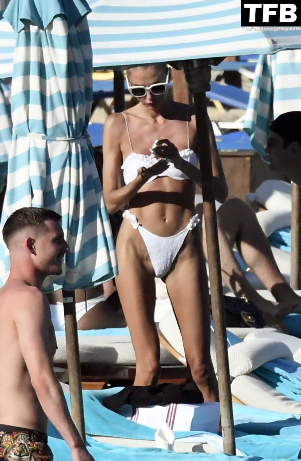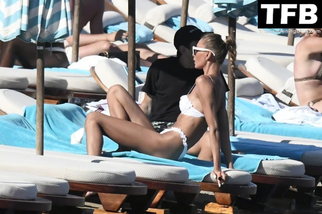 Несмотря на проблемы на родине в Украине, топ-модель из Украины Алина Байкова может расслабиться под греческим солнцем, одетая в крошечное белое бикини и белые солнцезащитные очки, демонстрируя свое модельное тело на пляже, 16.06.2022.