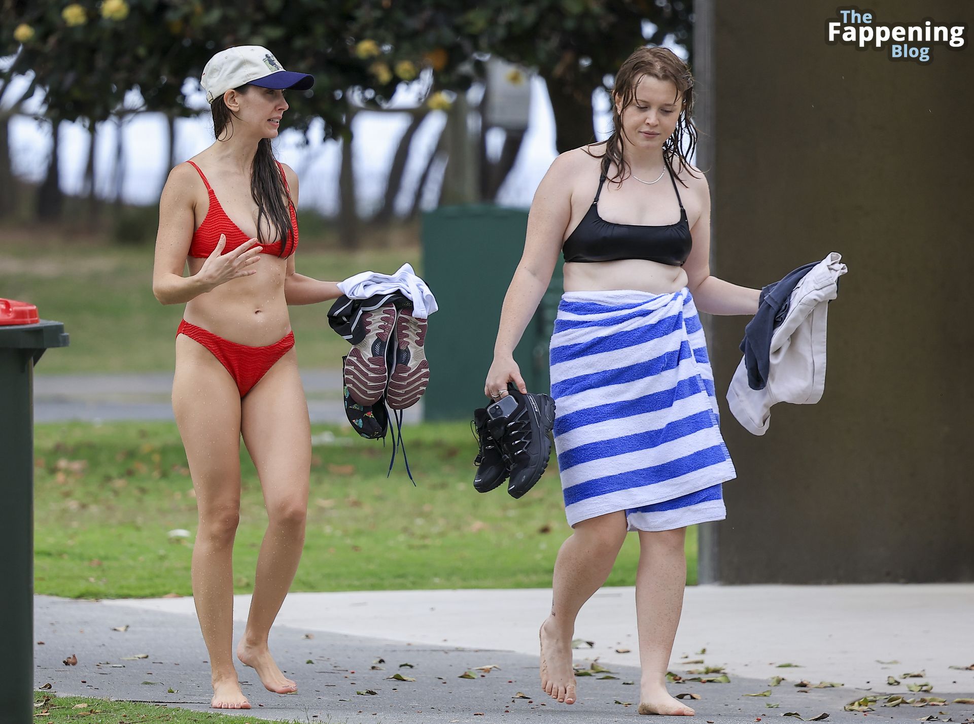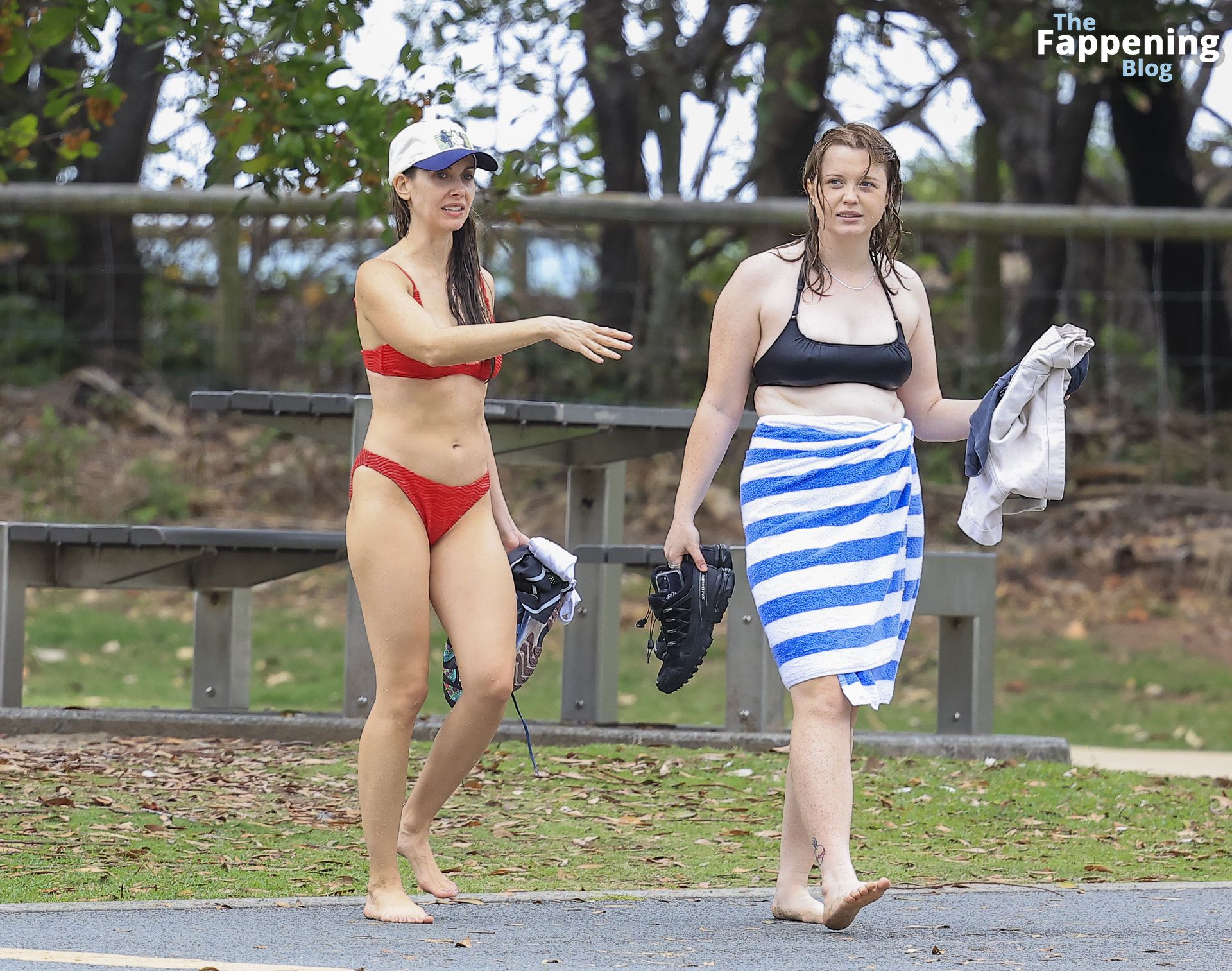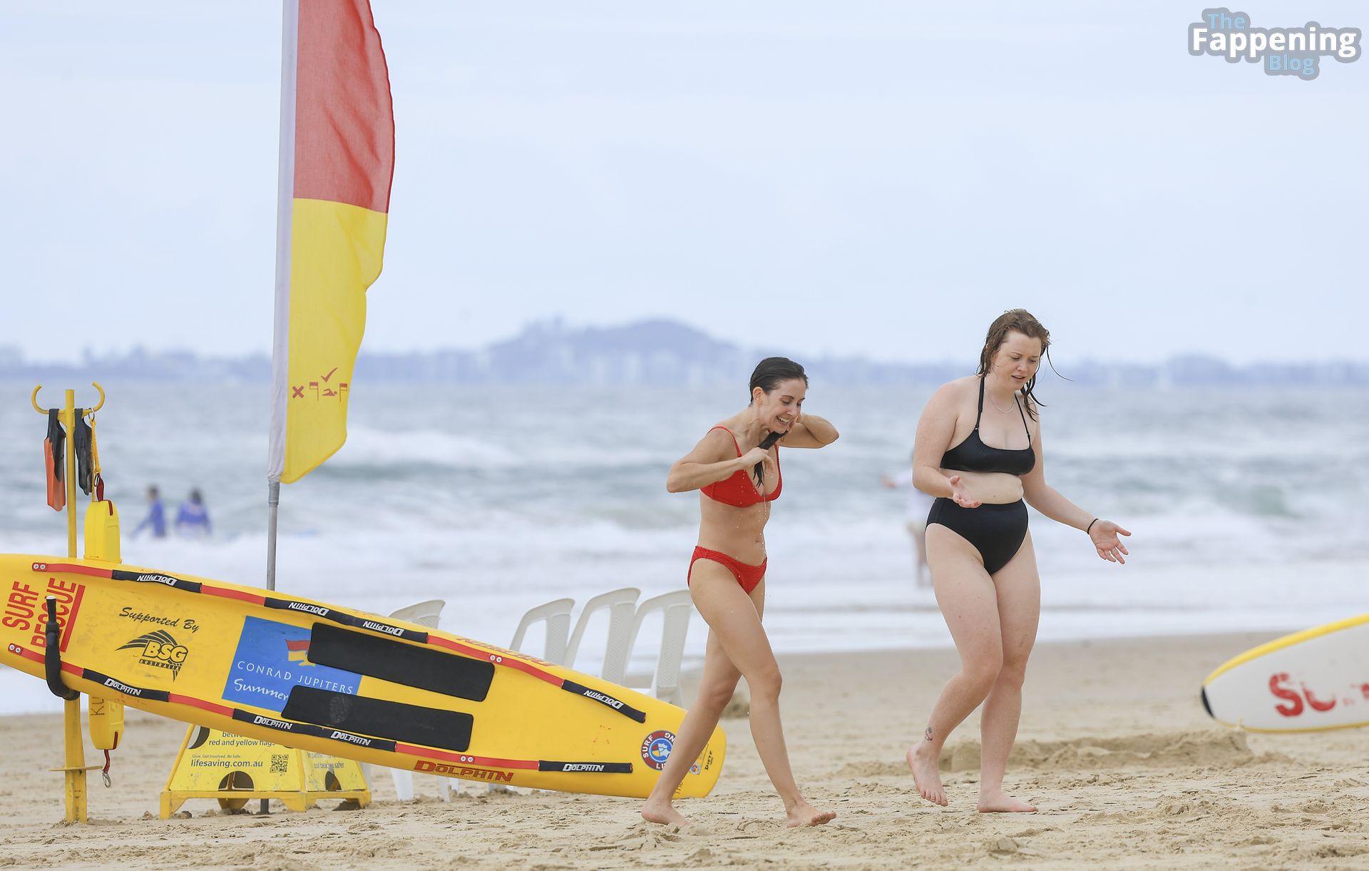Голливудская актриса Элисон Бри переживает свой момент “Спасателей Малибу” на Золотом Побережье Австралии, отправляясь на пляж в красном бикини, чтобы насладиться купанием после утренней прогулки с со-звездой сериала “Яблоки никогда не падают”, австралийской актрисой Эсси Рэндлс.