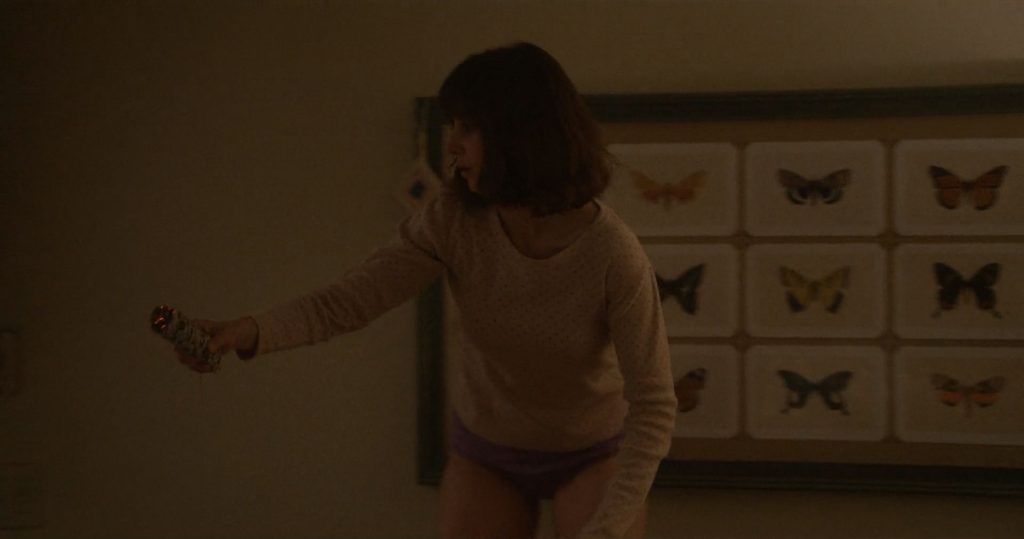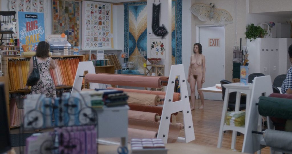 Смотрите голую сцену с Алисон Бри из фильма «Девушка с лошадью» (2020), где она полностью голая ходит по полу магазина, видны её грудь и меркин, когда она идёт вперёд, а люди смотрят на неё. Затем звезда The Fappening подходит к вешалке с одеждой и становится на колени, пока кто-то помогает ей прикрыться, завернув в ткань.