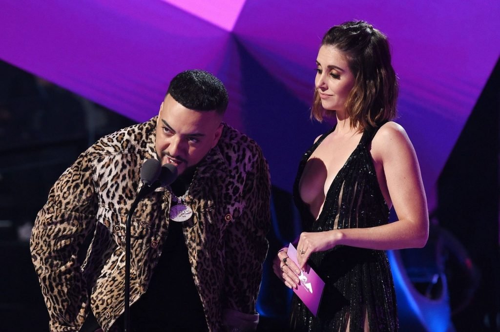 “Звезда GLOW” и The Fappening Алисон Бри демонстрирует свои сексуальные ноги и глубокое декольте на церемонии MTV Video Music Awards 2019 в Нью-Джерси, 26.08.2019.