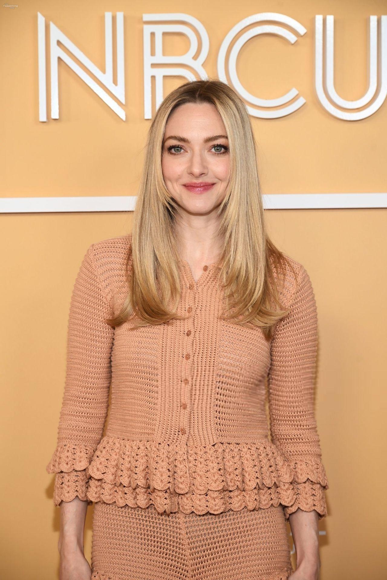 На ланче NBCU Emmy Kick-Off в Лос-Анджелесе Аманда Сейфрид, та самая королева и обладательница Эмми, показала свои потрясающие ноги. Она появилась в вязаном комплекте персикового цвета — обтягивающий жакет с рюшами и подходящие короткие шорты.