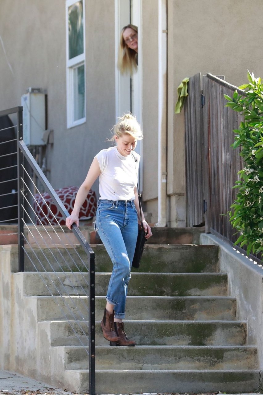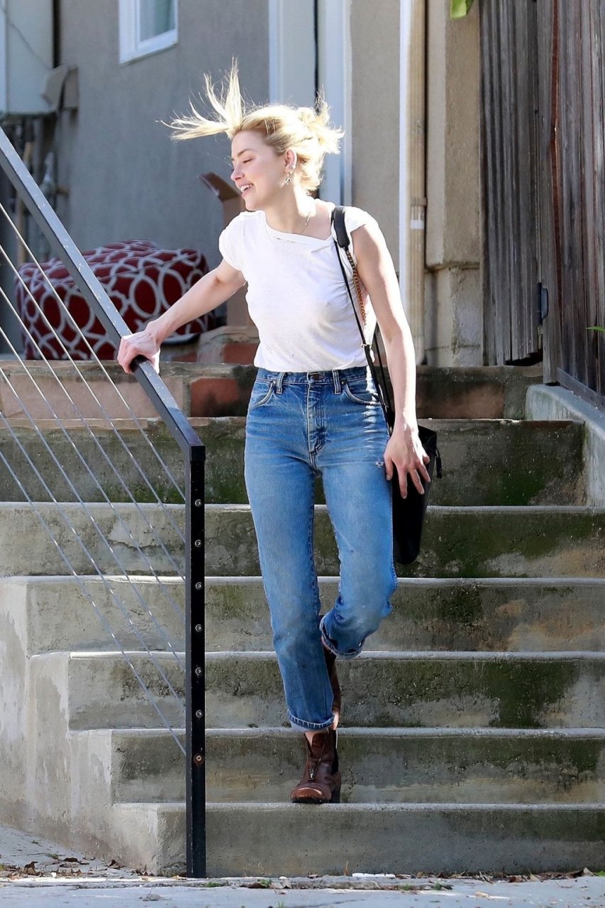 Актриса Эмбер Херд была замечена в белой футболке без бюстгальтера, посещая друга в Лос-Анджелесе, 25.03.2019.