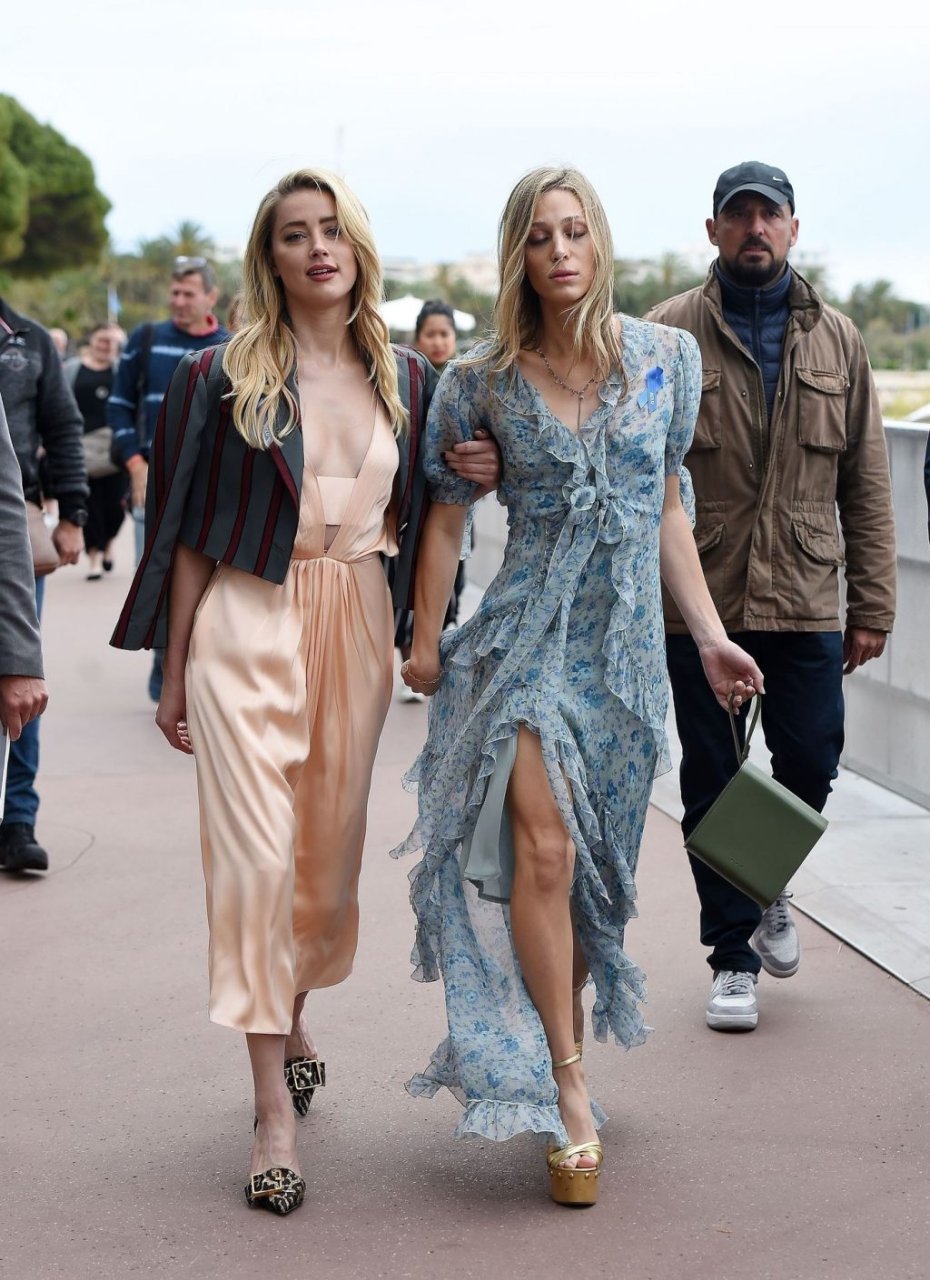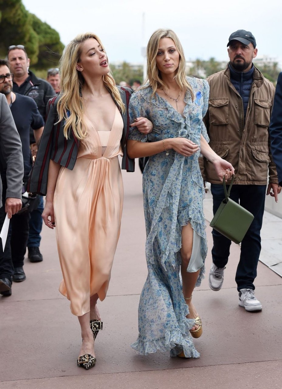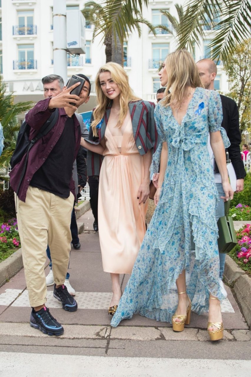 Актриса и звезда The Fappening Эмбер Херд выглядит модно в атласном платье и укороченном жакете на Променаде де ла Круазетт во время 72-го Каннского международного кинофестиваля, 17.05.2019.