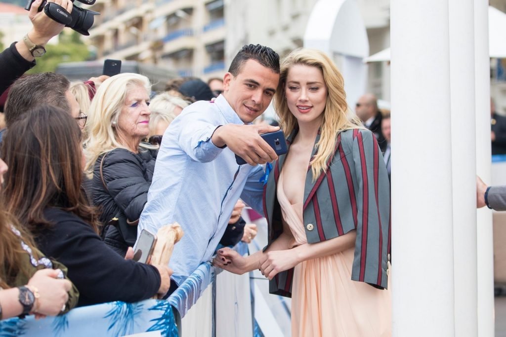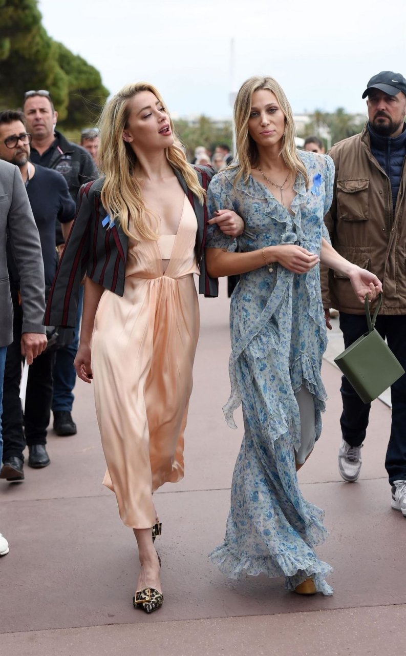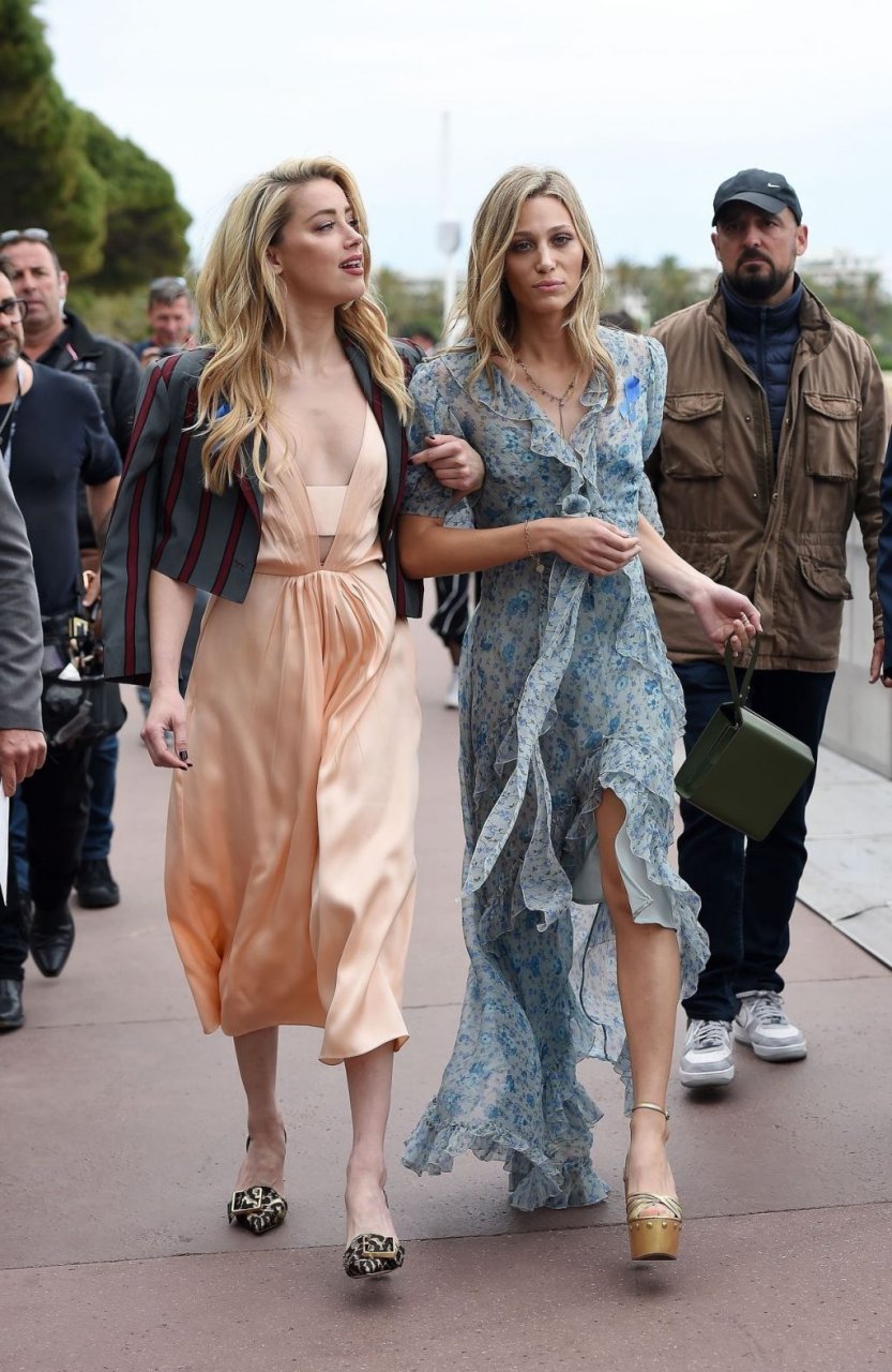 Актриса и звезда The Fappening Эмбер Херд выглядит модно в атласном платье и укороченном жакете на Променаде де ла Круазетт во время 72-го Каннского международного кинофестиваля, 17.05.2019.