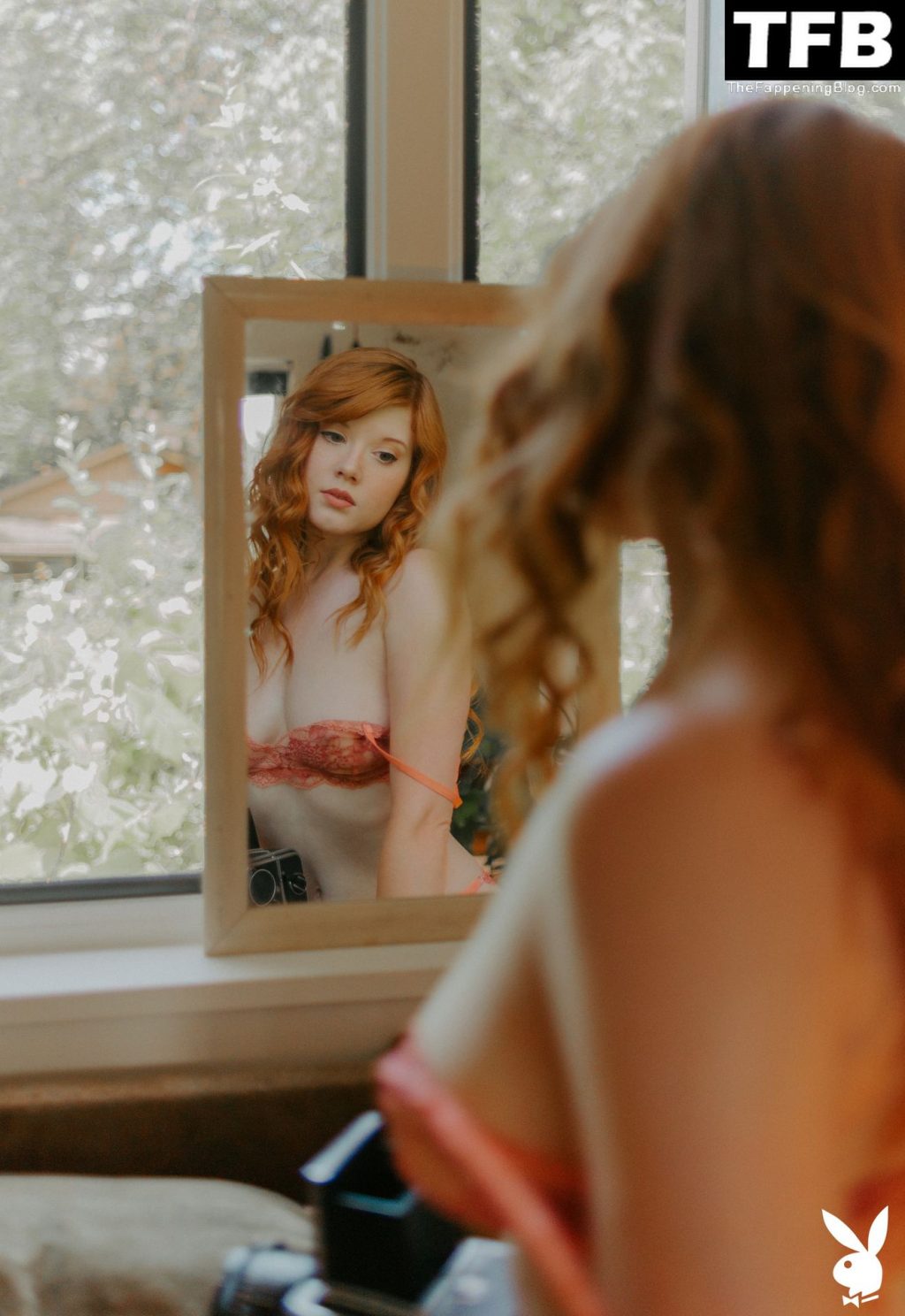 Рыжеволосая модель и фотограф Эмбер Роуз МакКоннелл позирует в нижнем белье, раздевается и демонстрирует свои достоинства в фотосессии для Playboy Plus (2020).