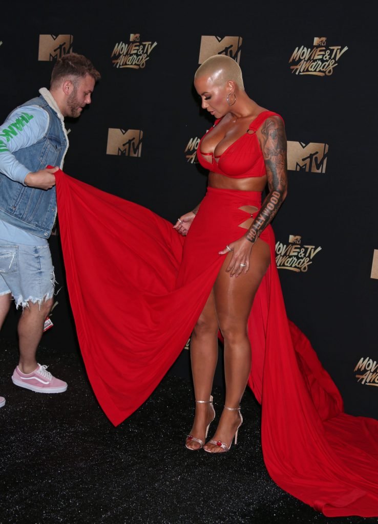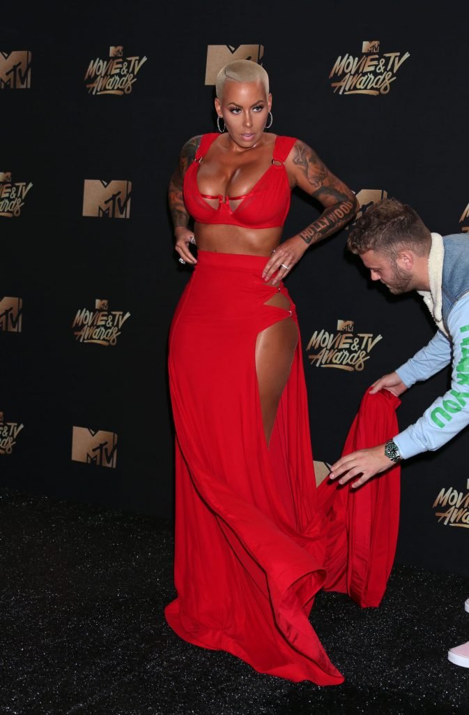 Amber Rose присутствует на церемонии MTV Movie and TV Awards 2017 года в Shrine Auditorium в Лос-Анджелесе, 07.05.2017. Amber Levonchuck — американская модель, рэпер и актриса (Cameron and Eddie Lose the Belt). Возраст – 33 года.