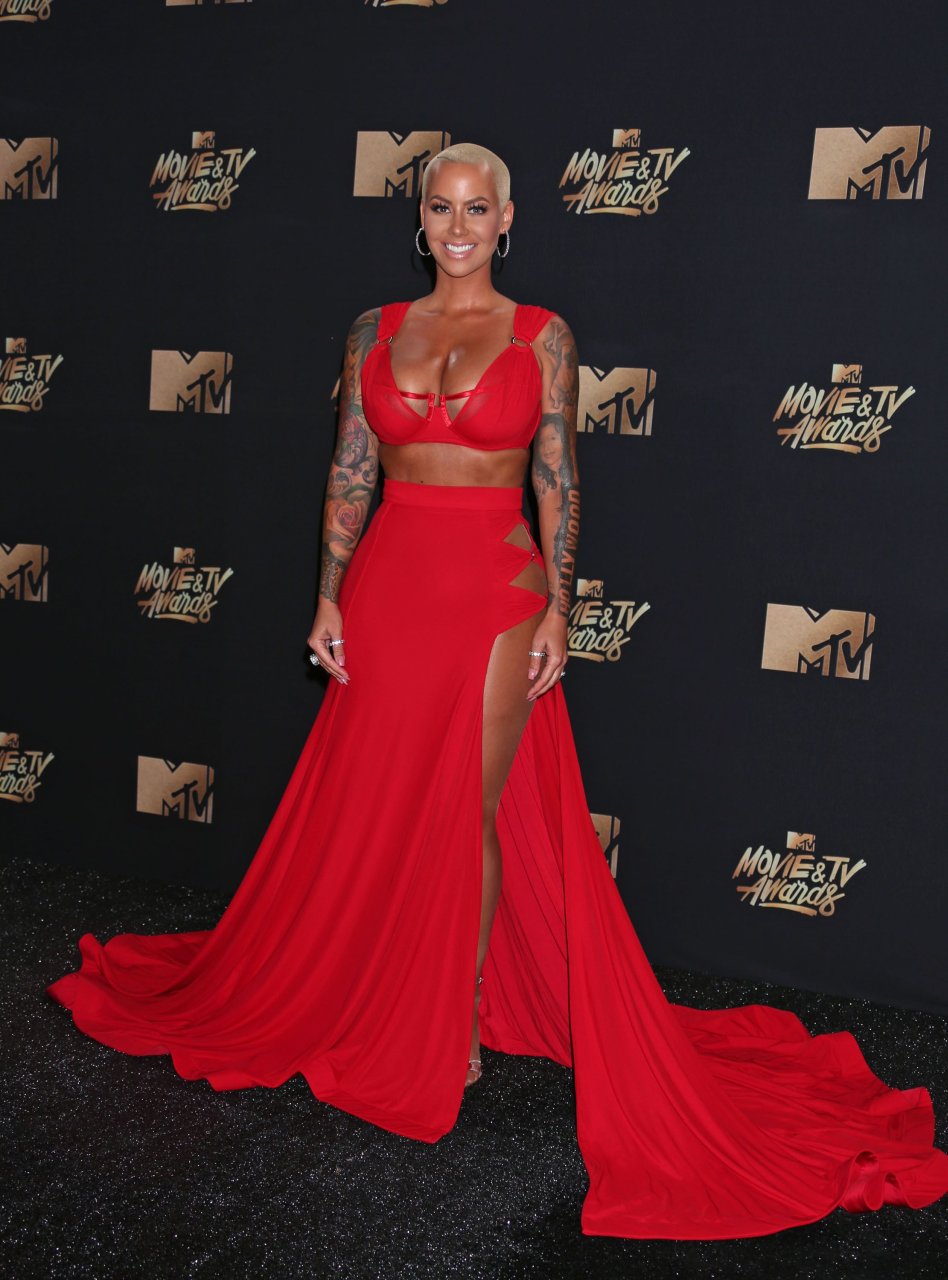 Amber Rose присутствует на церемонии MTV Movie and TV Awards 2017 года в Shrine Auditorium в Лос-Анджелесе, 07.05.2017. Amber Levonchuck — американская модель, рэпер и актриса (Cameron and Eddie Lose the Belt). Возраст – 33 года.