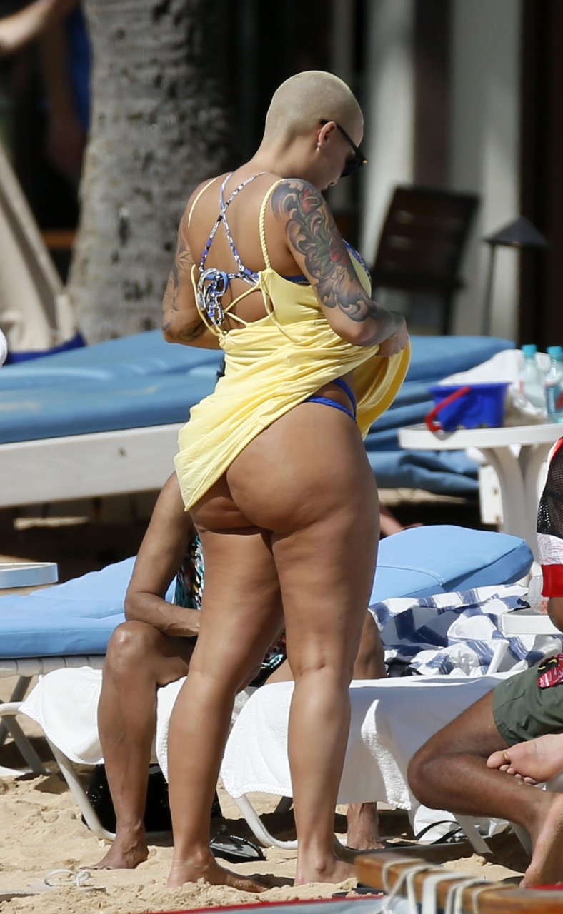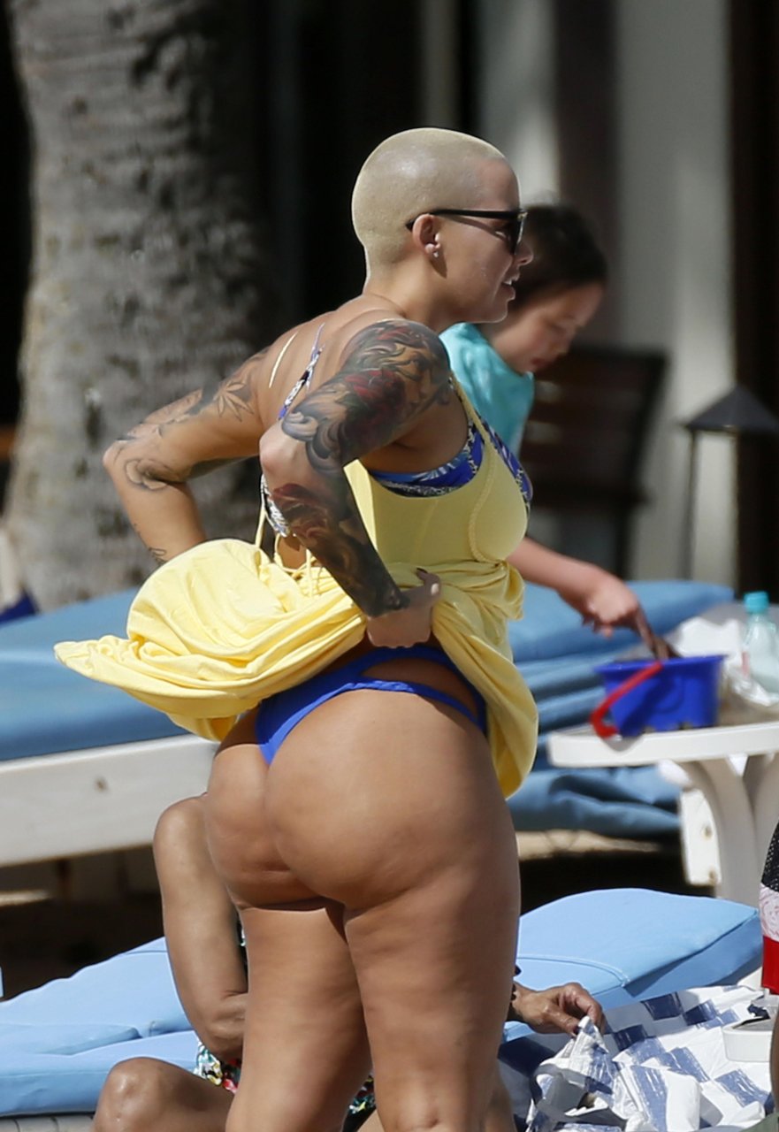 Amber Rose демонстрирует свою большую попу на пляже в Гонолулу, Гавайи, 31.01.2017. Amber Rose (Левончук) — американская модель, актриса. Возраст: 33 (родилась 21 октября 1983).