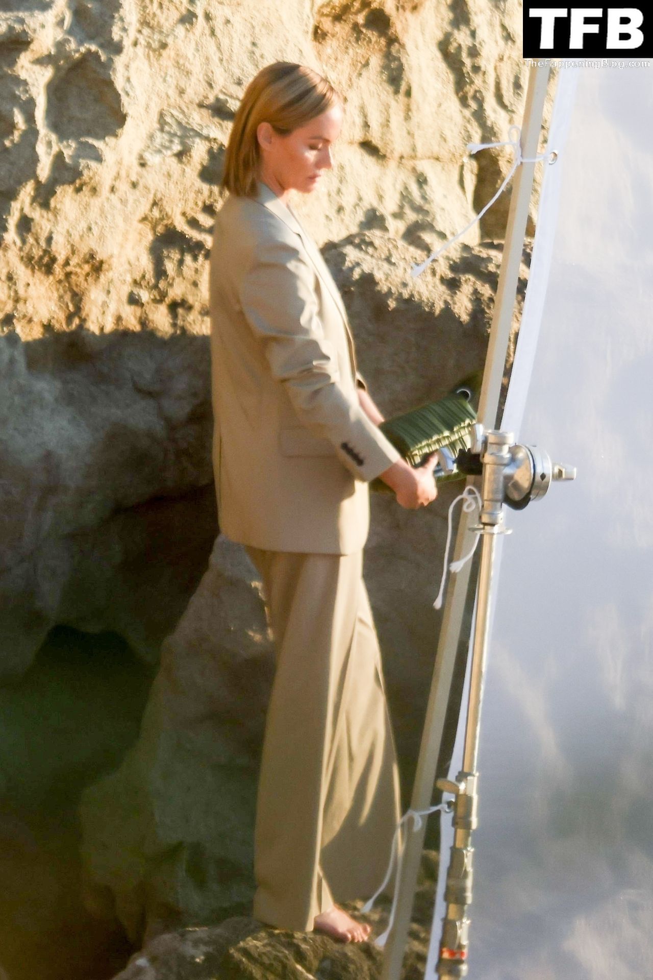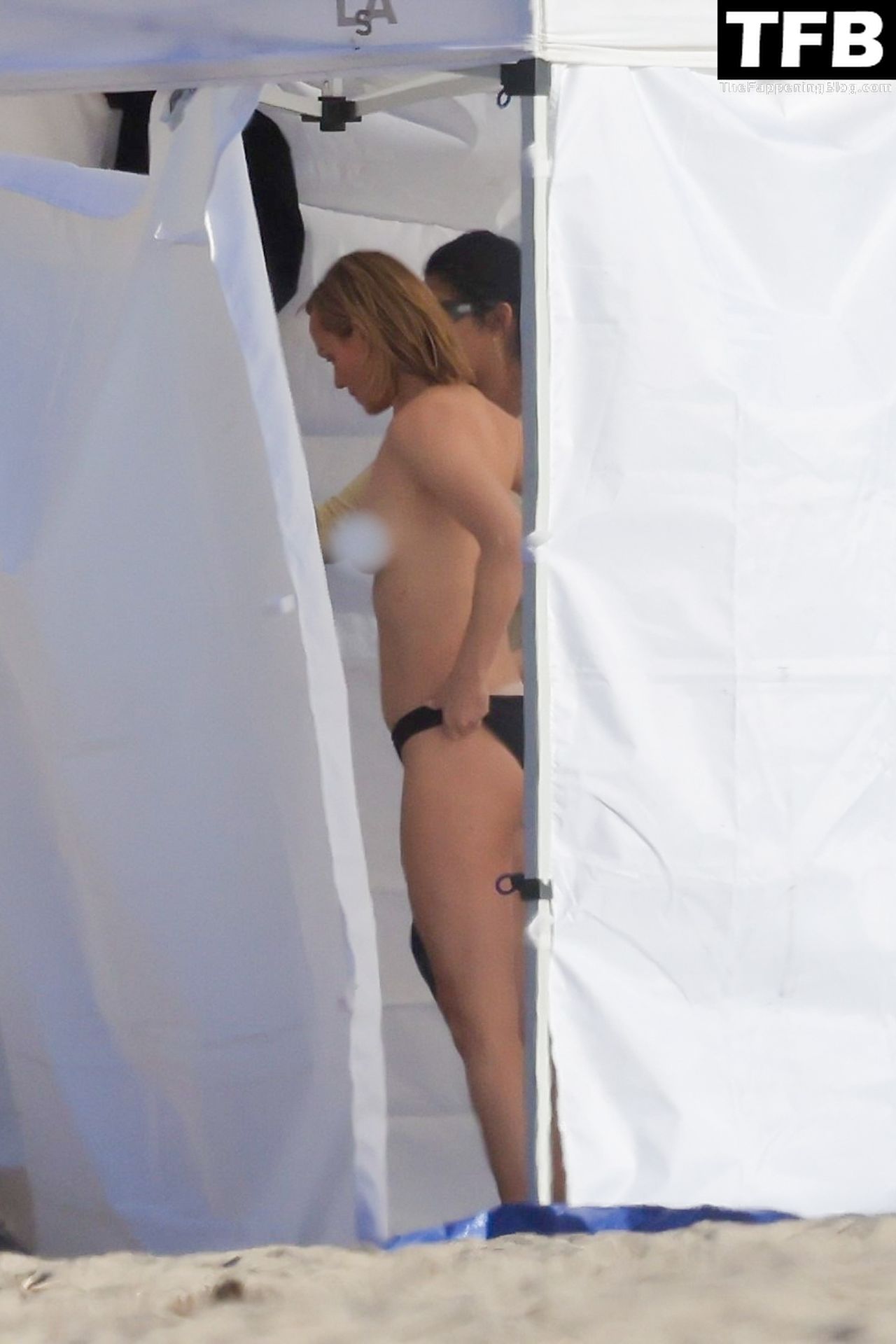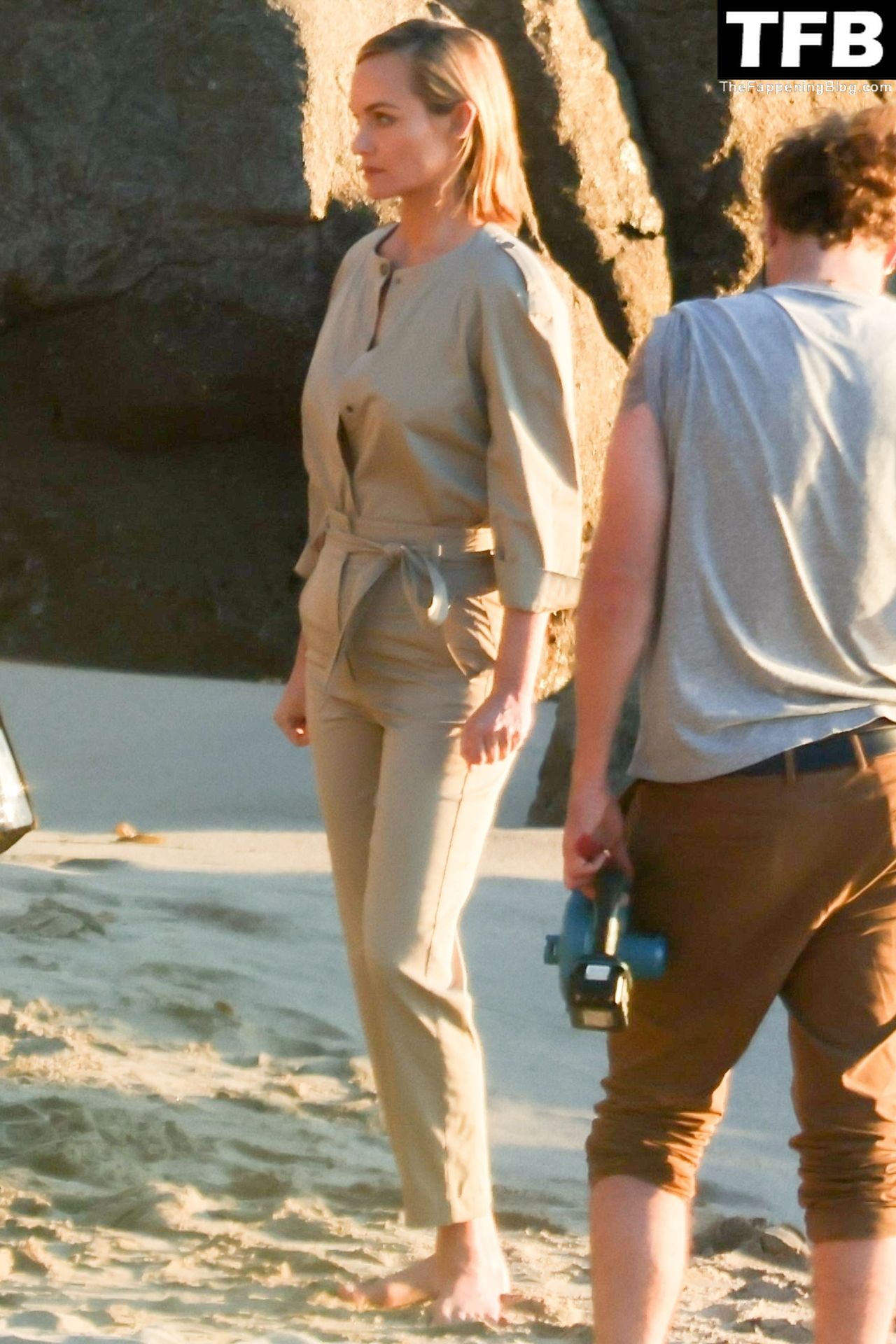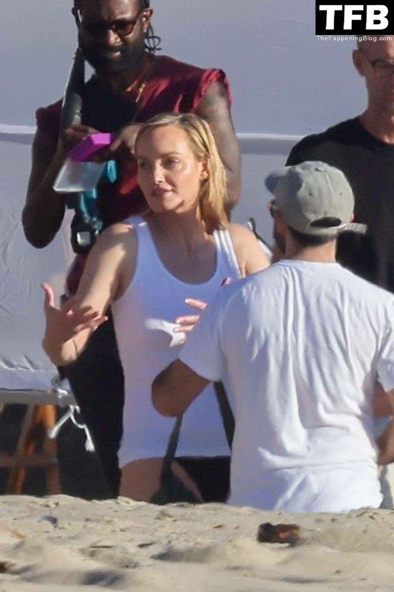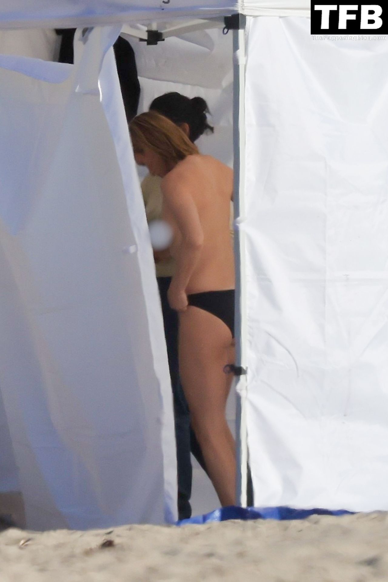 Американская модель Эмбер Валлетта позирует топлес во время сексуальной модной фотосессии в золотой час на пляже в Малибу, 02/09/2022.