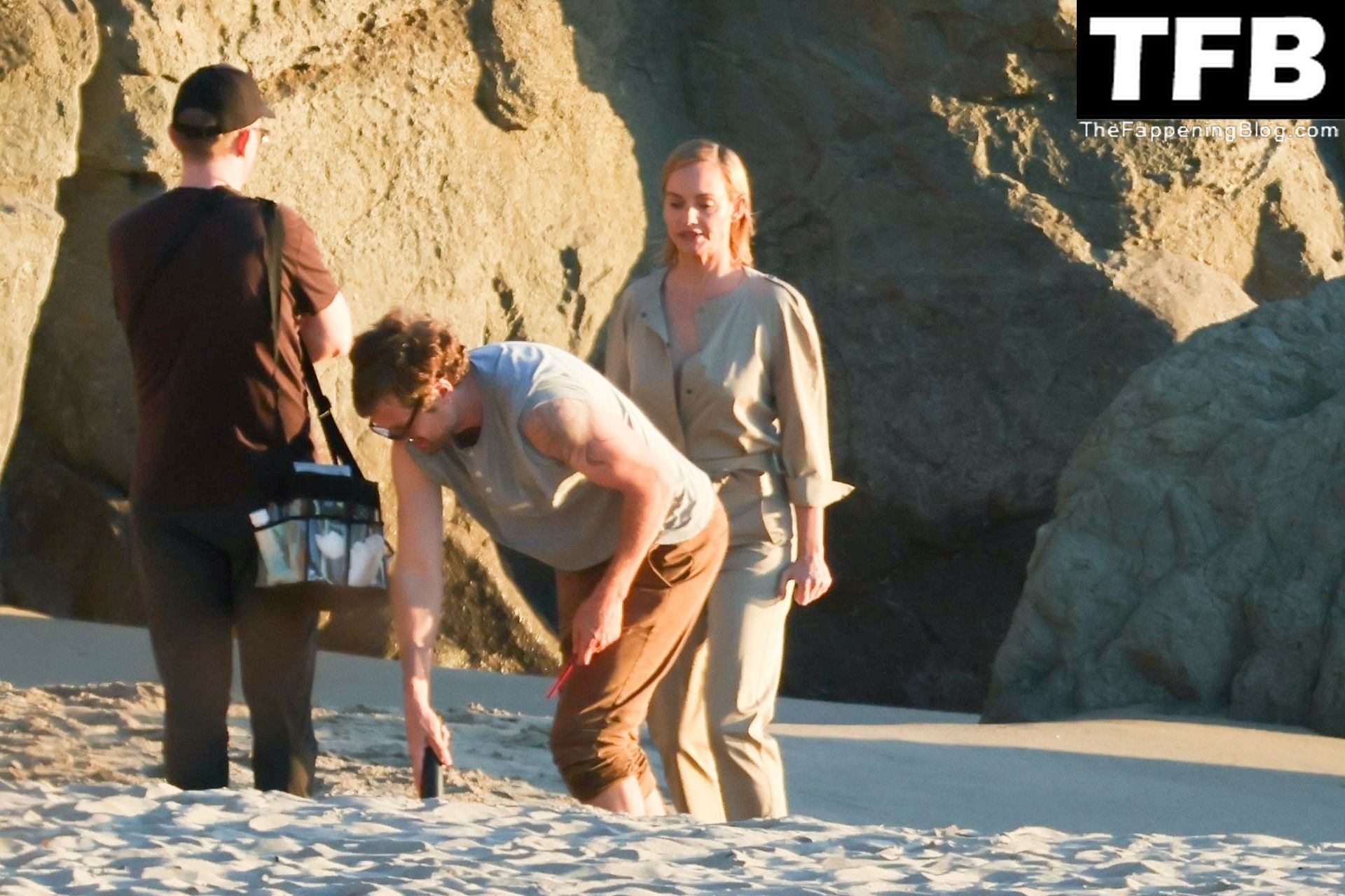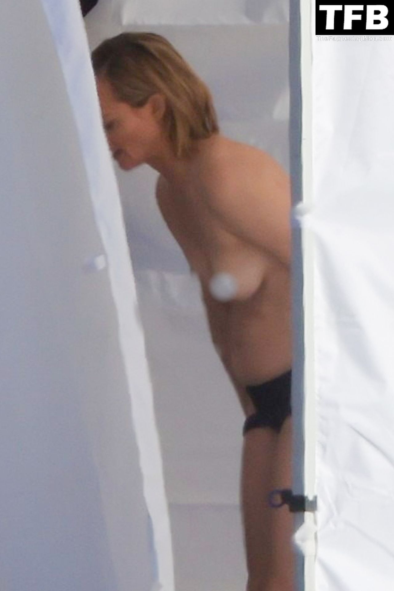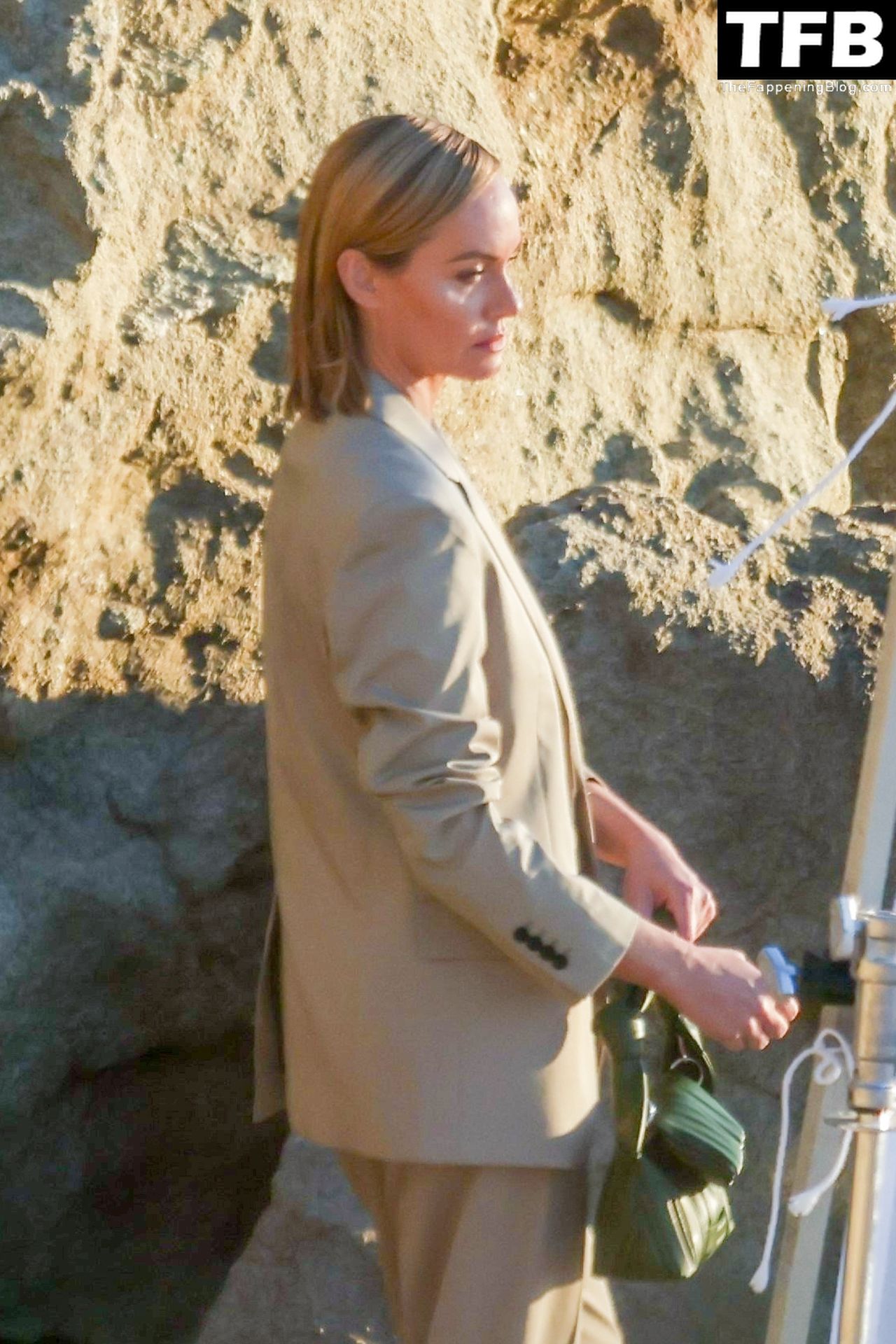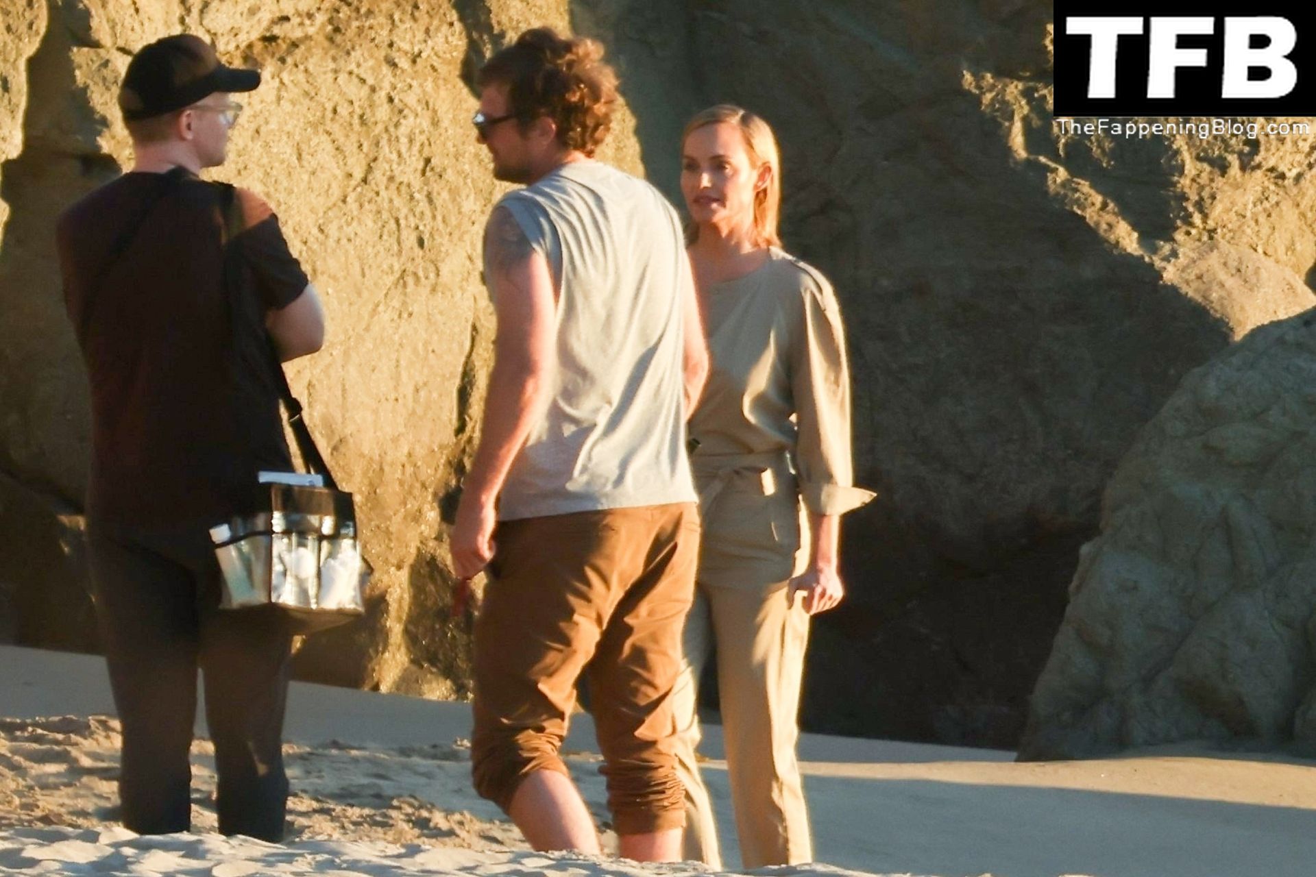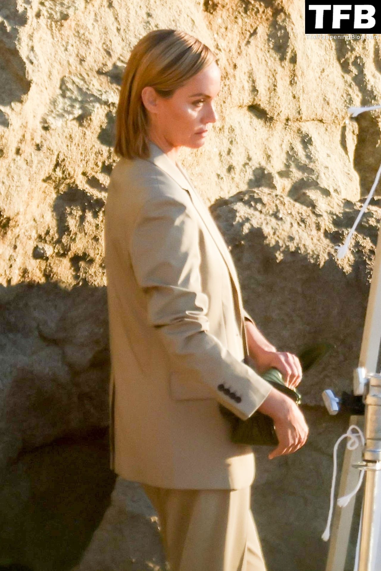 Американская модель Эмбер Валлетта позирует топлес во время сексуальной модной фотосессии в золотой час на пляже в Малибу, 02/09/2022.