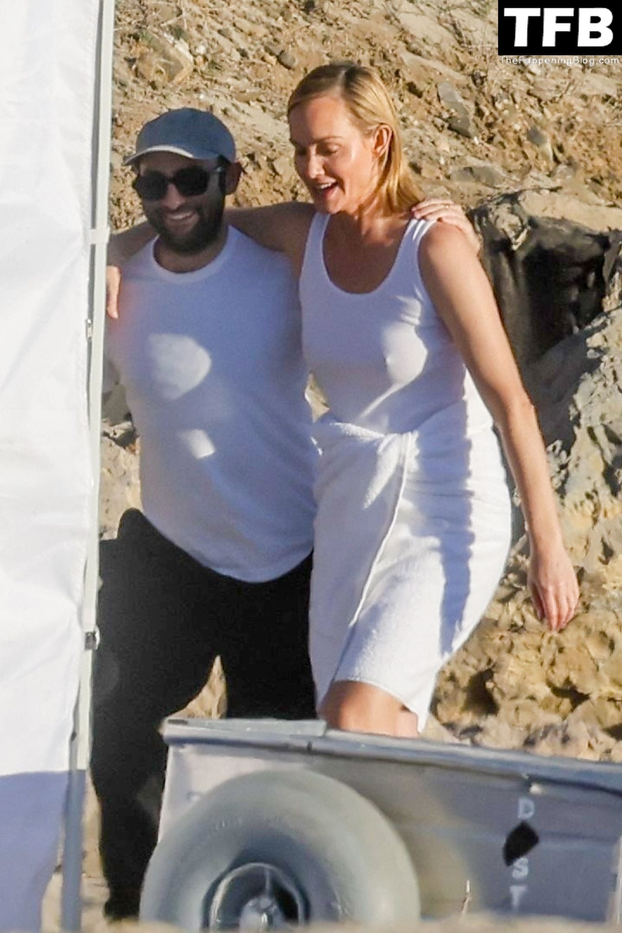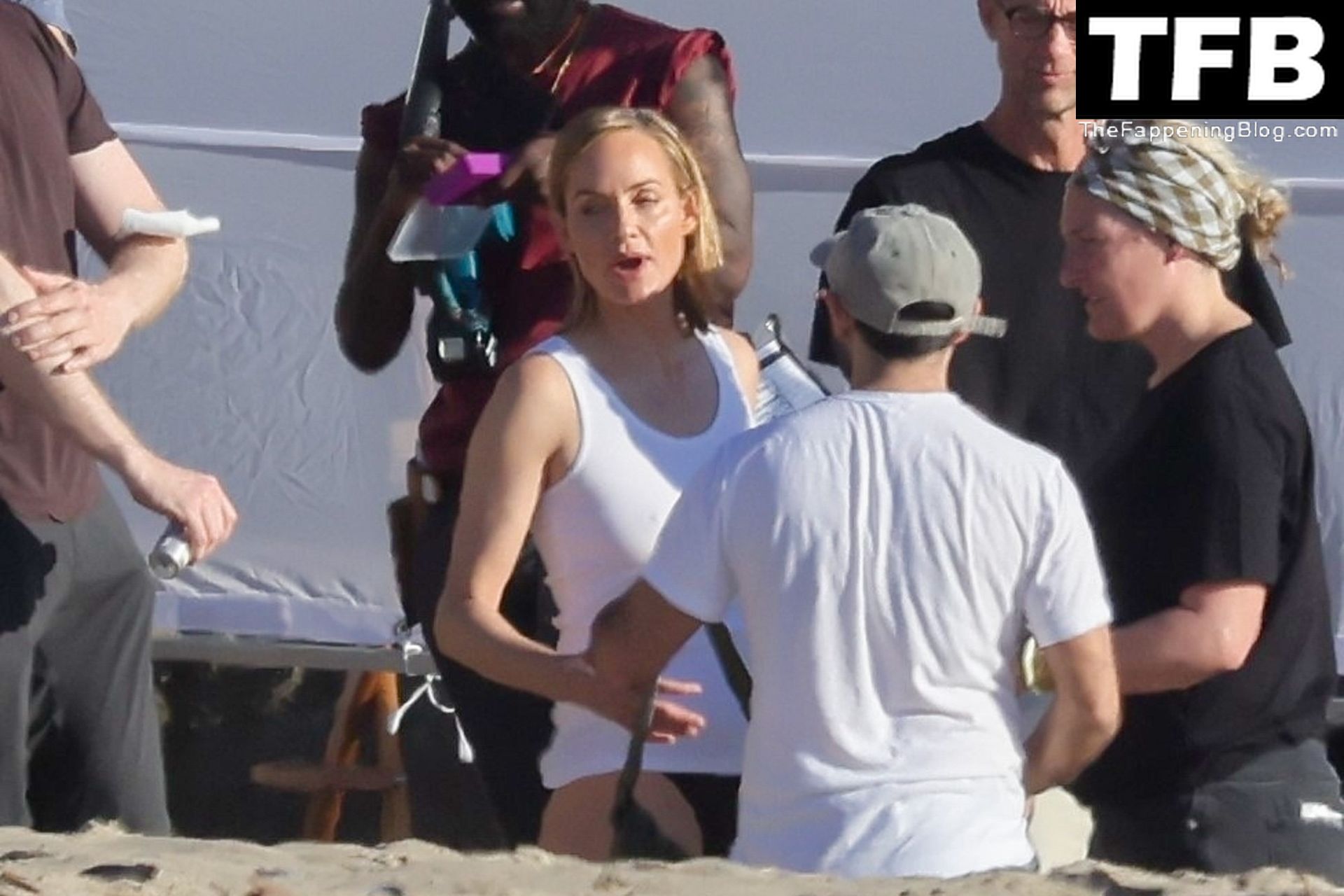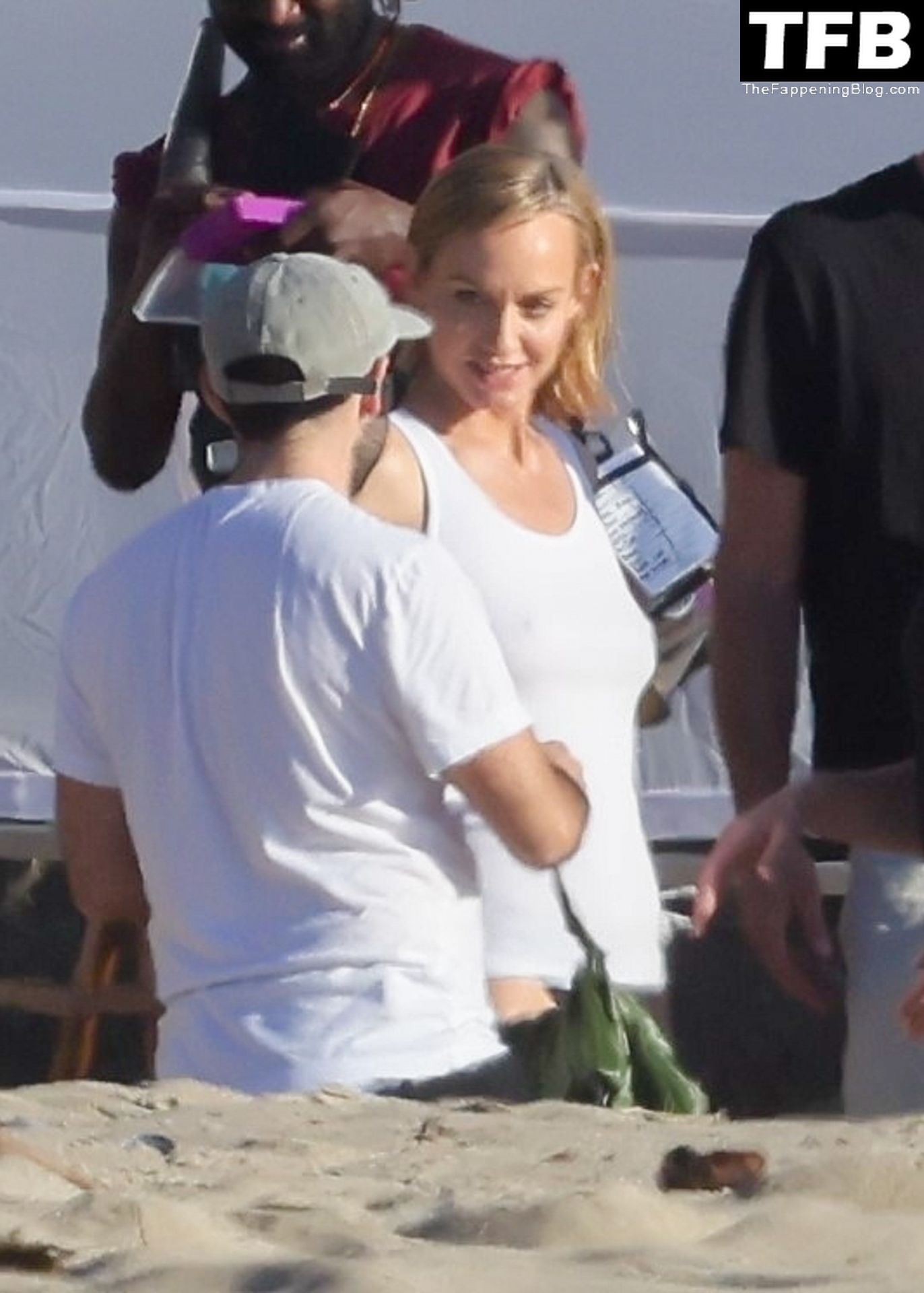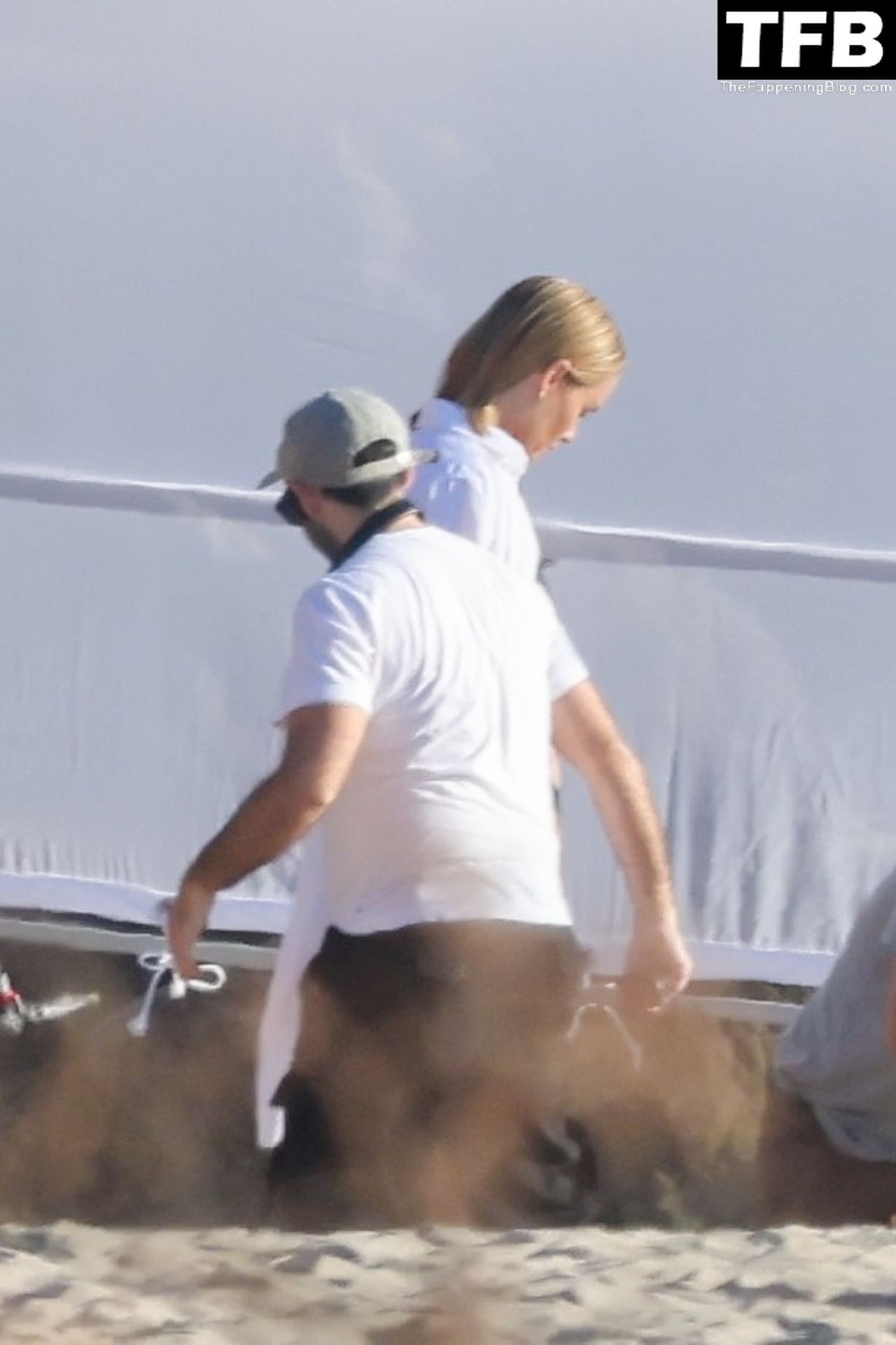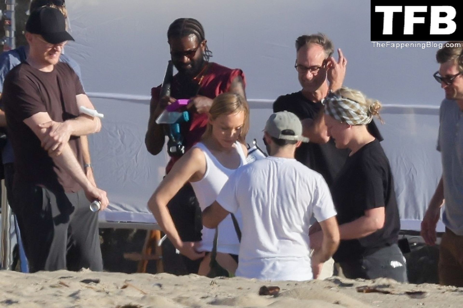 Американская модель Эмбер Валлетта позирует топлес во время сексуальной модной фотосессии в золотой час на пляже в Малибу, 02/09/2022.