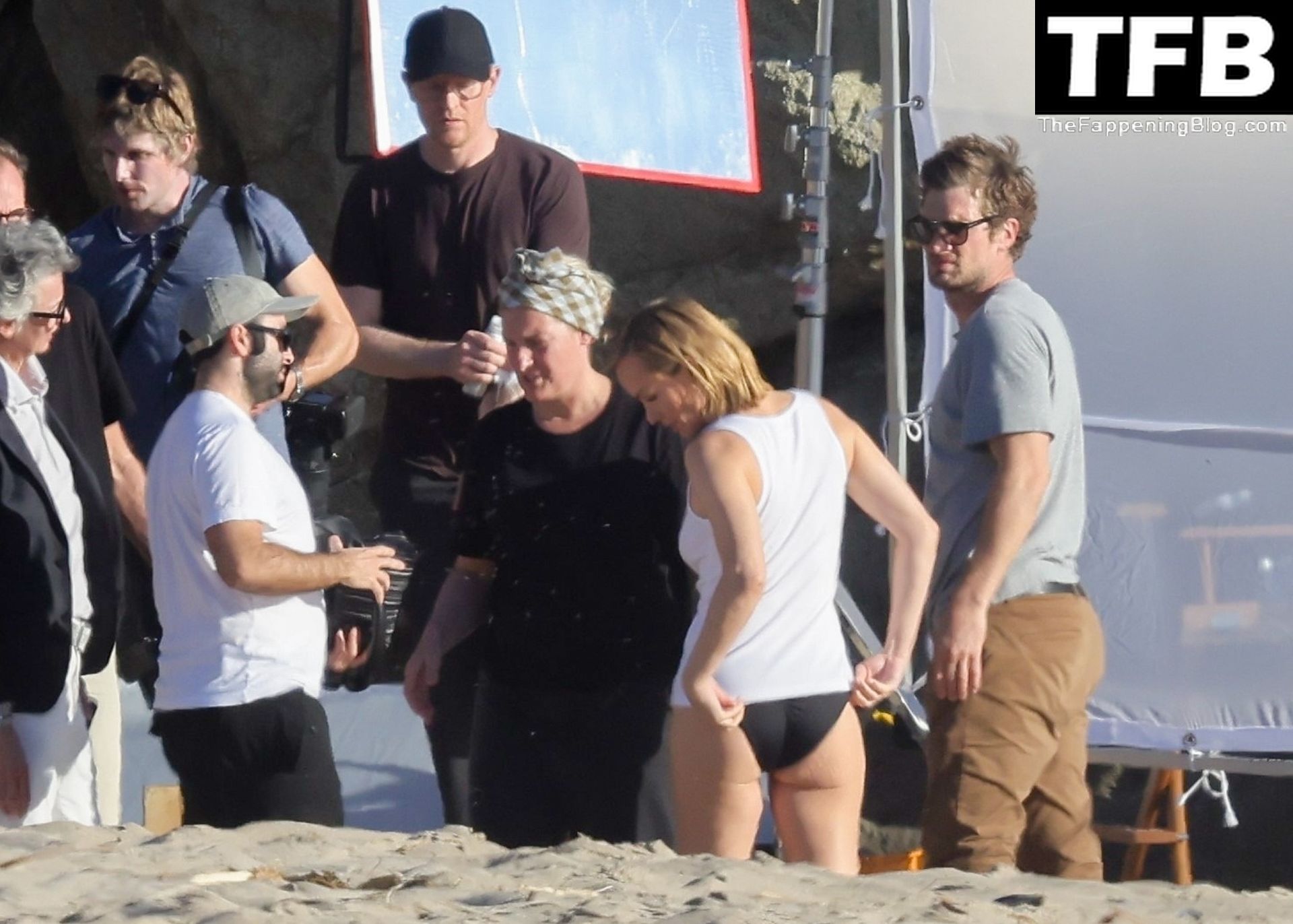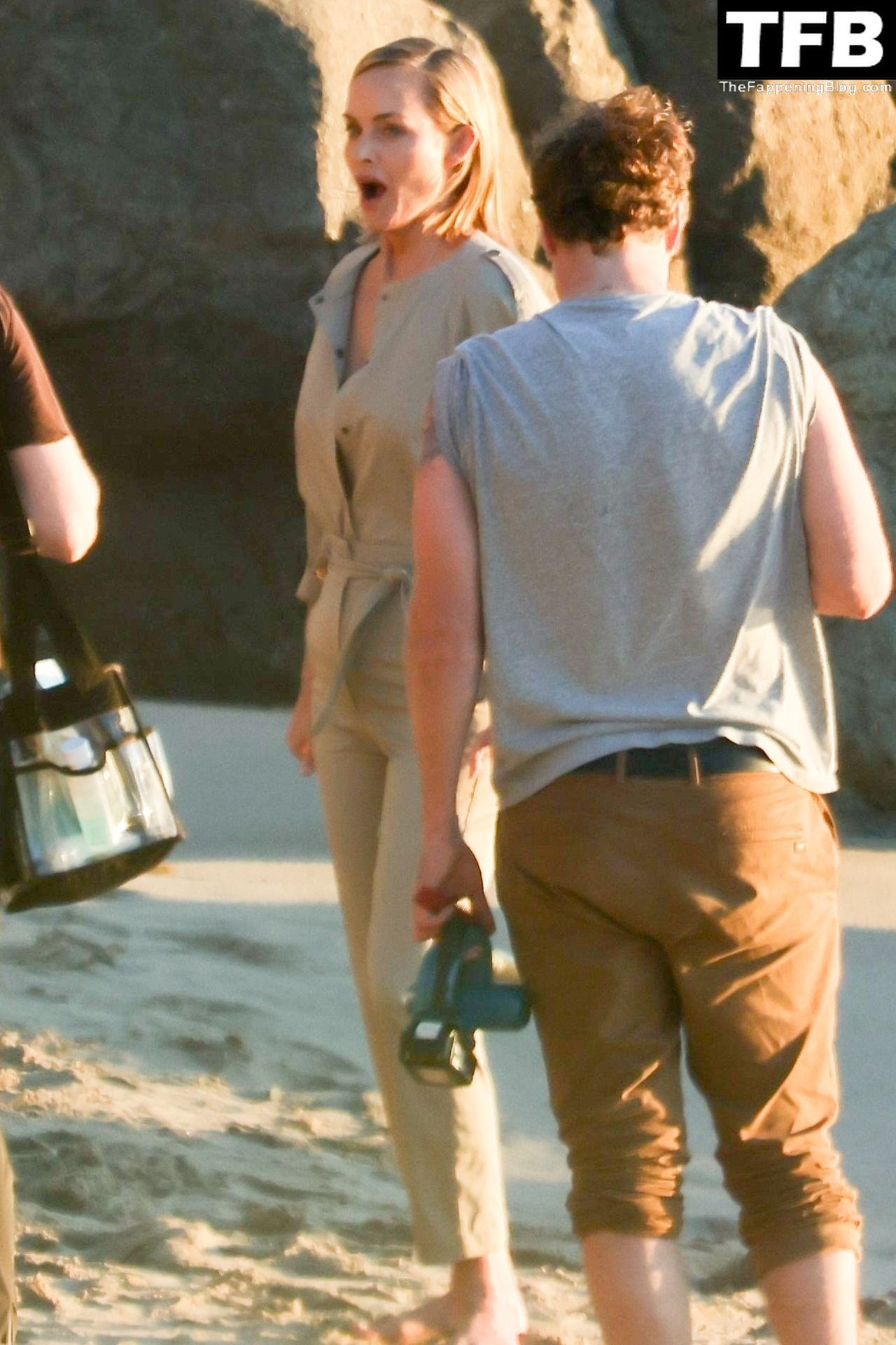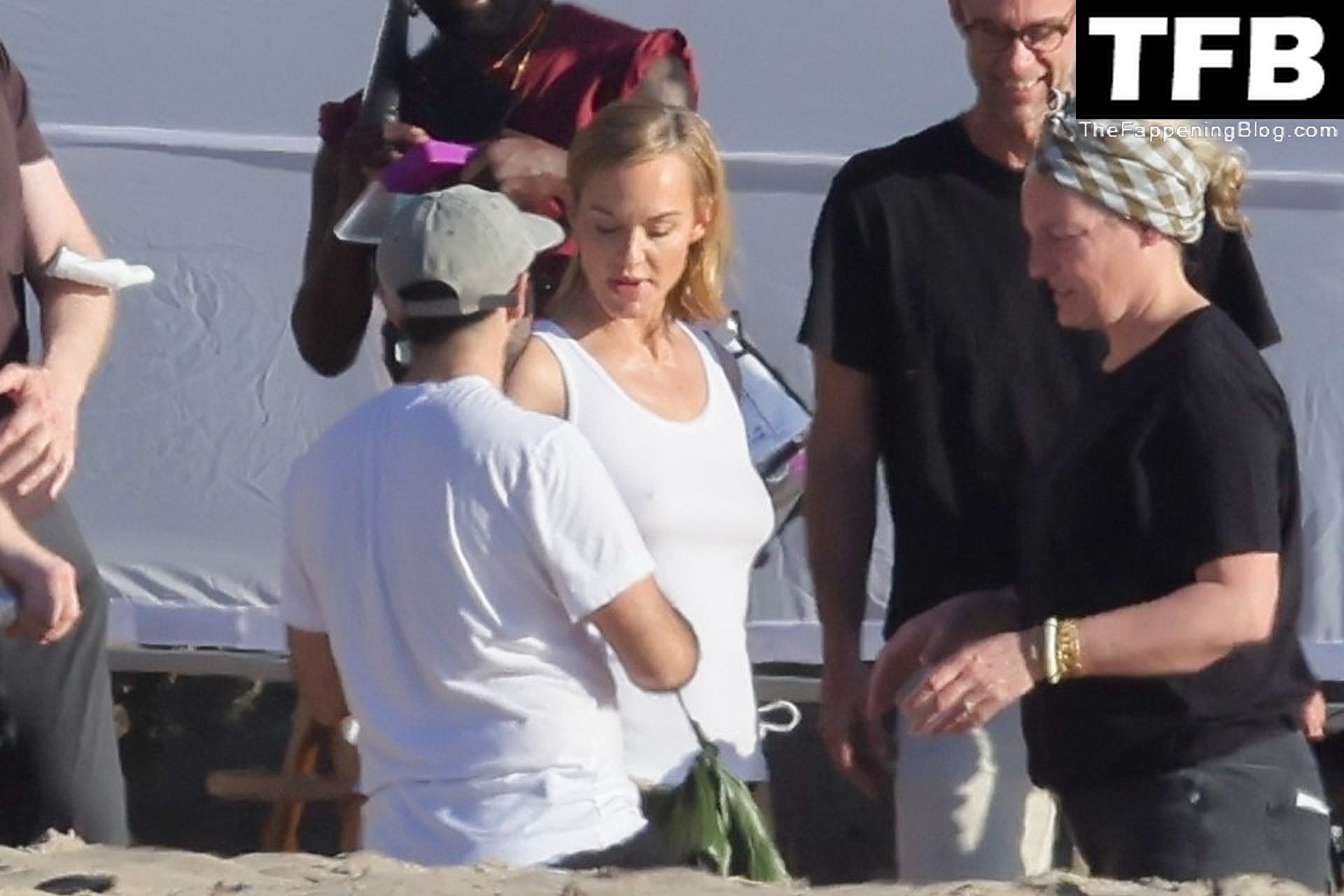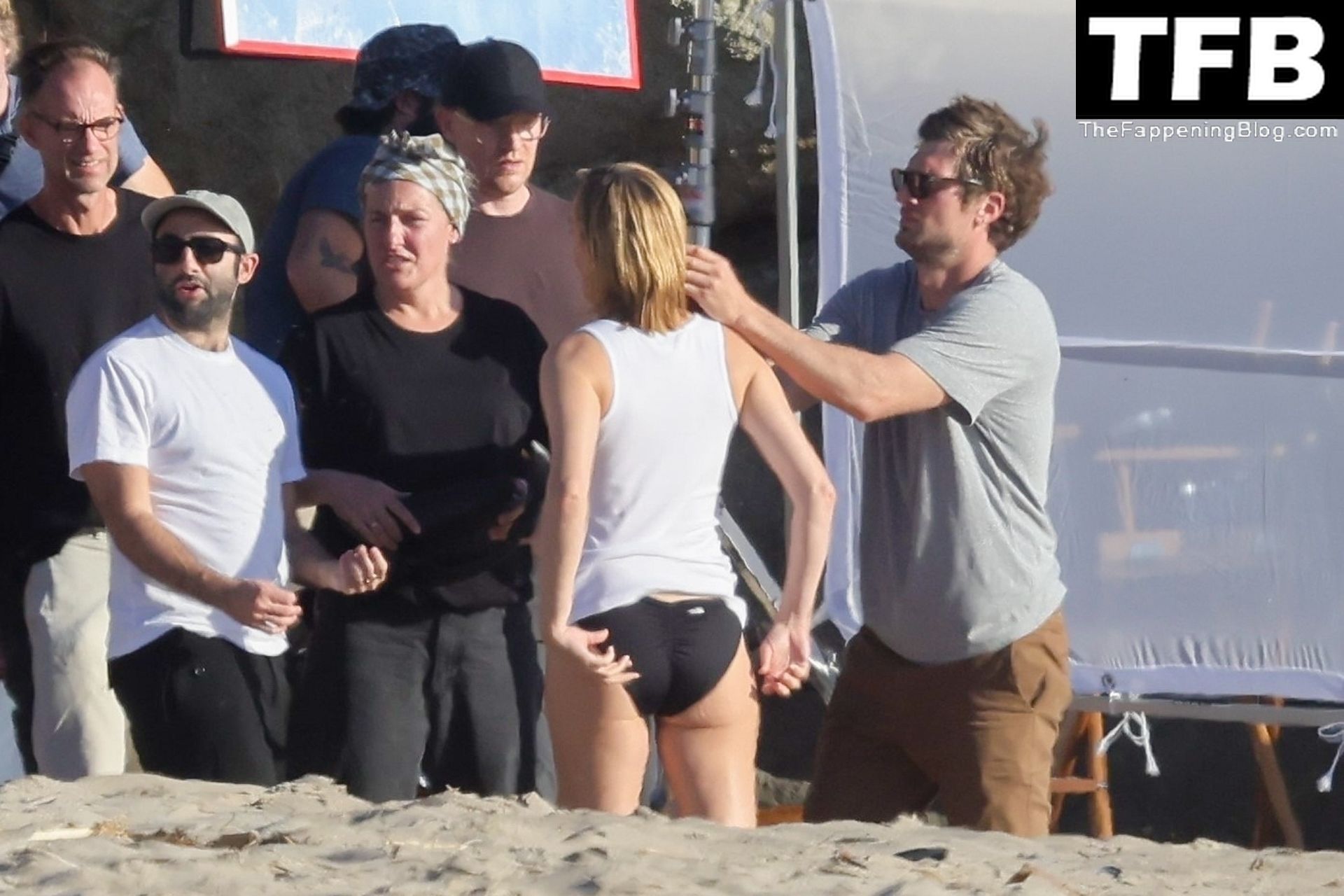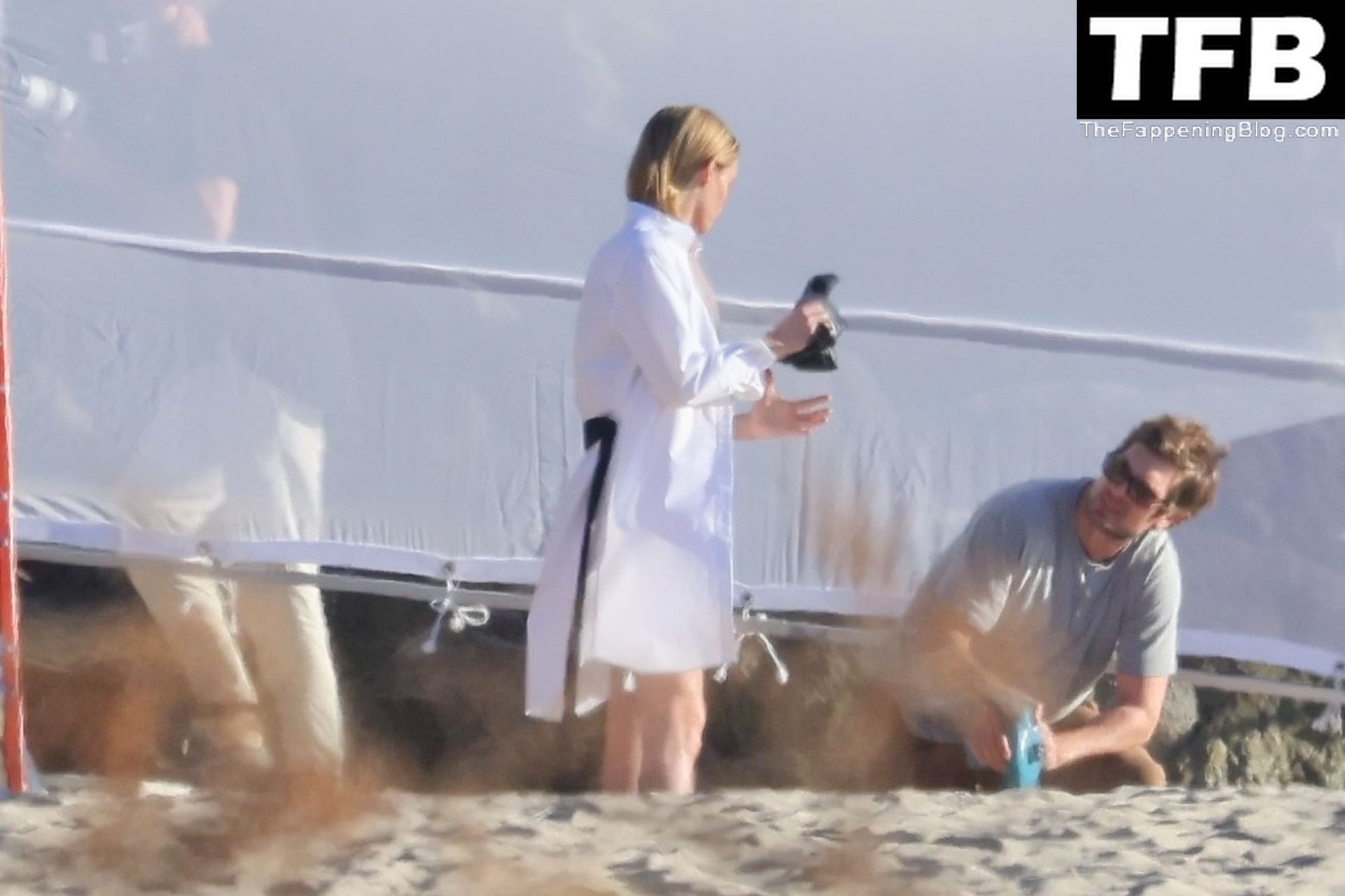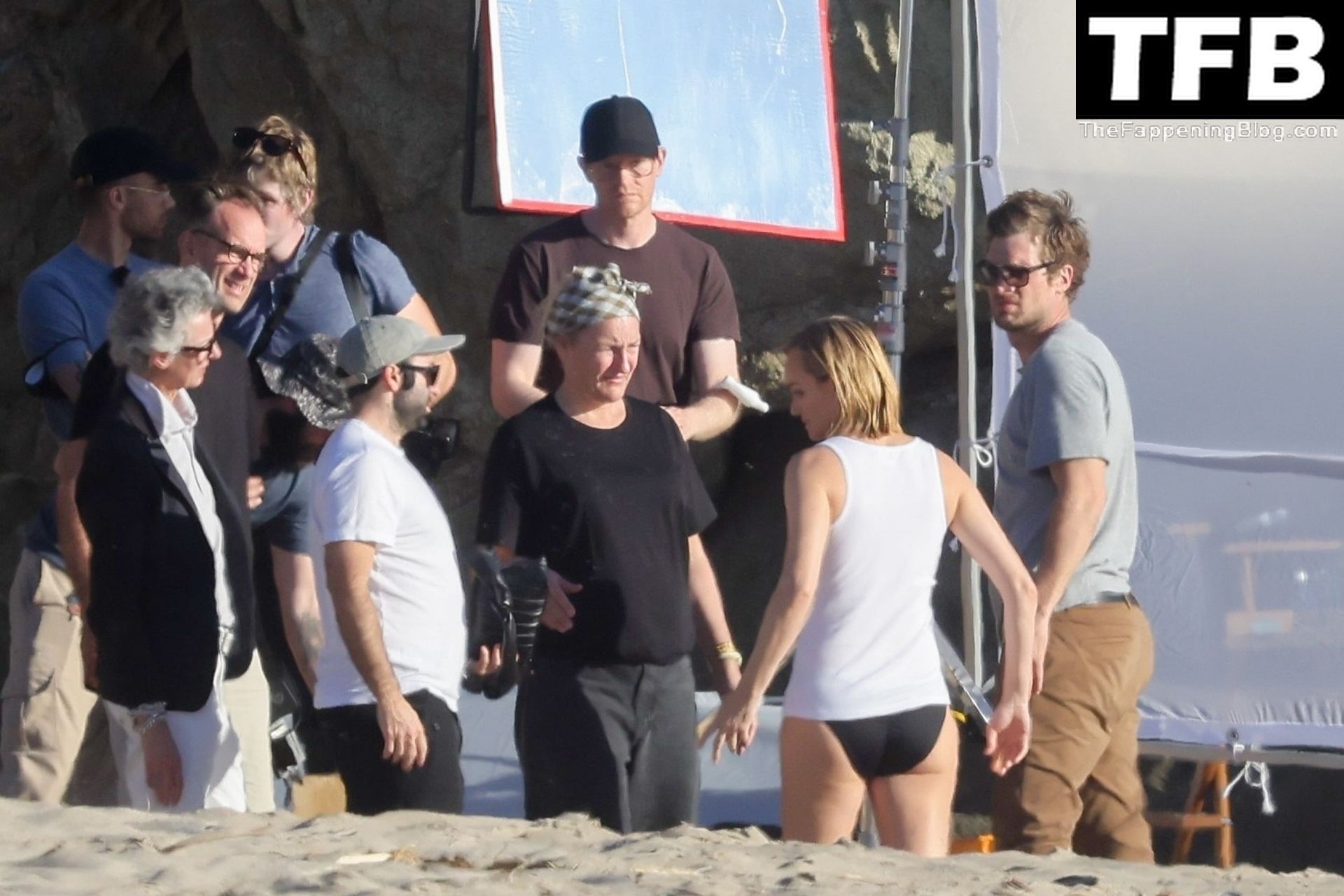 Американская модель Эмбер Валлетта позирует топлес во время сексуальной модной фотосессии в золотой час на пляже в Малибу, 02/09/2022.
