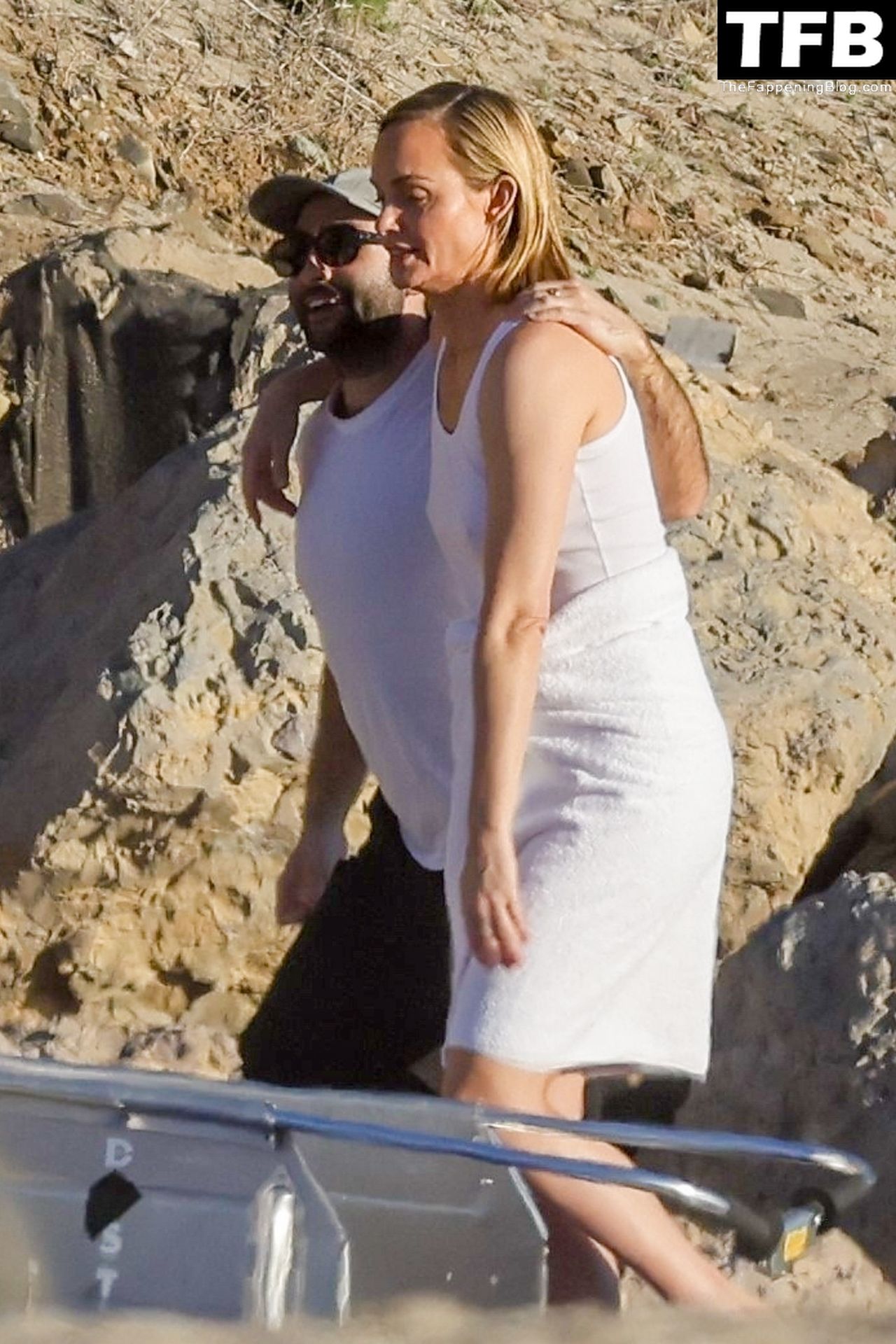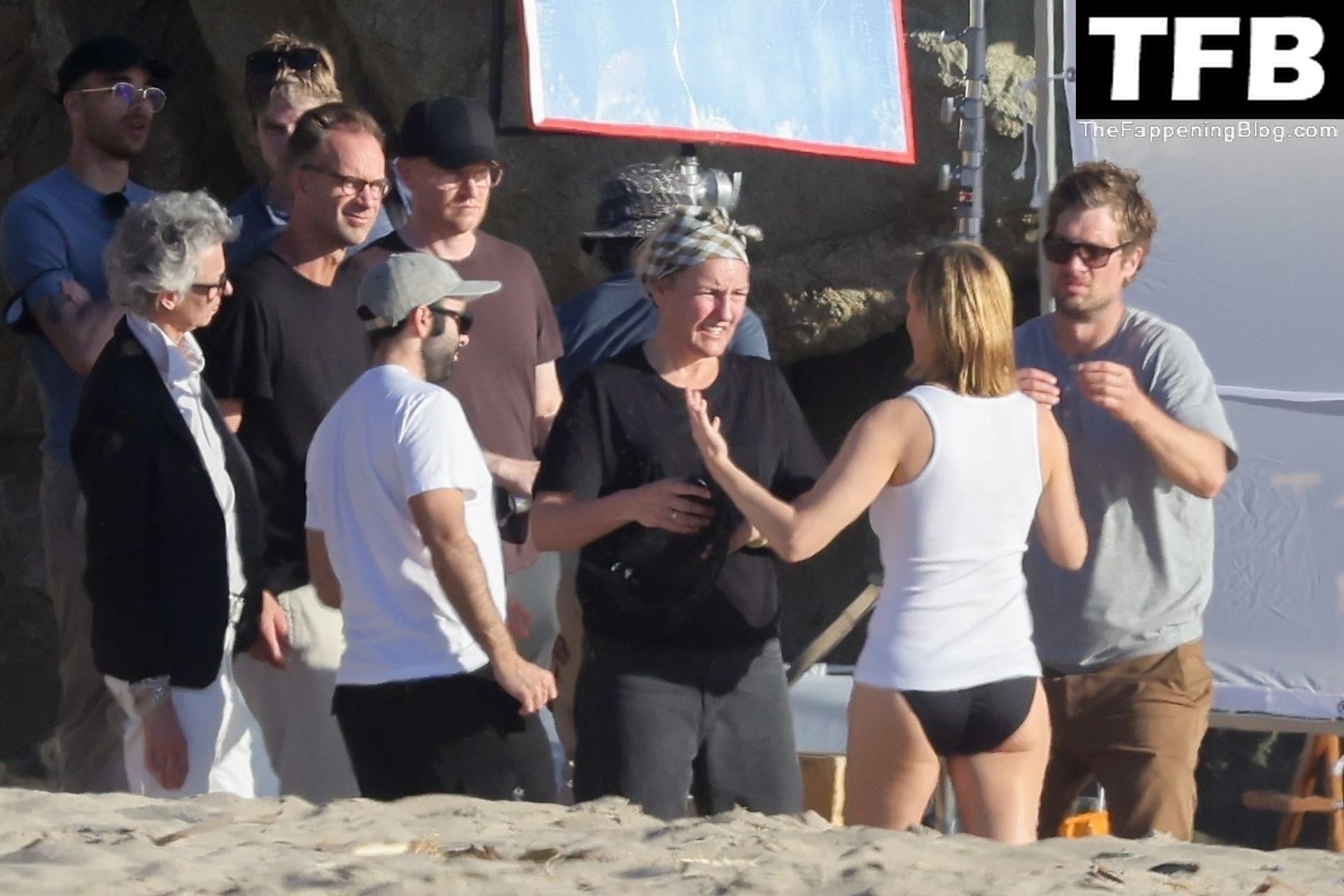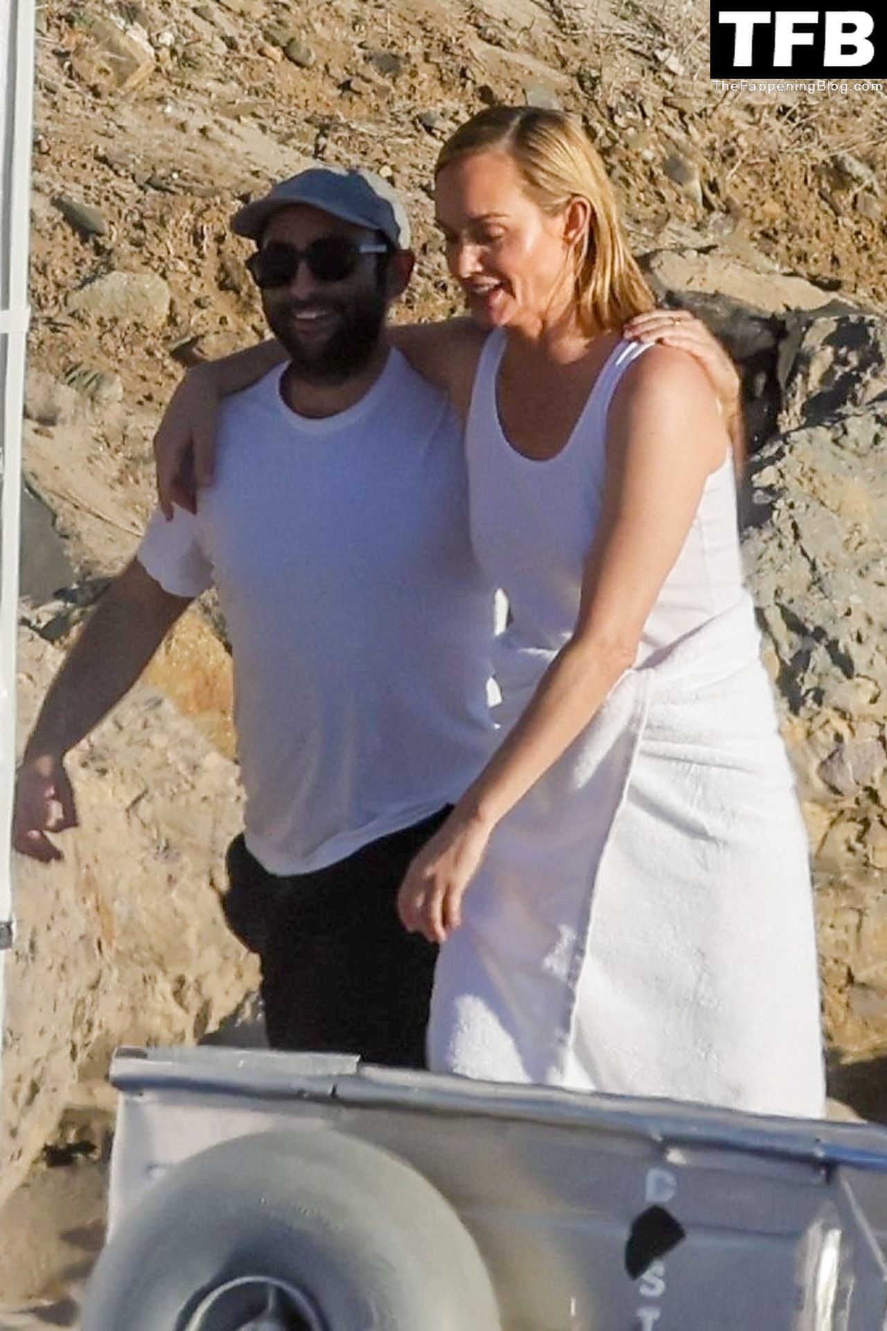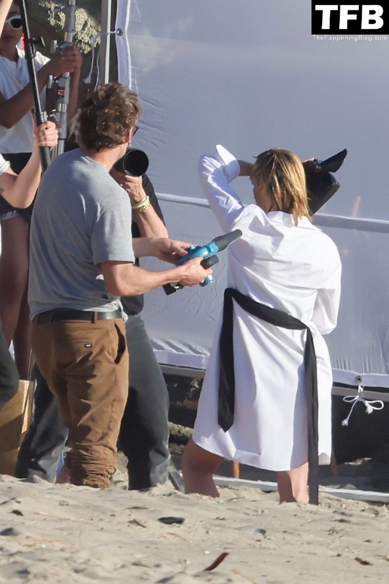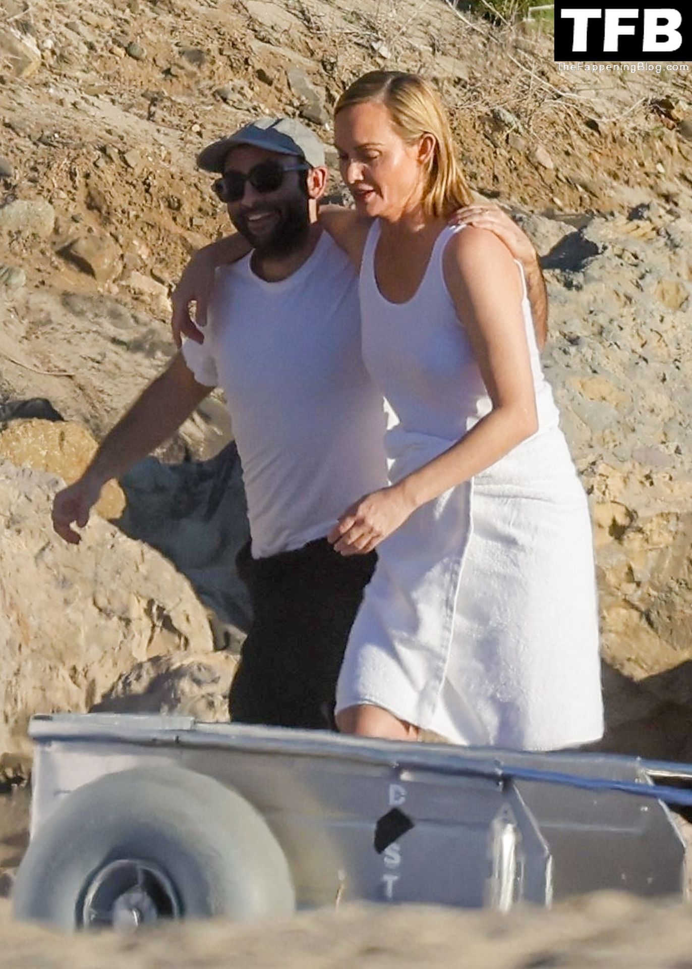 Американская модель Эмбер Валлетта позирует топлес во время сексуальной модной фотосессии в золотой час на пляже в Малибу, 02/09/2022.