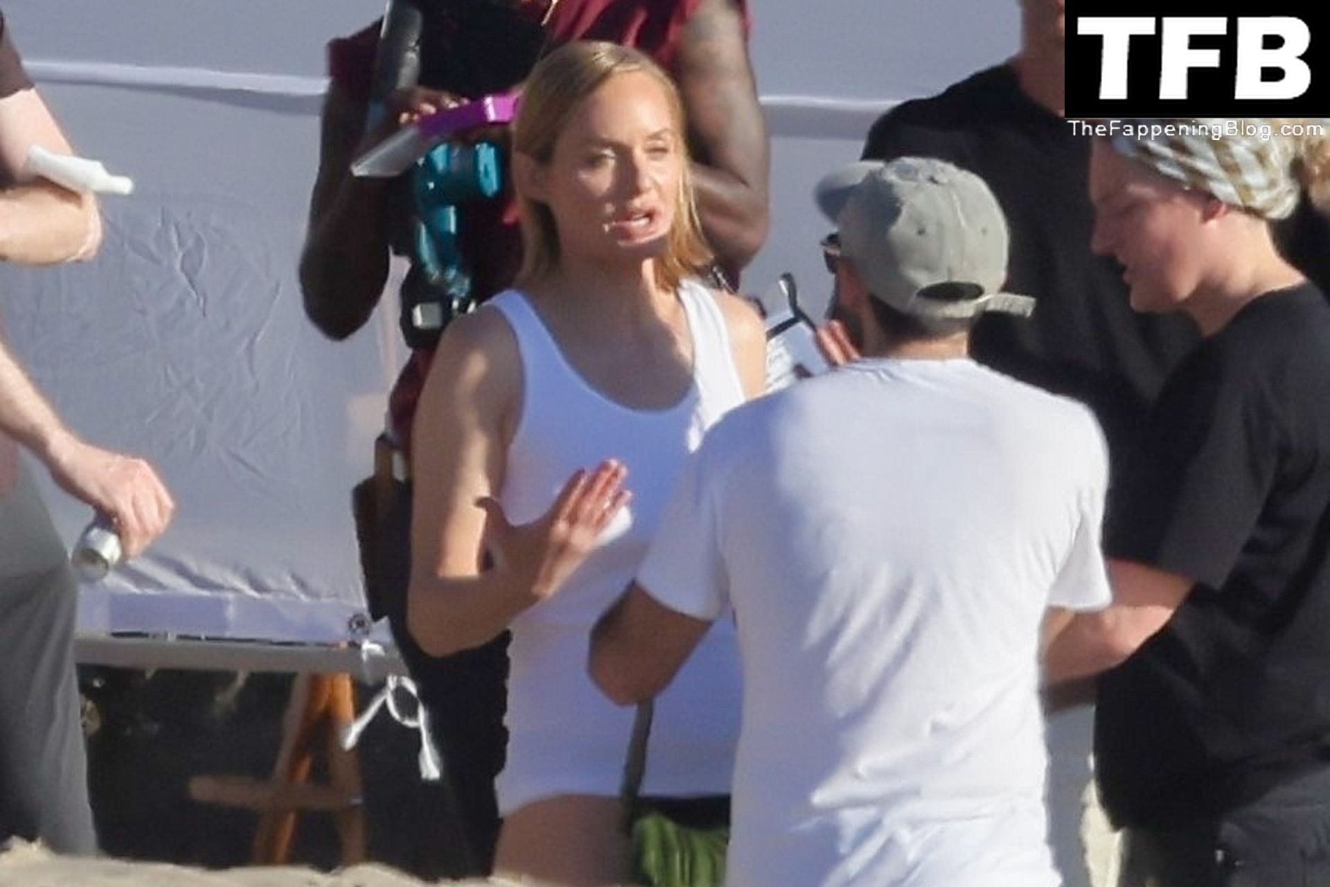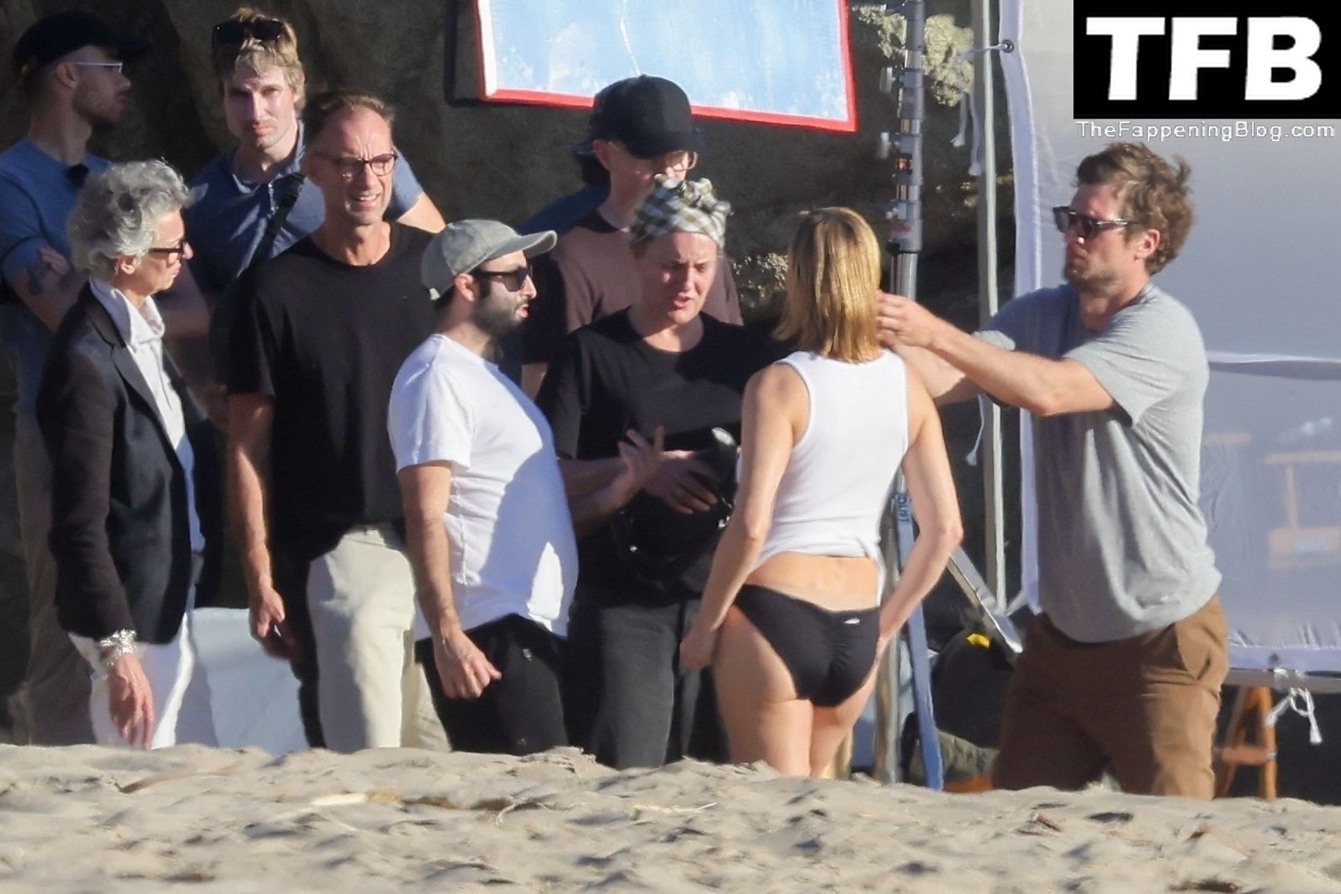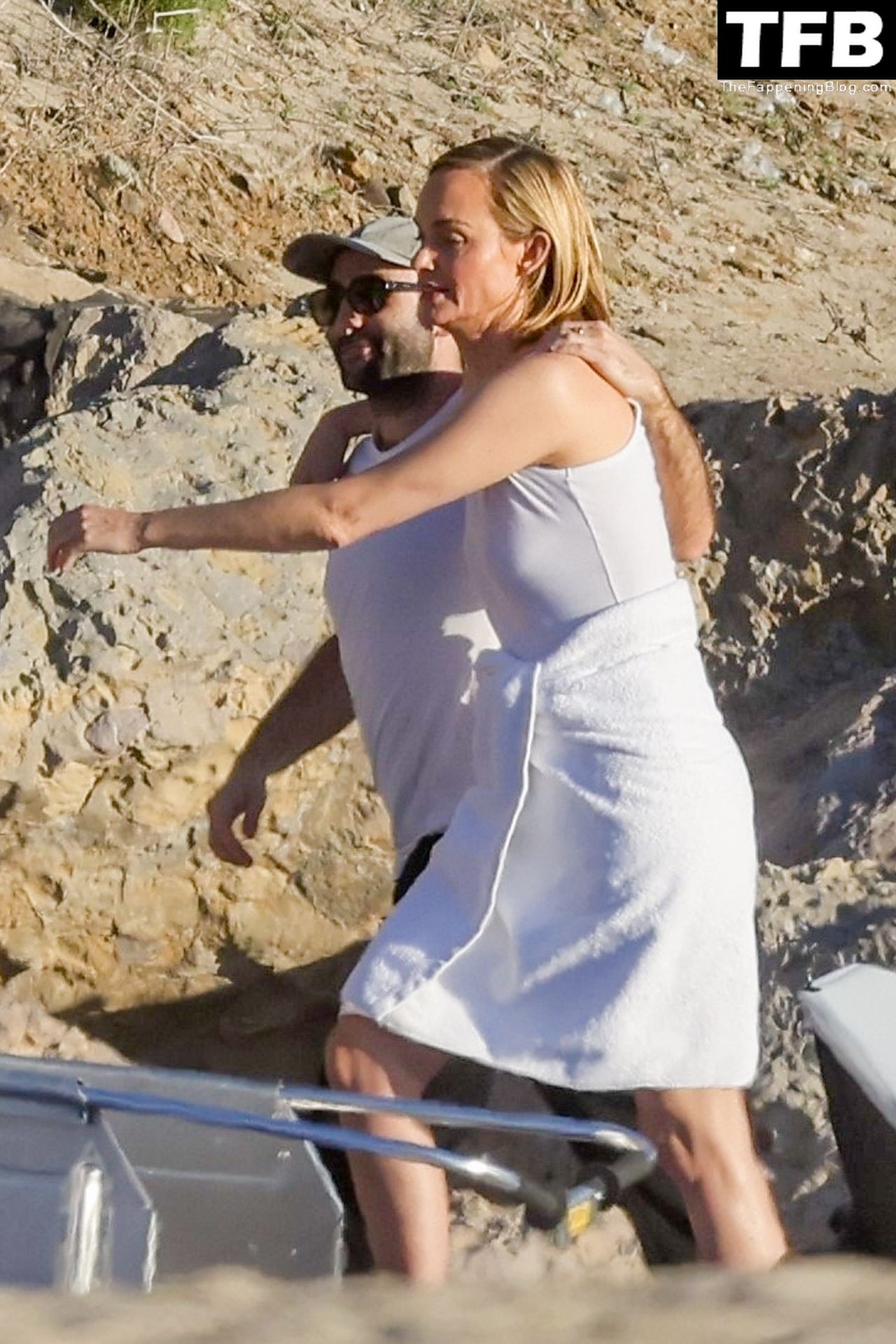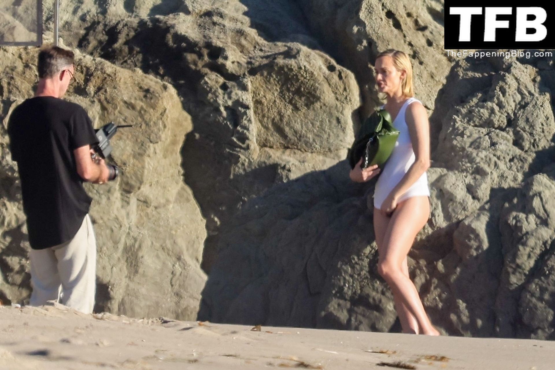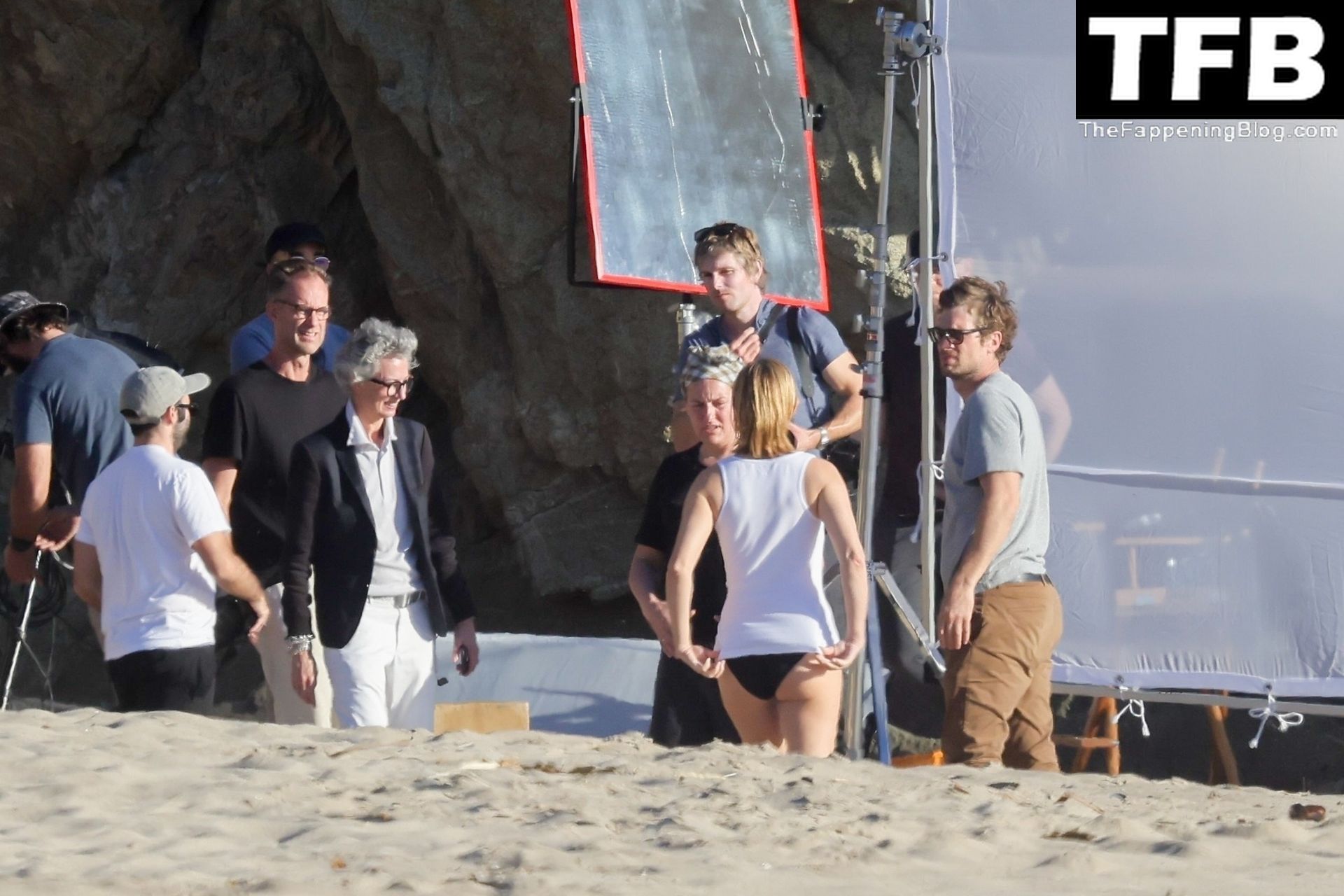 Американская модель Эмбер Валлетта позирует топлес во время сексуальной модной фотосессии в золотой час на пляже в Малибу, 02/09/2022.