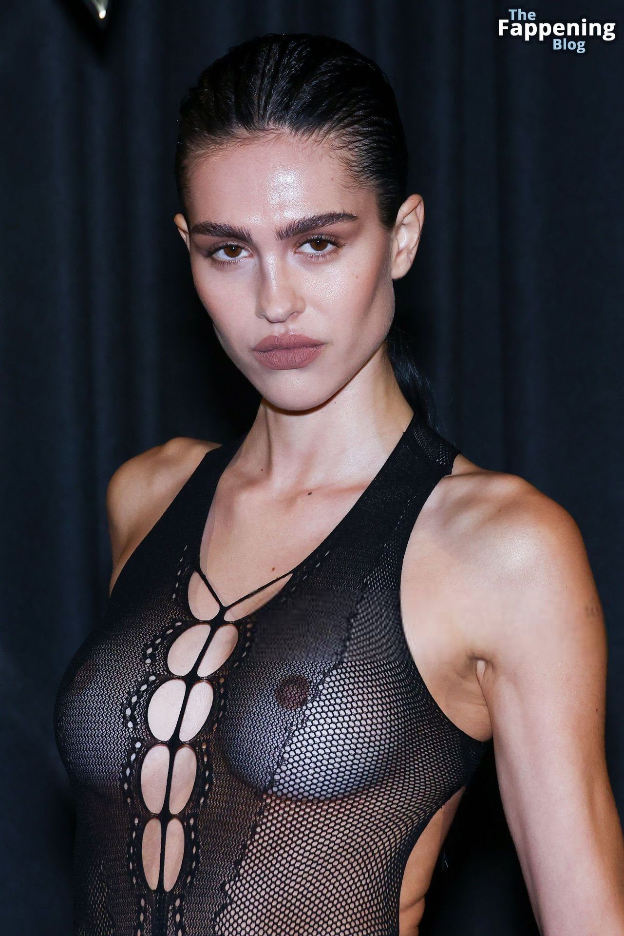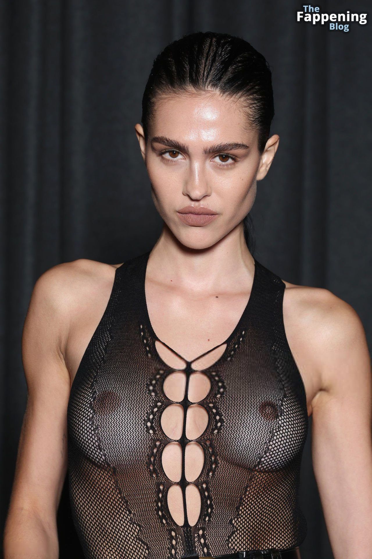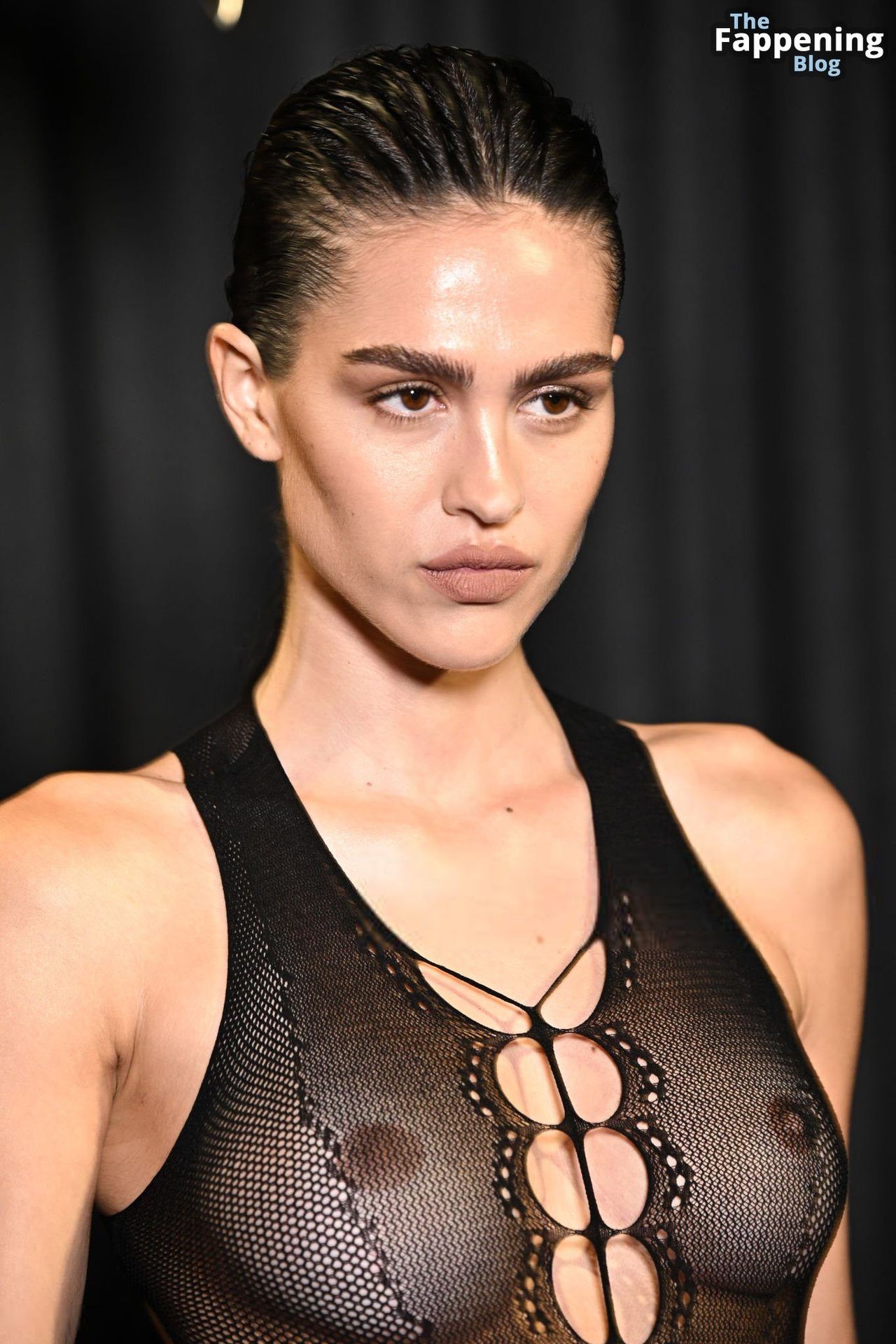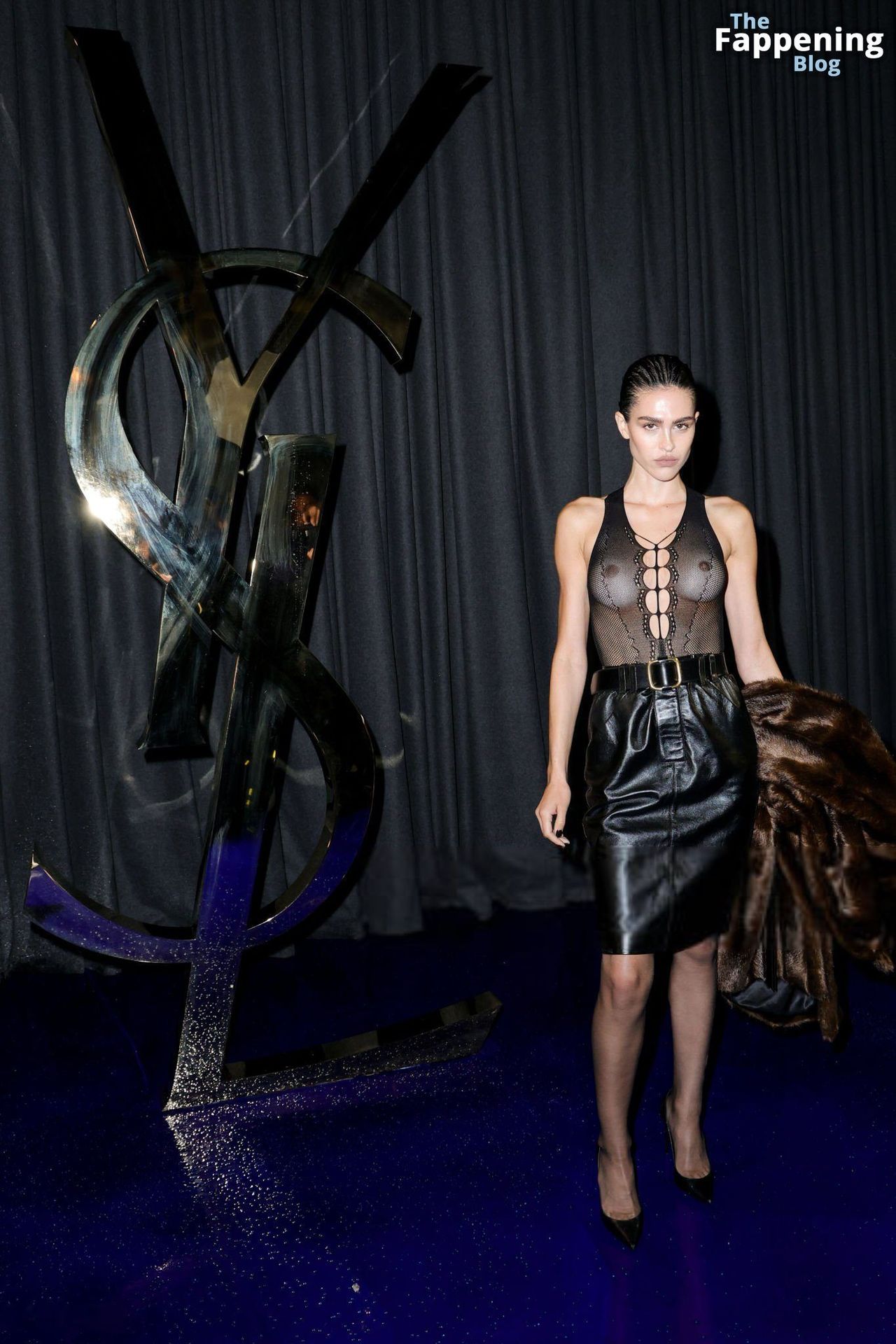 Амелия Грей Хэмлин поражает в прозрачном, просвечивающем топе, показывая свои маленькие соски на показе Saint Laurent RTW 2025 в Париже.