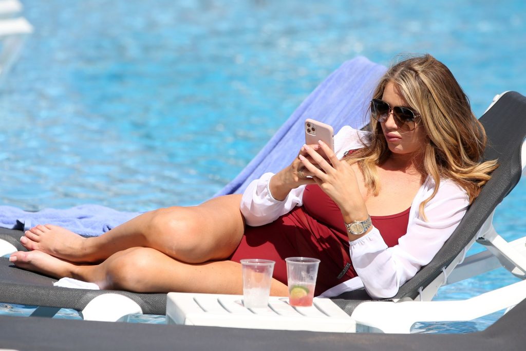 Английская телеведущая и модель Эми Чайлдс была сфотографирована для промо шоу “Celebs Go Dating” в отеле Hard Rock в Пунта Кане, Доминиканская Республика, 16.02.2020.