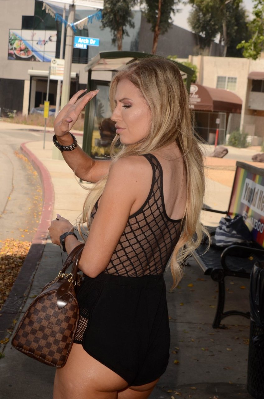 Бразильская плеймейт Ана Брага (36) была замечена в прозрачной кофте и коротких черных шортах во время шопинга в солнечный день в Студио-Сити, 08/05/2018.