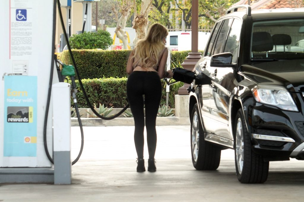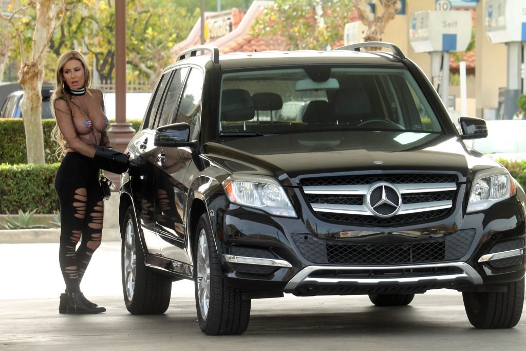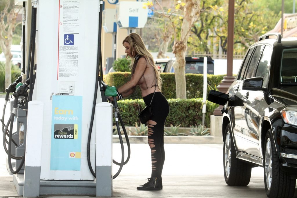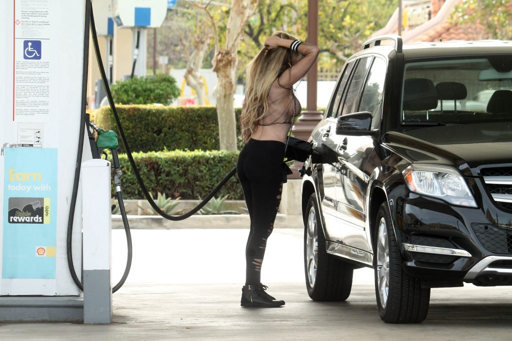 Бразильская модель Ана Брага была замечена в прозрачном топе и с наклейками на сосках, когда заправляла машину и позировала папарацци в Калабасас, 27.02.2018.