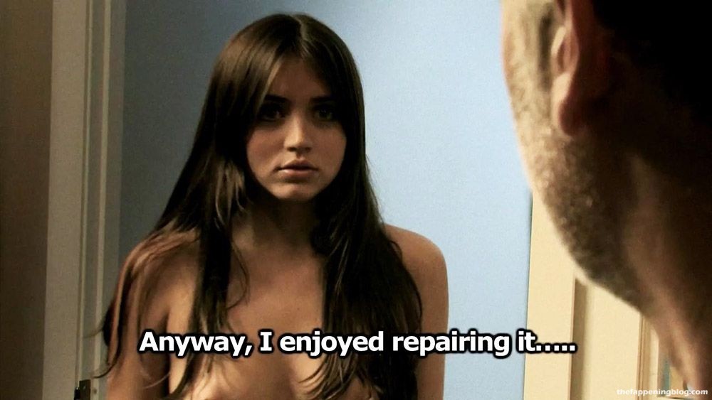 Вот Ана де Армас голая, after the guy undresses her on a bed, ending up in blue panties and bra. We then see her naked, showing her boobs and the butt, as she poses for the guy to take a picture before having sex. They end up having sex while Ana is in the guy’s lap.