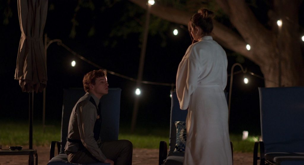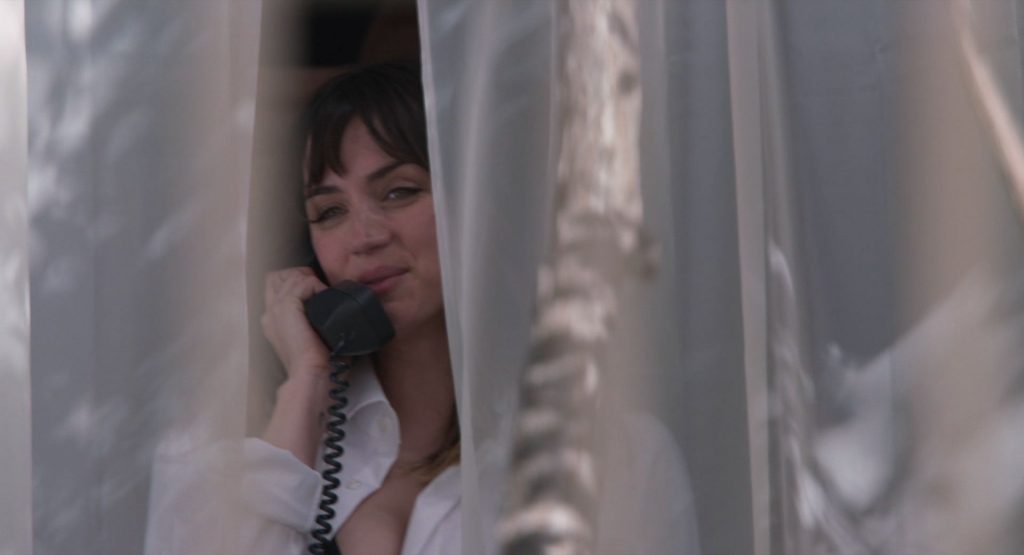 В самой интересной сцене Ана де Армас плавает топлесс в бассейне, обнажая грудь, когда начинает выходить из воды, прежде чем заметить парня, стоящего на краю с полотенцем в руке. Затем она некоторое время прижимает руки к груди, потом опускает их и встаёт, чтобы обернуться полотенцем.