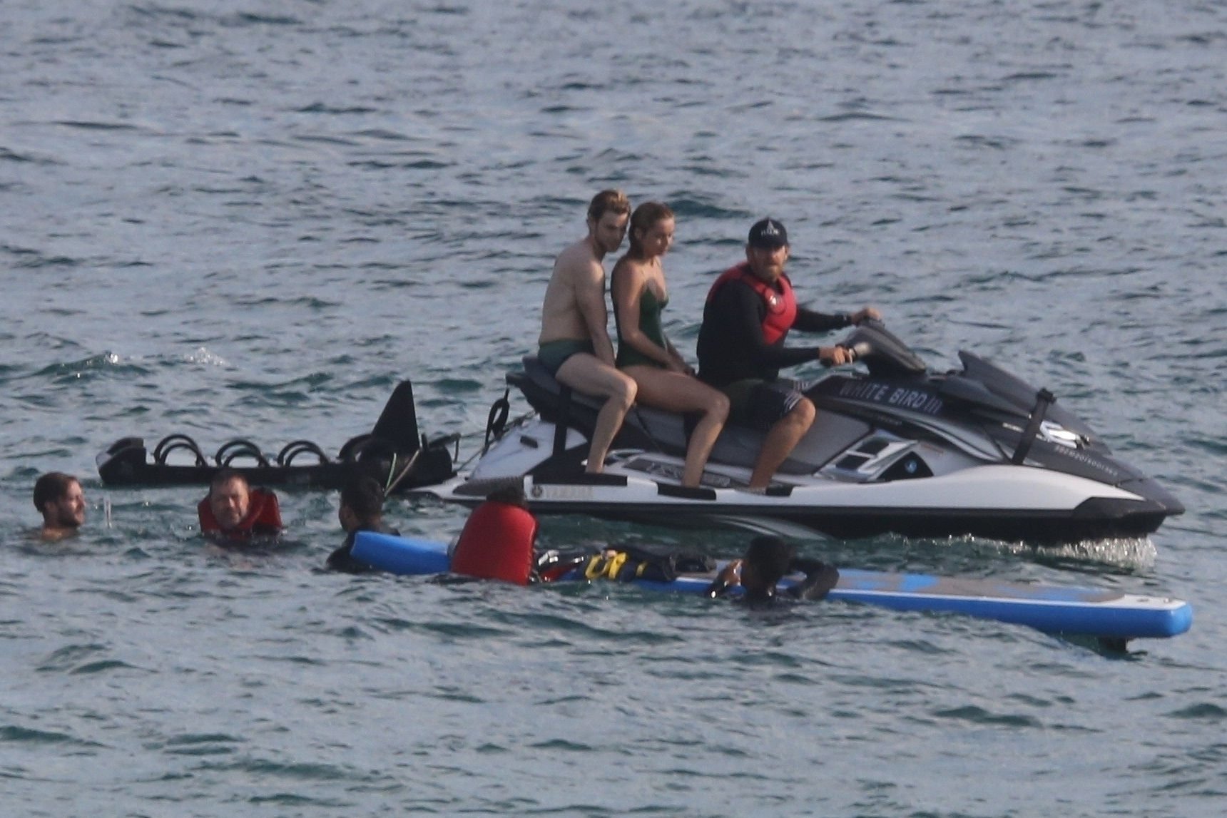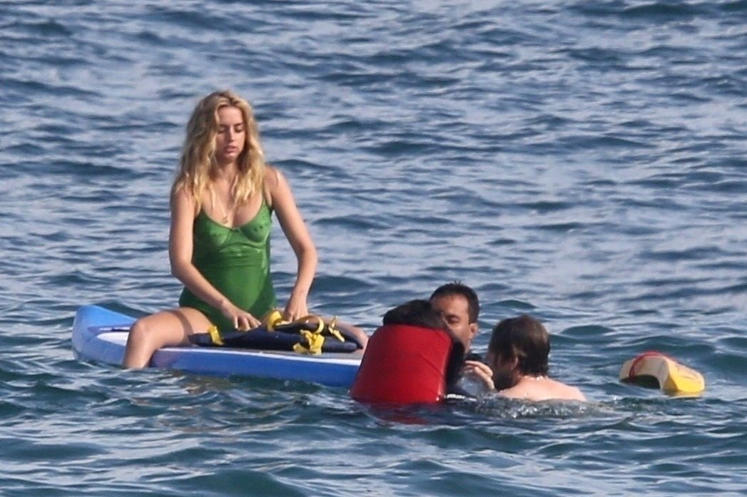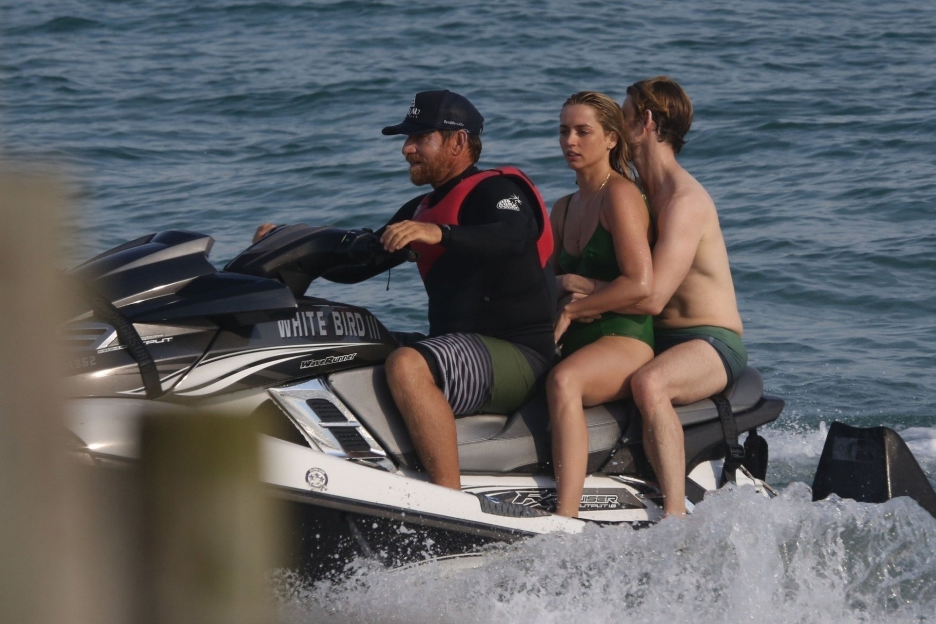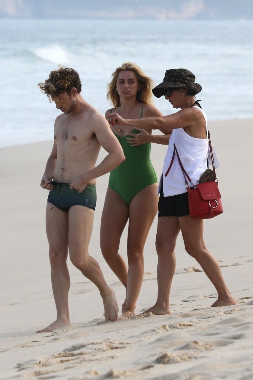 Ana de Armas плавает в зеленом цельном купальнике, снимая сцены для предстоящего проекта в Рио-де-Жанейро, 29.07.2018. Ана была в компании съемочной группы для водной прогулки, а также с коллегой-мужчиной по фильму.