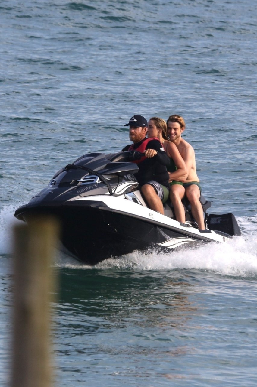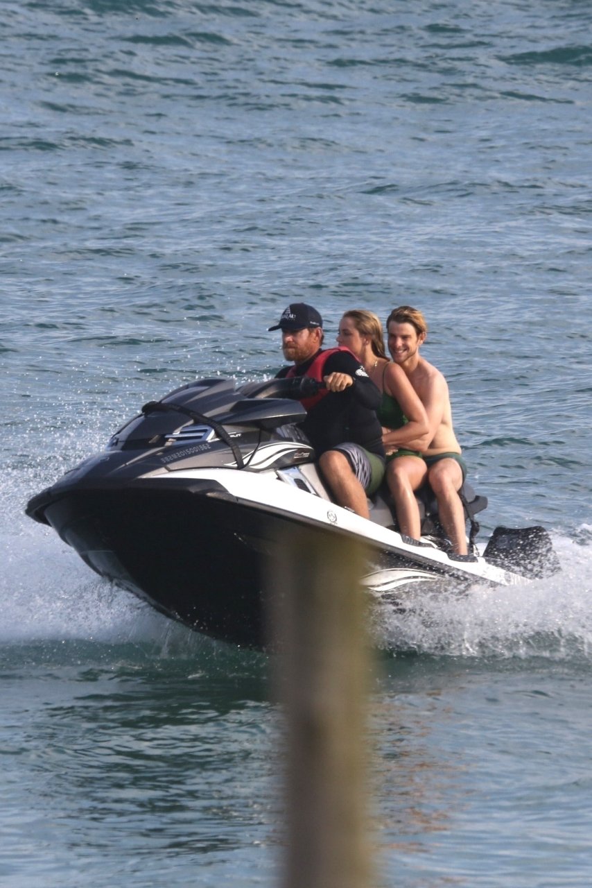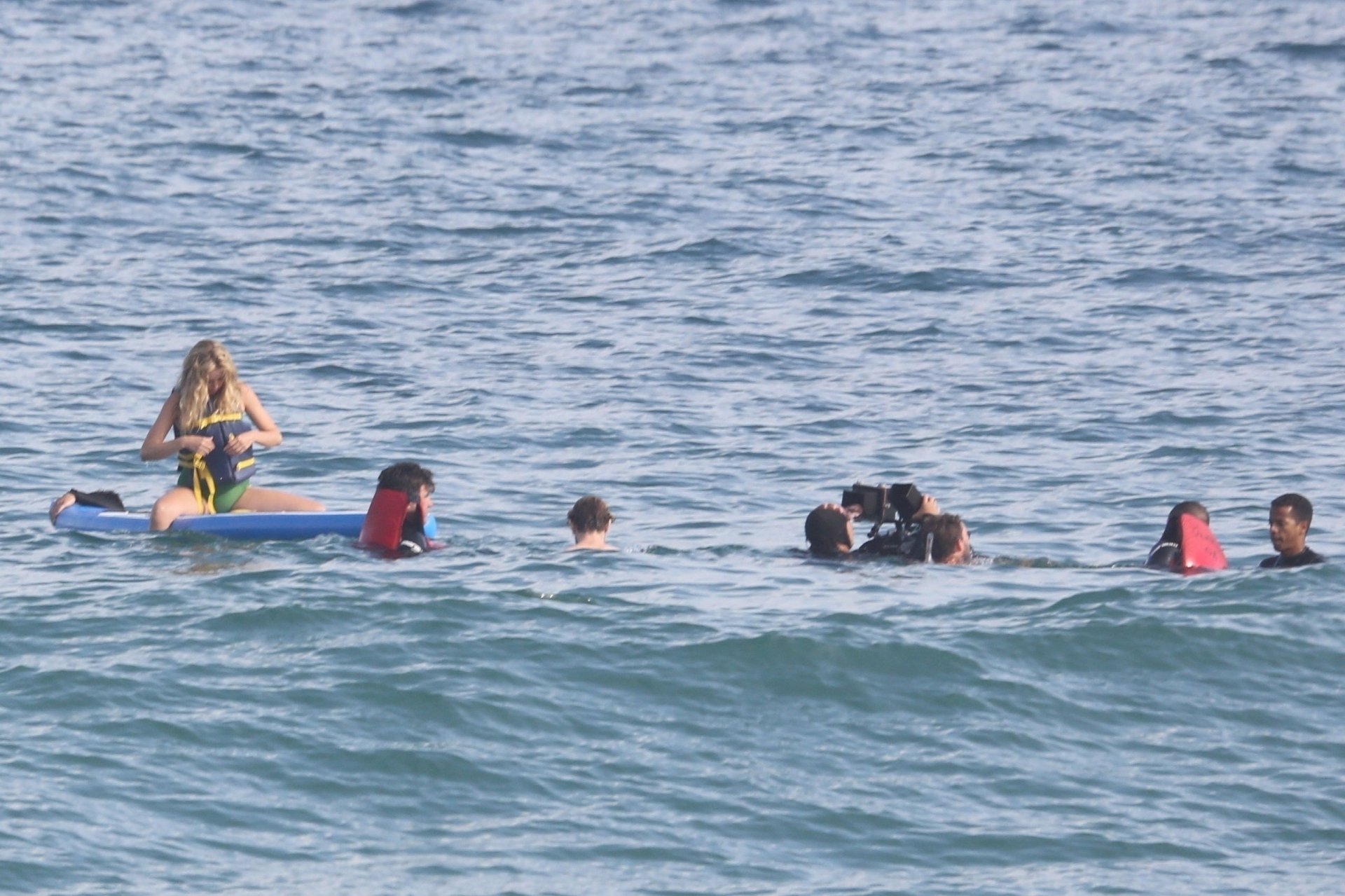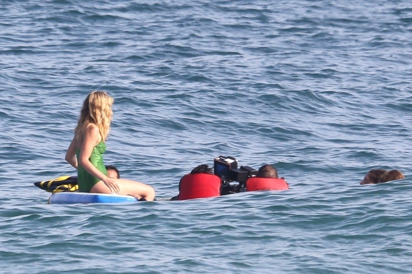 Ana de Armas плавает в зеленом цельном купальнике, снимая сцены для предстоящего проекта в Рио-де-Жанейро, 29.07.2018. Ана была в компании съемочной группы для водной прогулки, а также с коллегой-мужчиной по фильму.