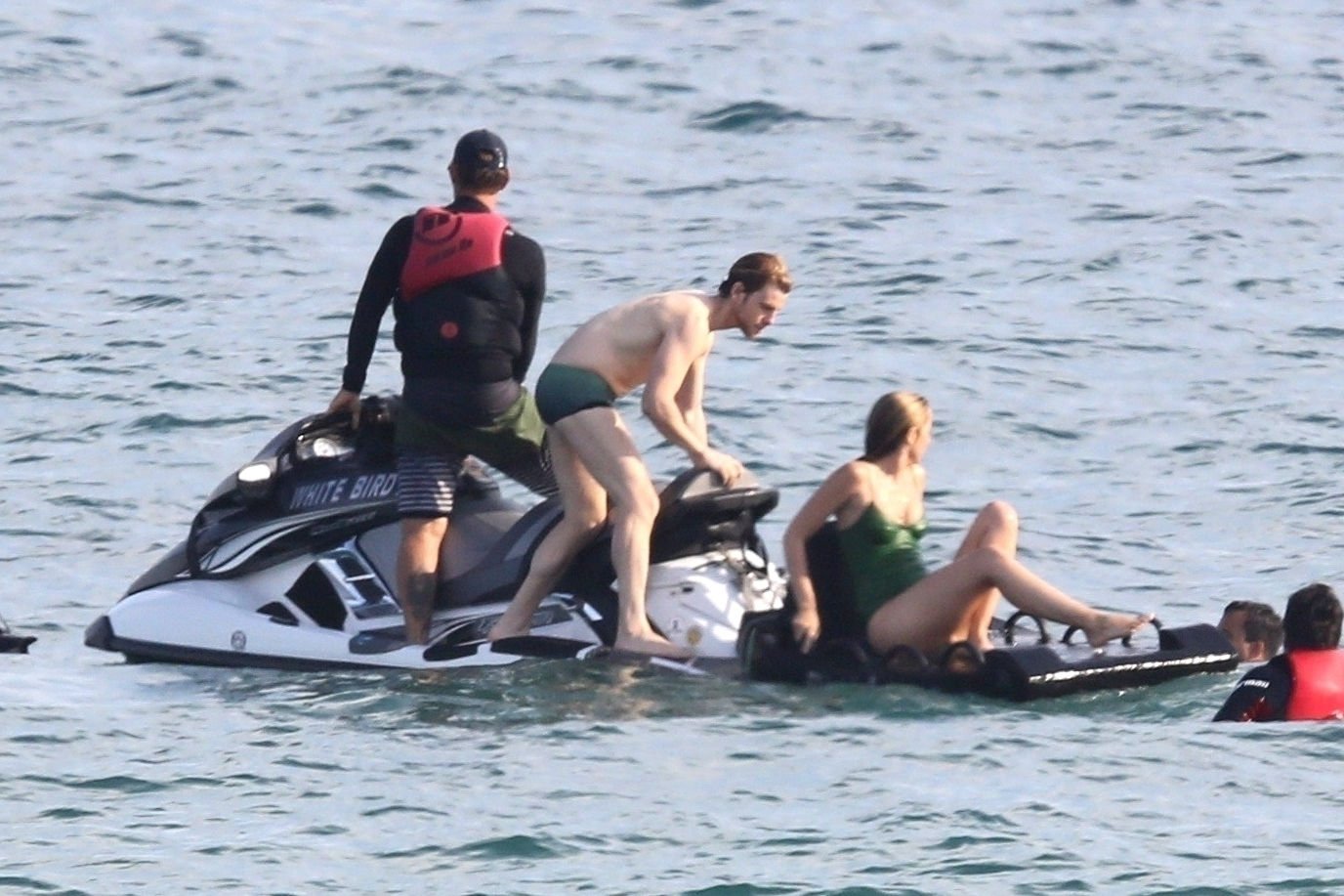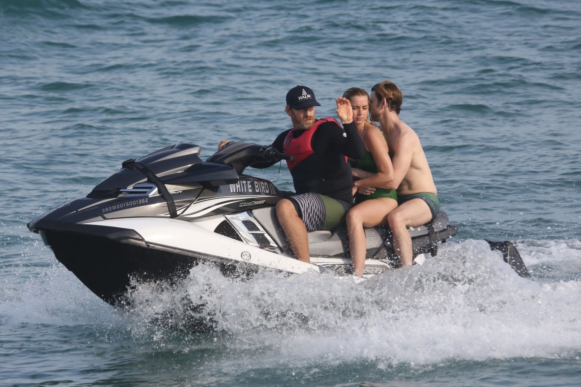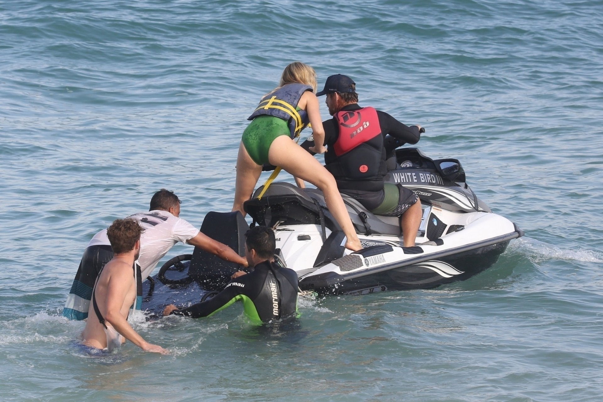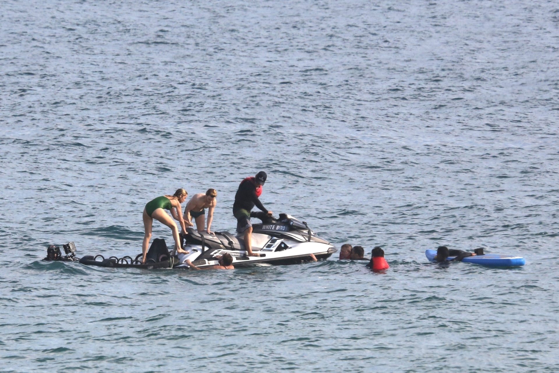 Ana de Armas плавает в зеленом цельном купальнике, снимая сцены для предстоящего проекта в Рио-де-Жанейро, 29.07.2018. Ана была в компании съемочной группы для водной прогулки, а также с коллегой-мужчиной по фильму.
