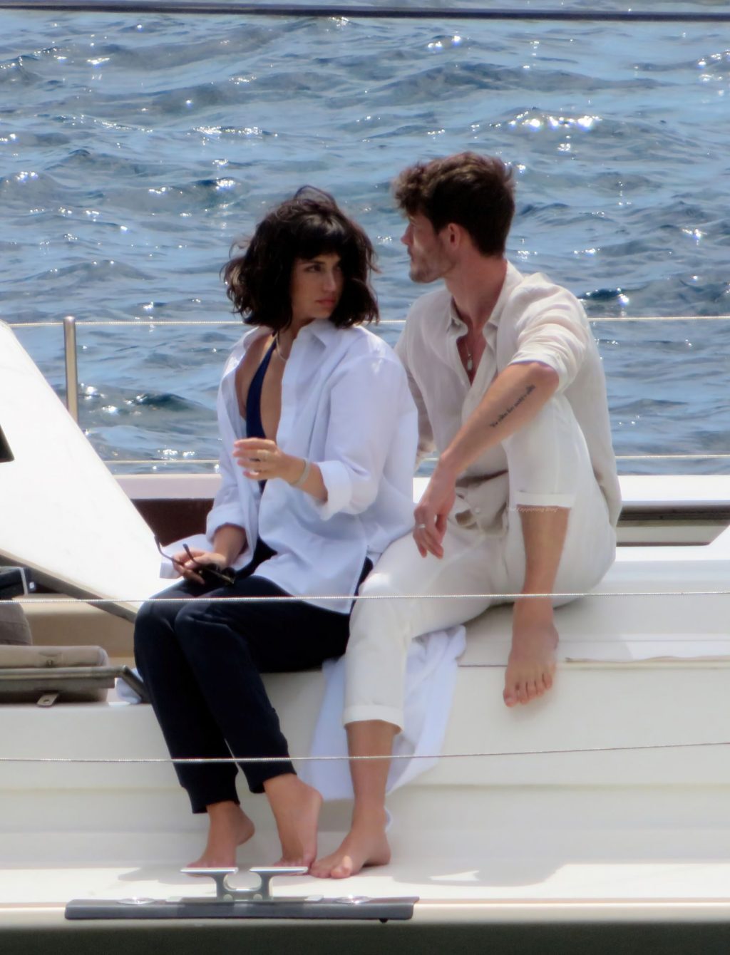 Брюнетка Ана де Армас демонстрирует своё красивое декольте, надев платье с глубоким вырезом, во время съёмок нового рекламного ролика для Natural Diamond Council на лодке в Пальма-де-Майорка, 13.05.2021.