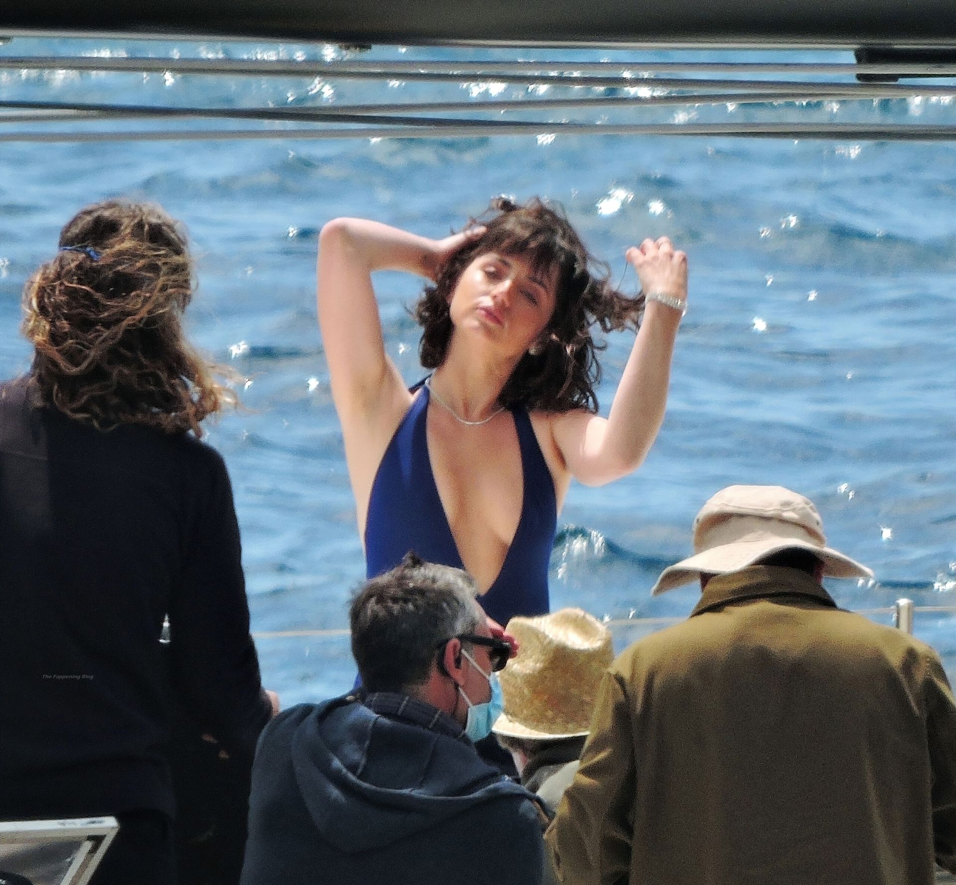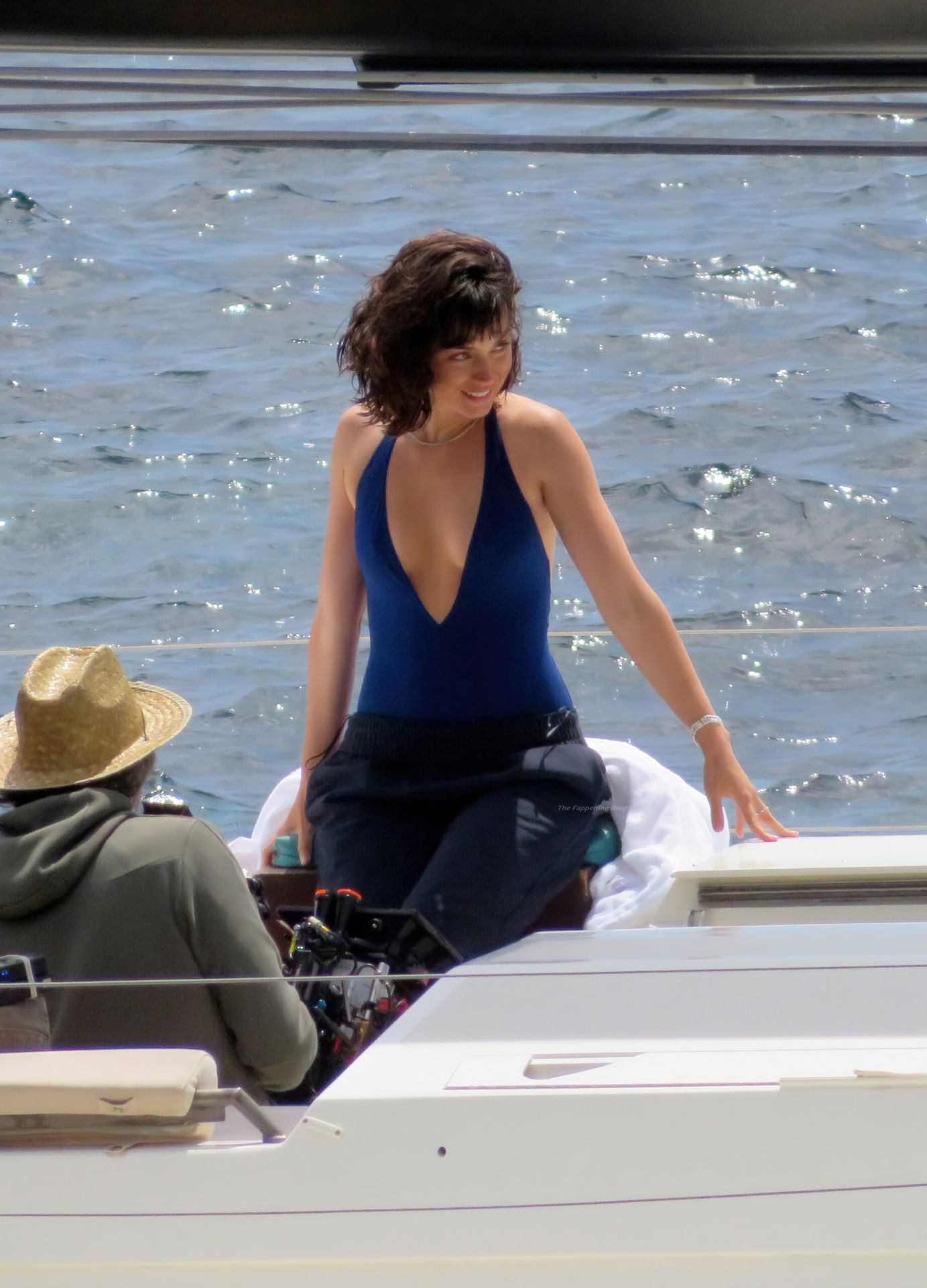 Брюнетка Ана де Армас демонстрирует своё красивое декольте, надев платье с глубоким вырезом, во время съёмок нового рекламного ролика для Natural Diamond Council на лодке в Пальма-де-Майорка, 13.05.2021.