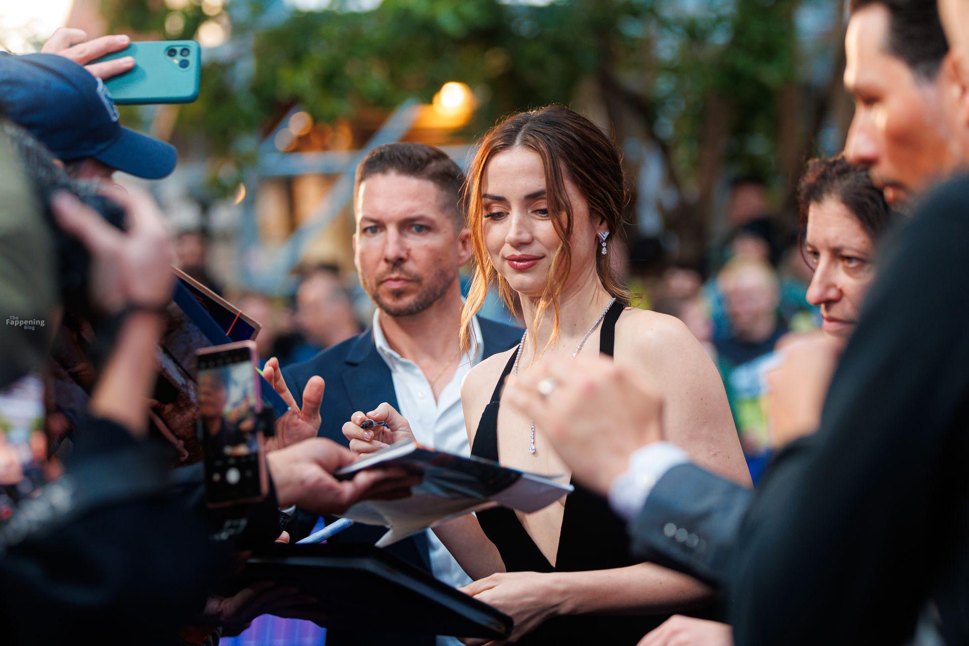 На премьере фильма «Балерина» (нет, это про наёмницу, а не про танцовщицу, действие происходит во вселенной Джона Уика) Ана де Армас появилась в элегантном чёрном платье в пол с глубоким декольте.