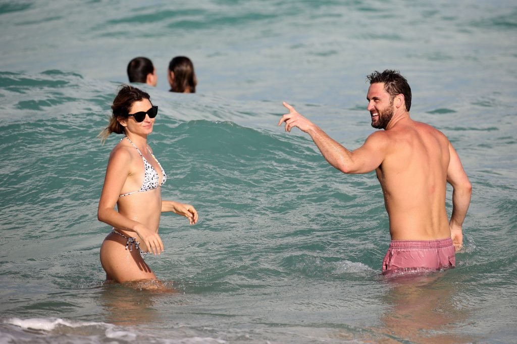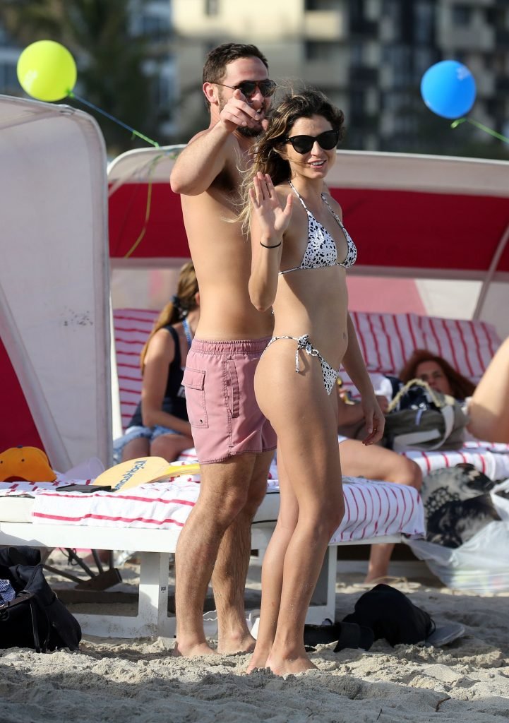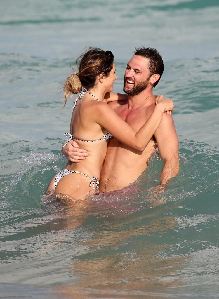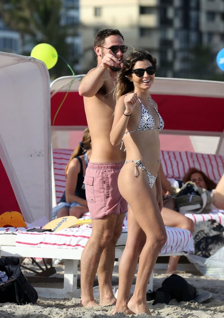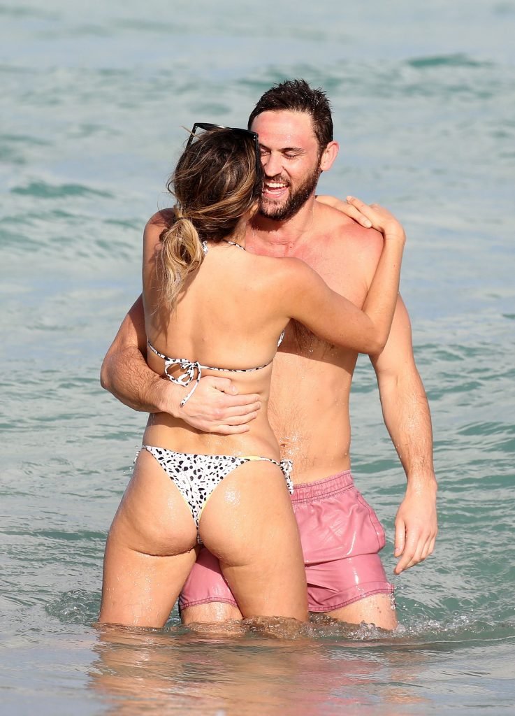 Профессиональная серфингистка и модель Анастасия Эшли носит крошечное бикини на тонких бретелях и демонстрирует много публичных проявлений чувств со своим парнем на пляже в Майами, 10.02.2018. Любительница пляжа отмечала свой 31-й день рождения с мужчиной рядом, получая много объятий и поцелуев, пьёт шампанское и купается.