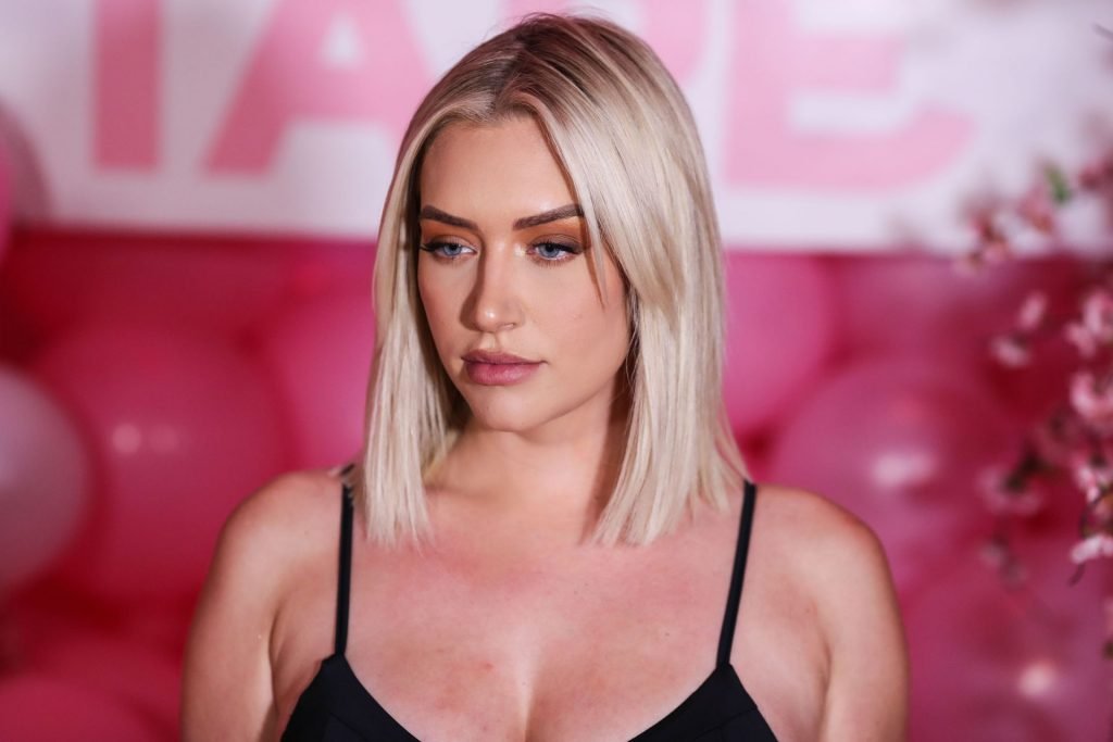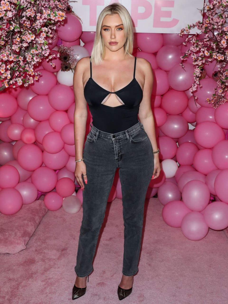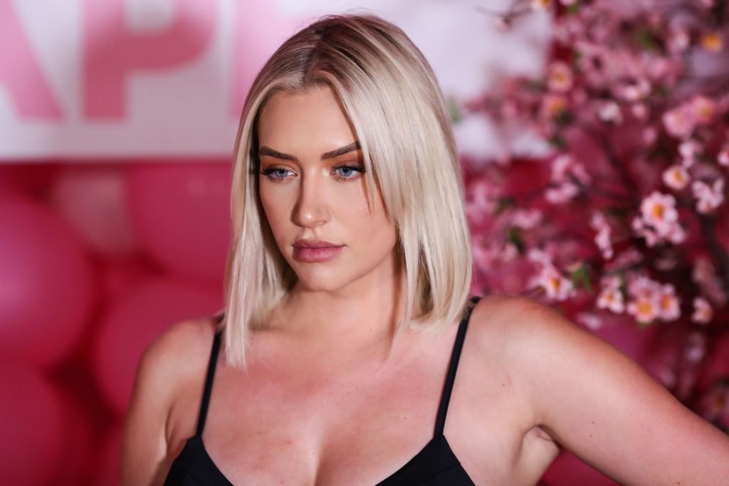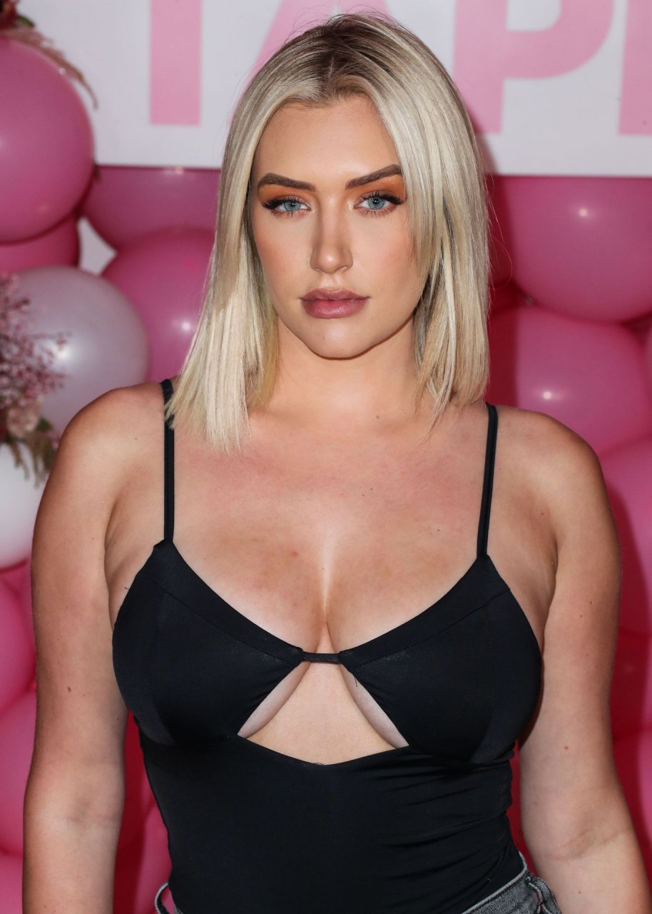 Звезда социальных сетей Анастасия Караниколау продемонстрировала свою грудь на розовой дорожке, надев черный топ на вечеринке запуска Booby Tape USA, которая состоялась в Stanley Social в Вест-Голливуде, 25.07.2019.