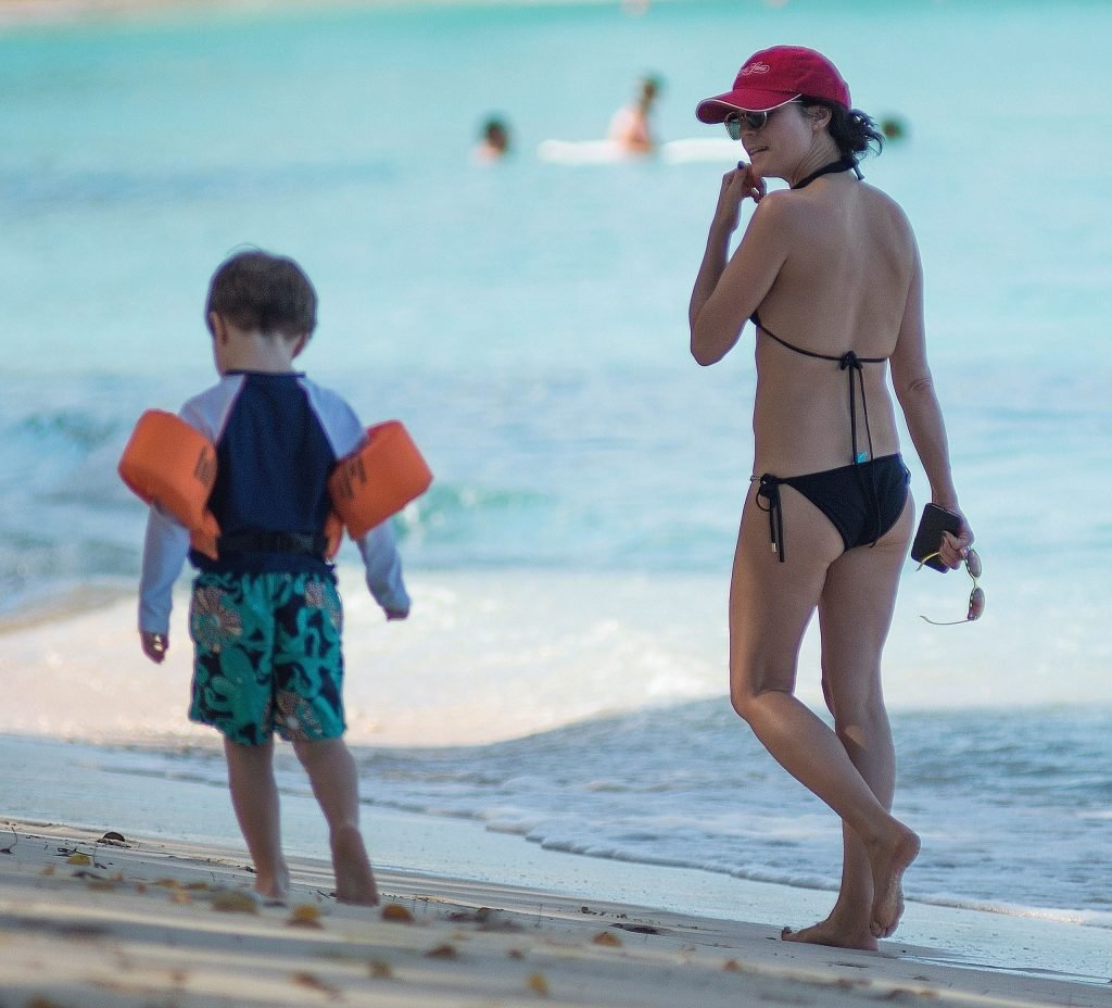 Ирландская актриса и певица Андреа Корр, 43 года, надевает черный бикини и наслаждается расслабляющим днем на пляже с семьей на Барбадосе, 24.03.2018. Андреа прогуливалась вдоль берега и немного плавала.