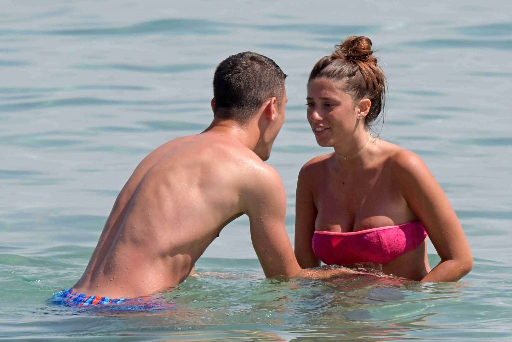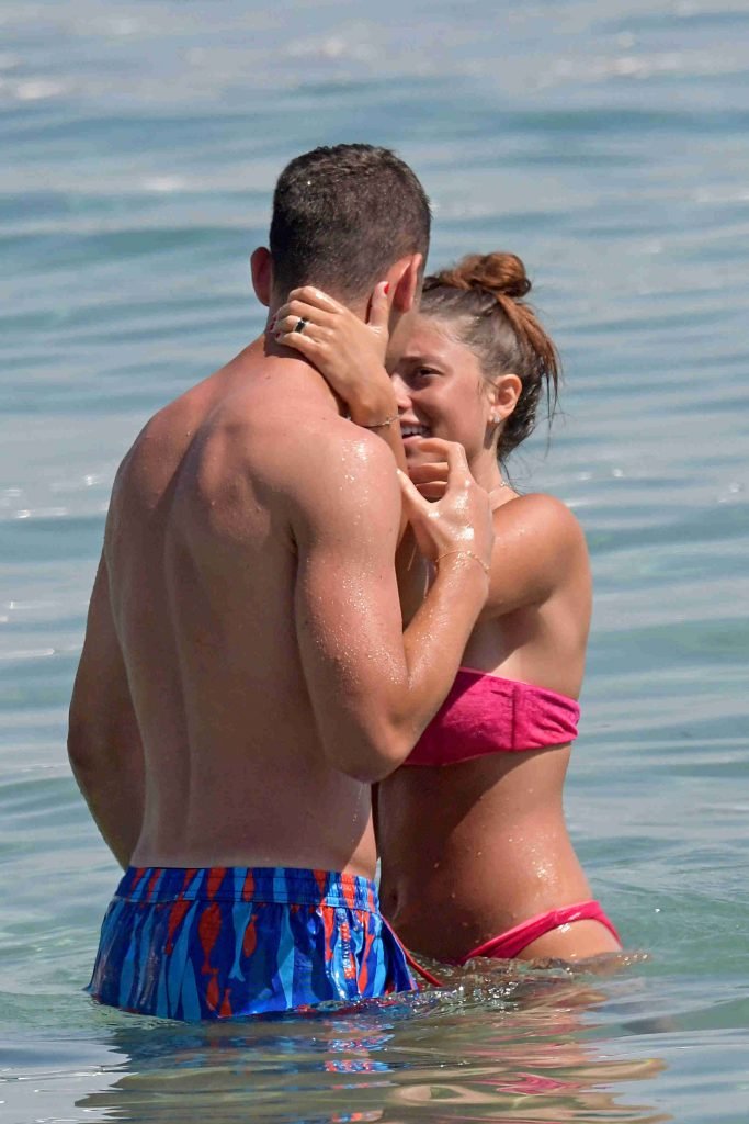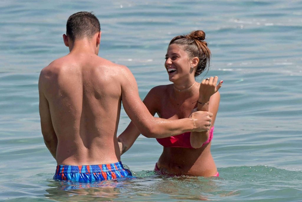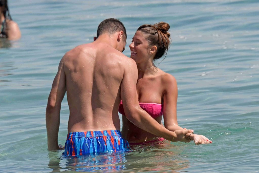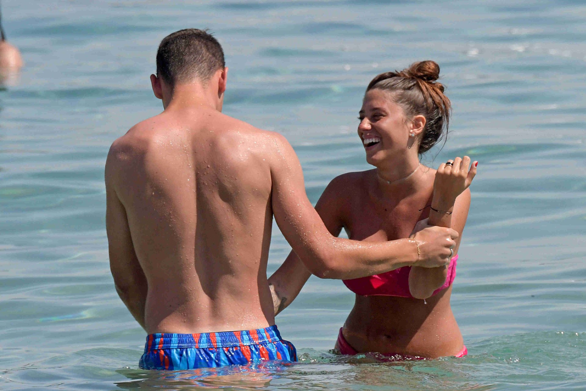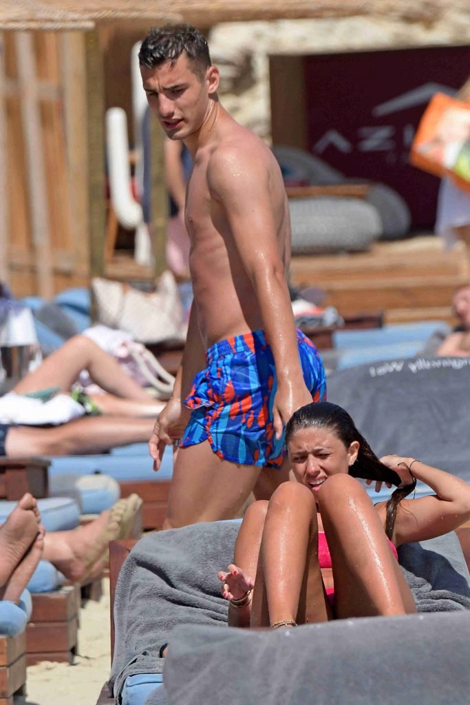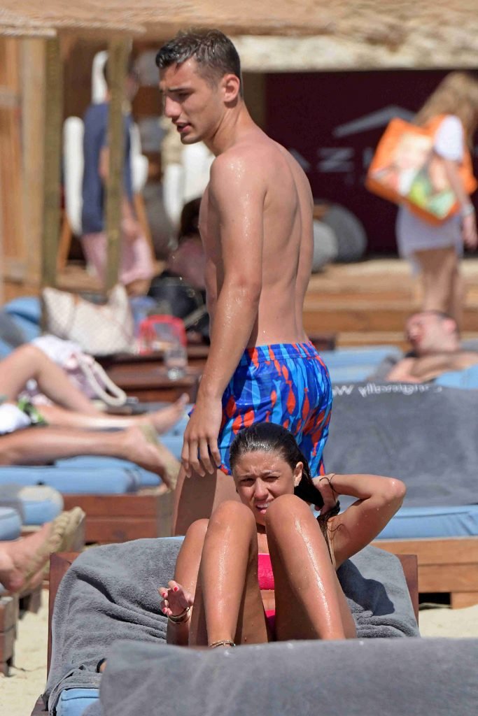 Футболист «Сампдории» Федерико Бонаццоли и 20-летняя итальянская модная блогер Анжела Насти наслаждаются днем на пляже в ресторане Solymar на пляже Кало Ливади на Миконосе, Греция, 14.06.2018.