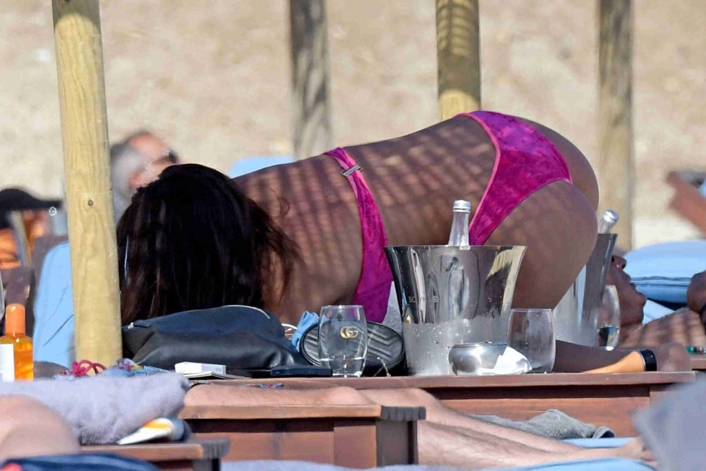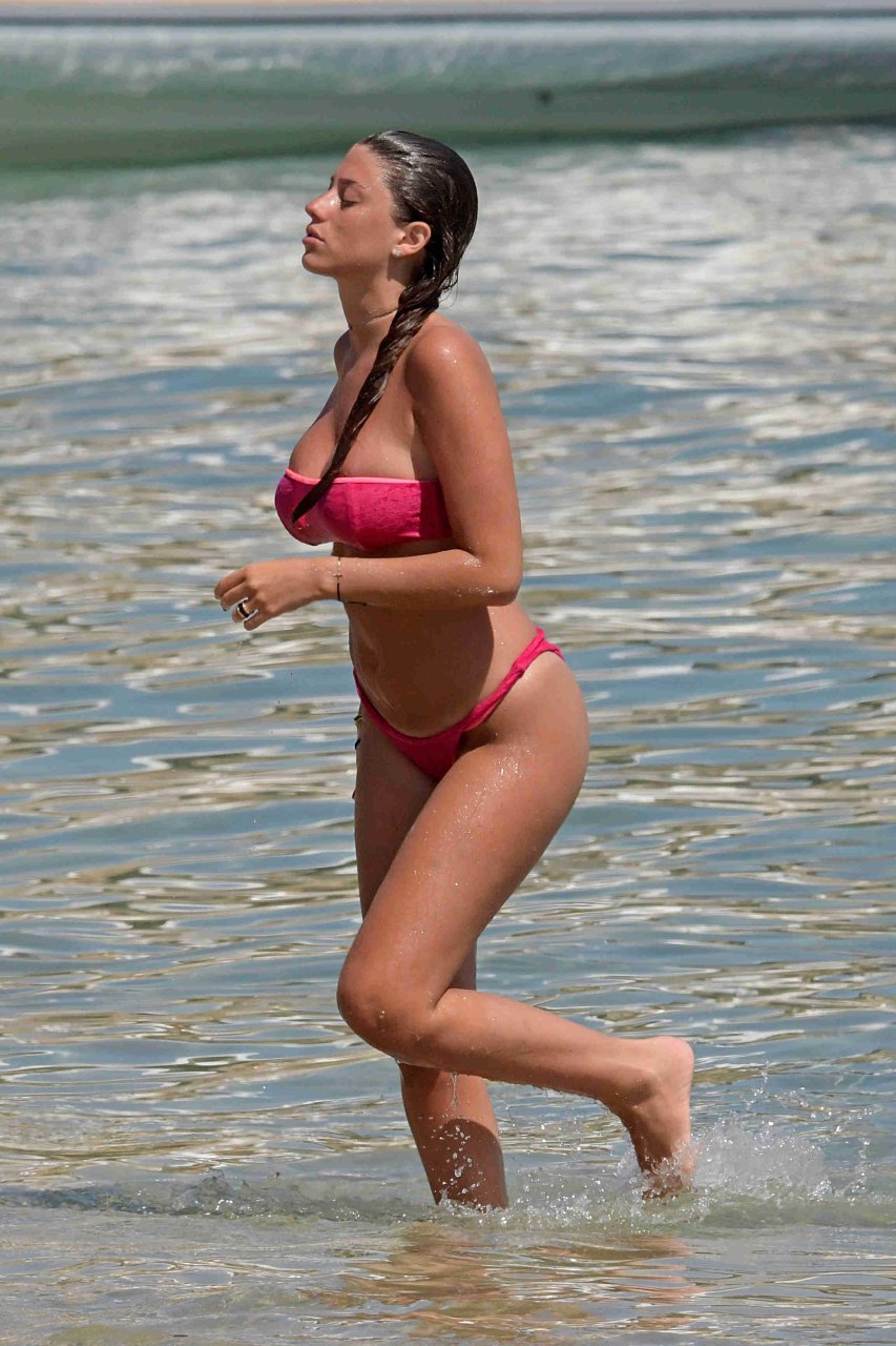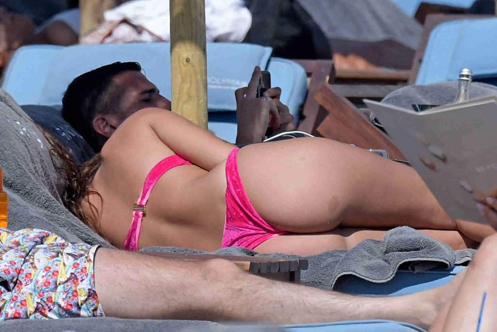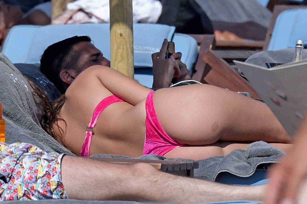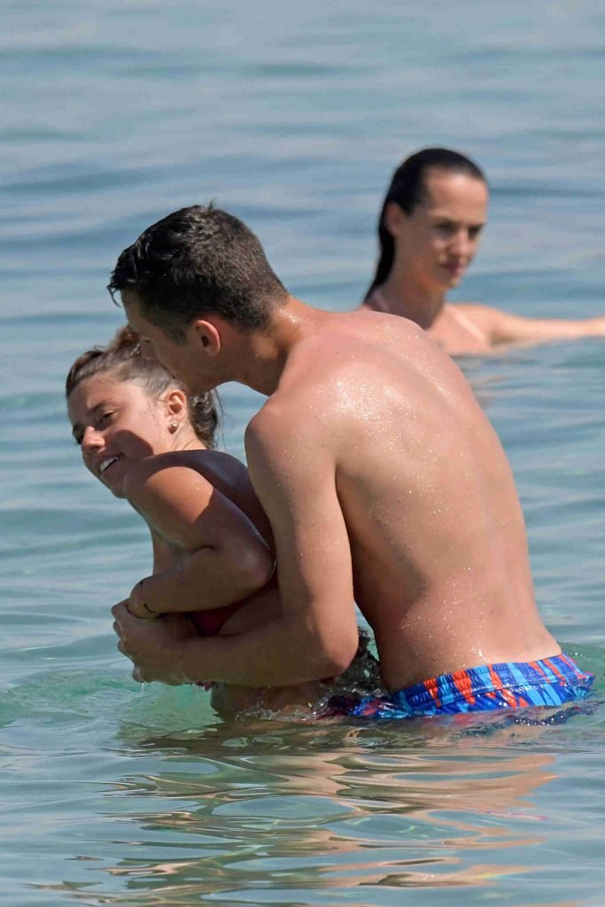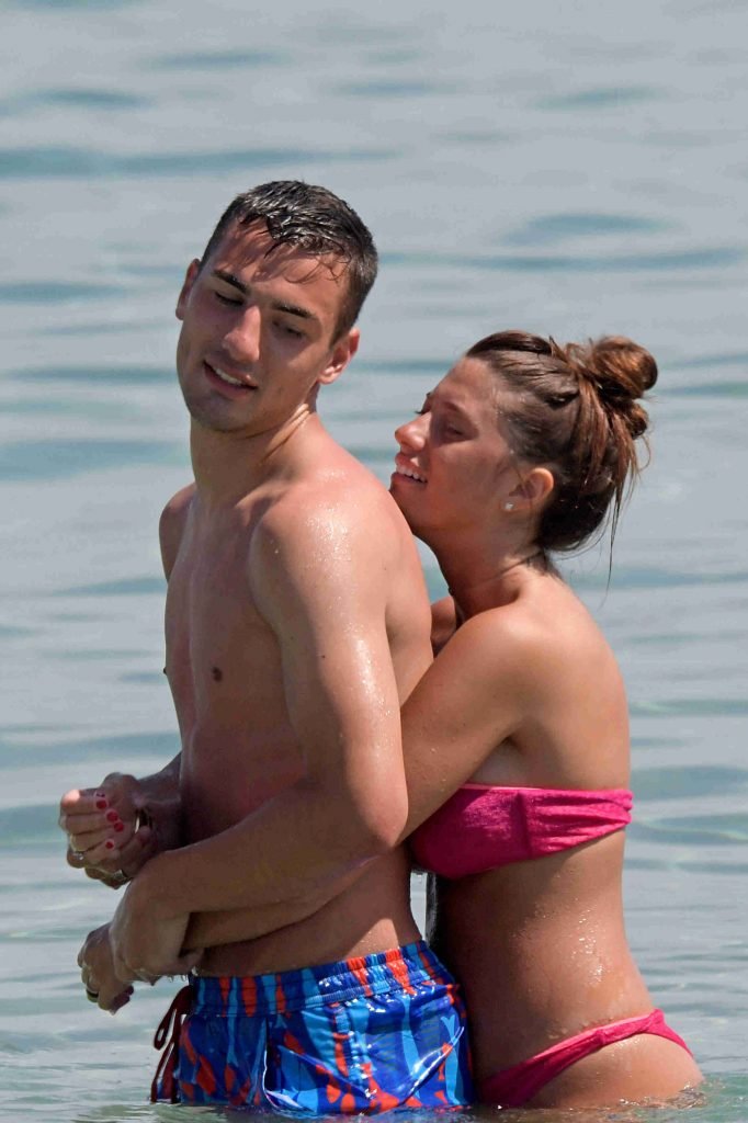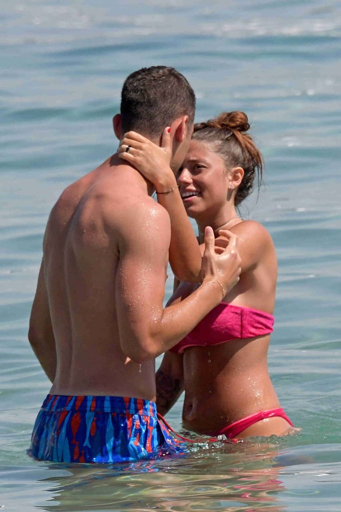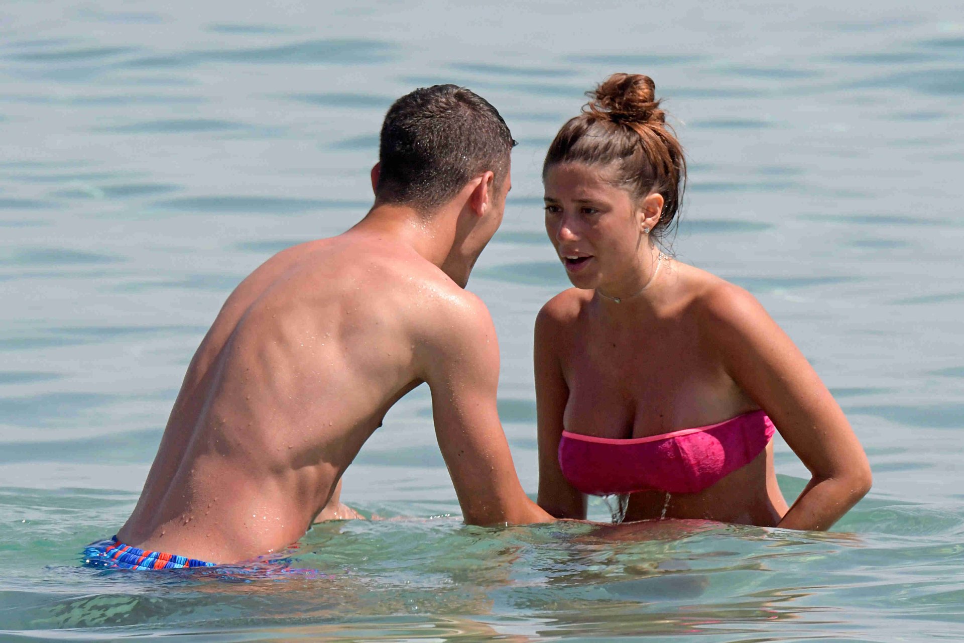 Футболист «Сампдории» Федерико Бонаццоли и 20-летняя итальянская модная блогер Анжела Насти наслаждаются днем на пляже в ресторане Solymar на пляже Кало Ливади на Миконосе, Греция, 14.06.2018.
