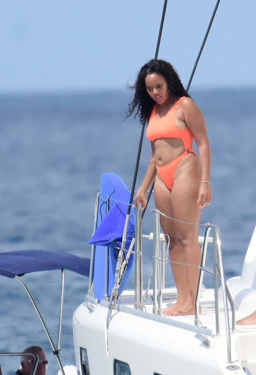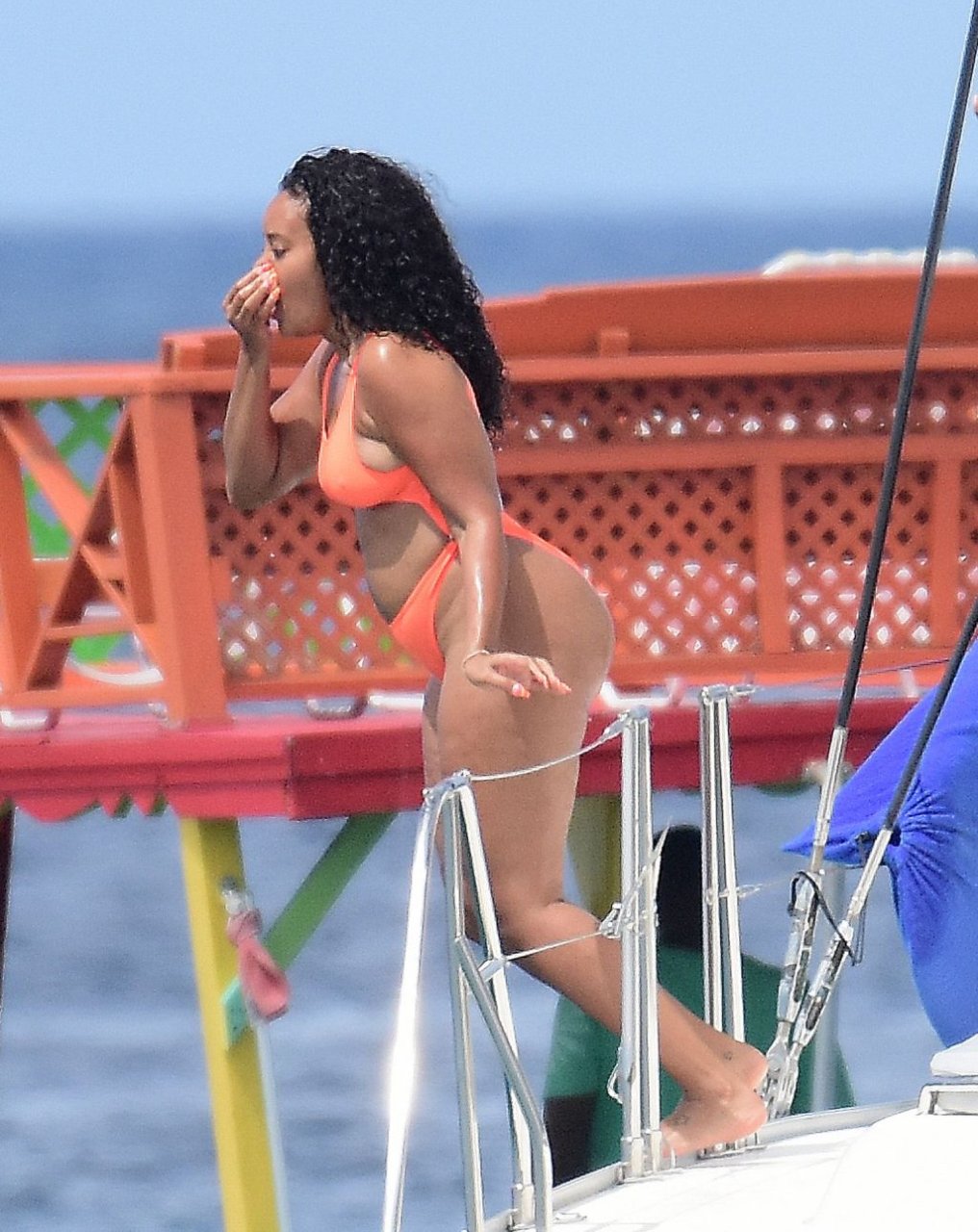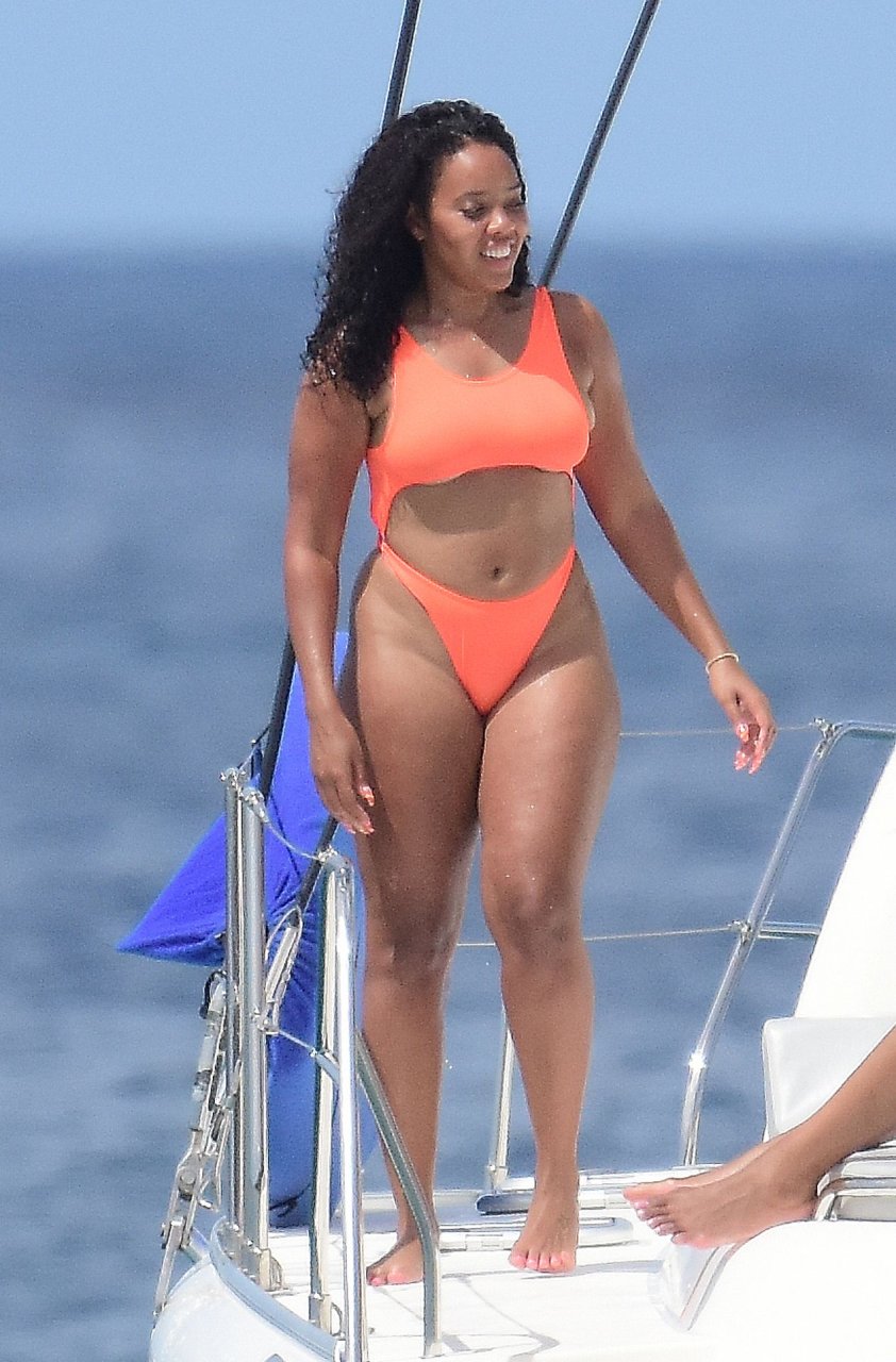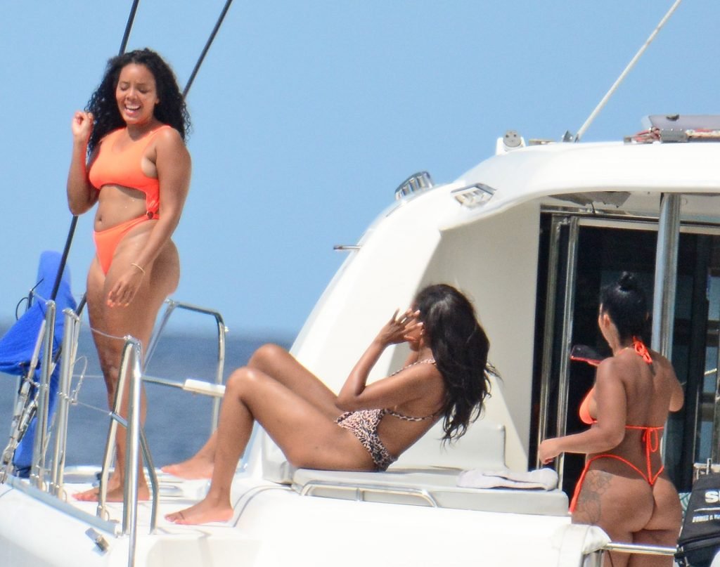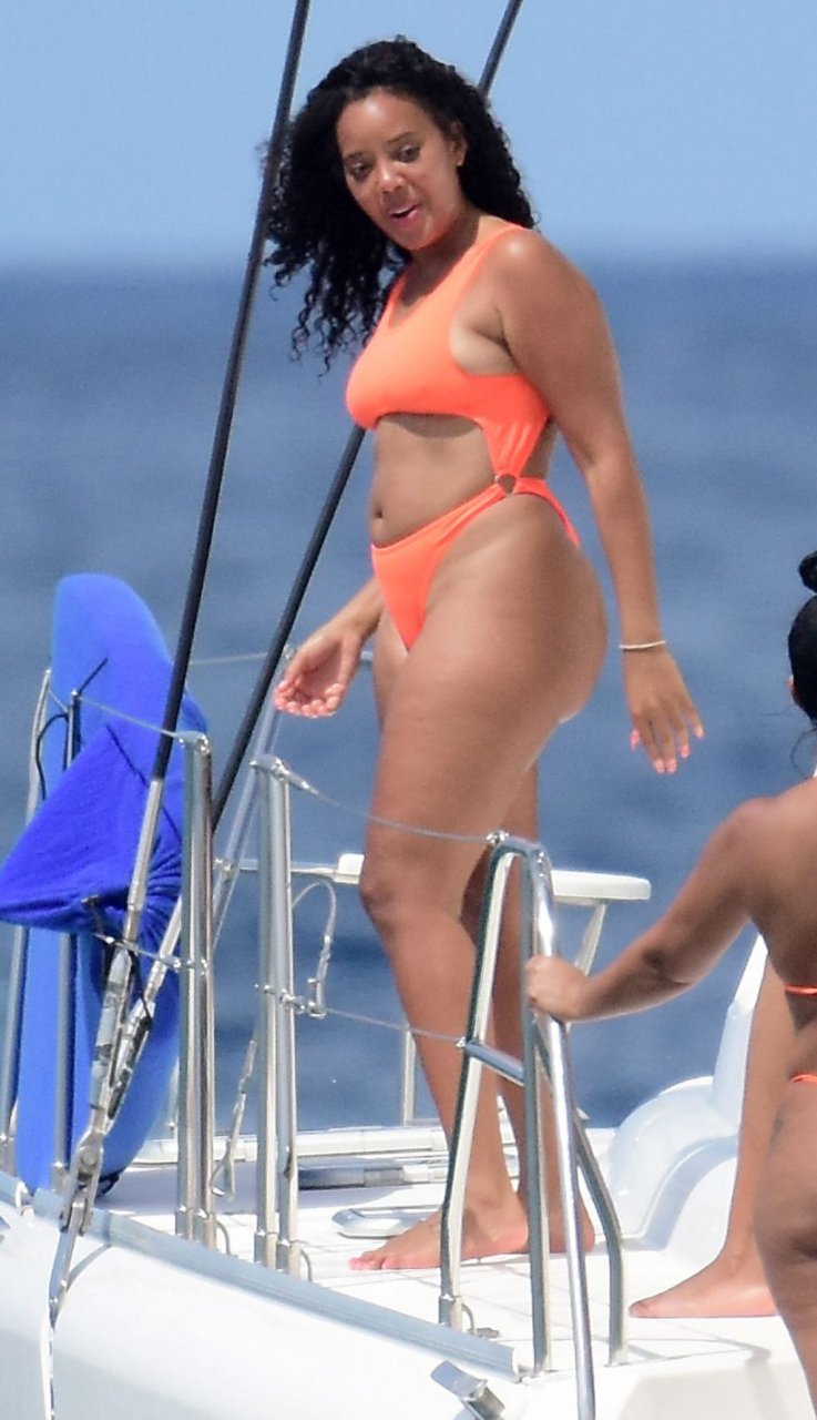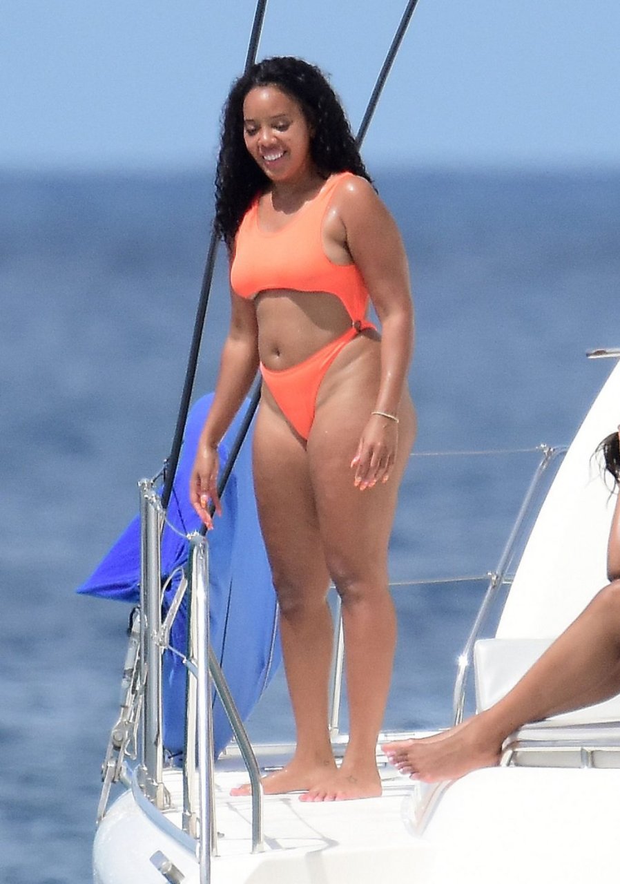 Анжела Симмонс демонстрирует тело в оранжевом бикини на катамаране с друзьями на Барбадосе, 02/07/2019. Анжела Симмонс — 31-летняя американская звезда реалити-шоу (Run’s House, Daddy’s Girls) и дизайнер обуви/одежды.