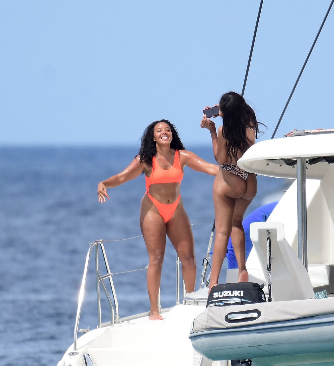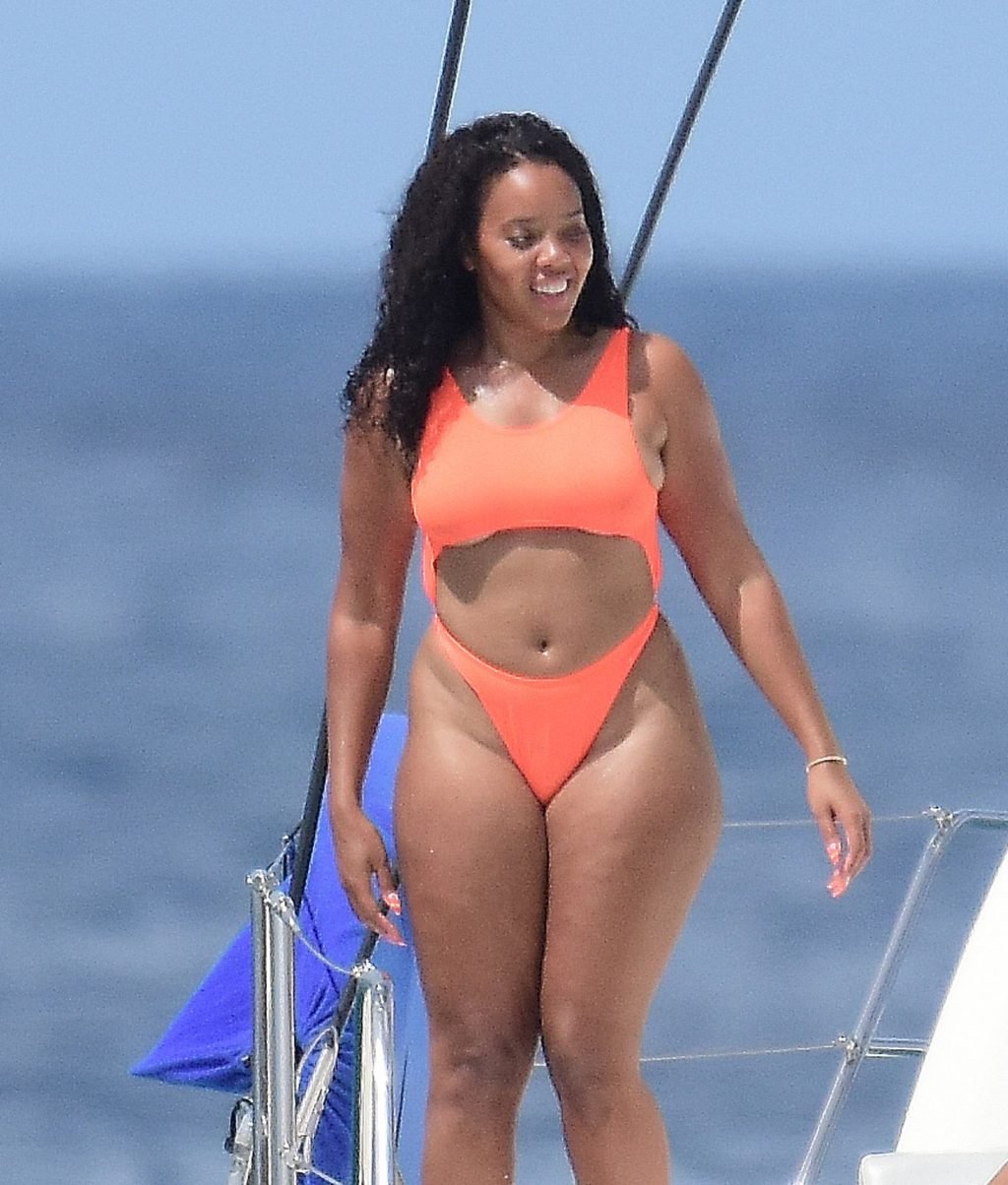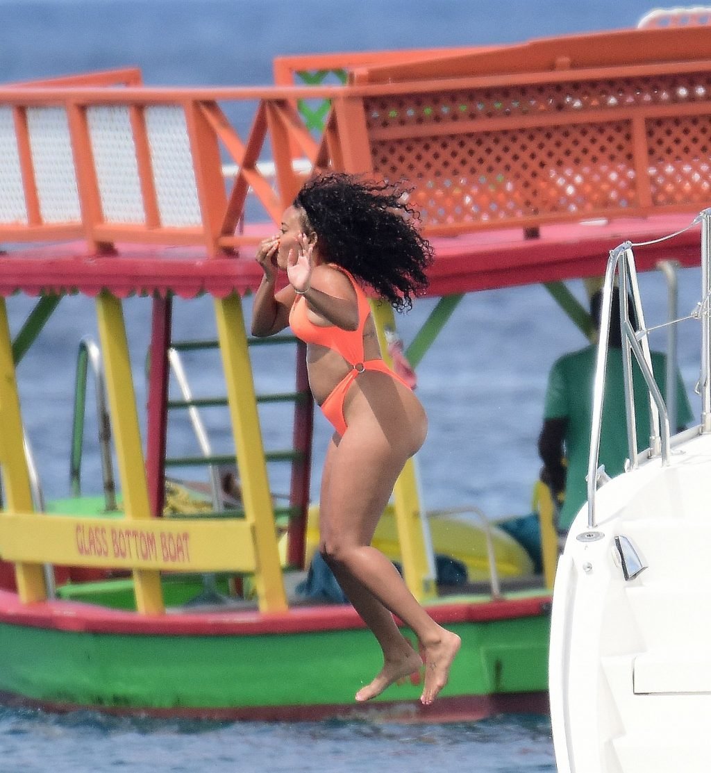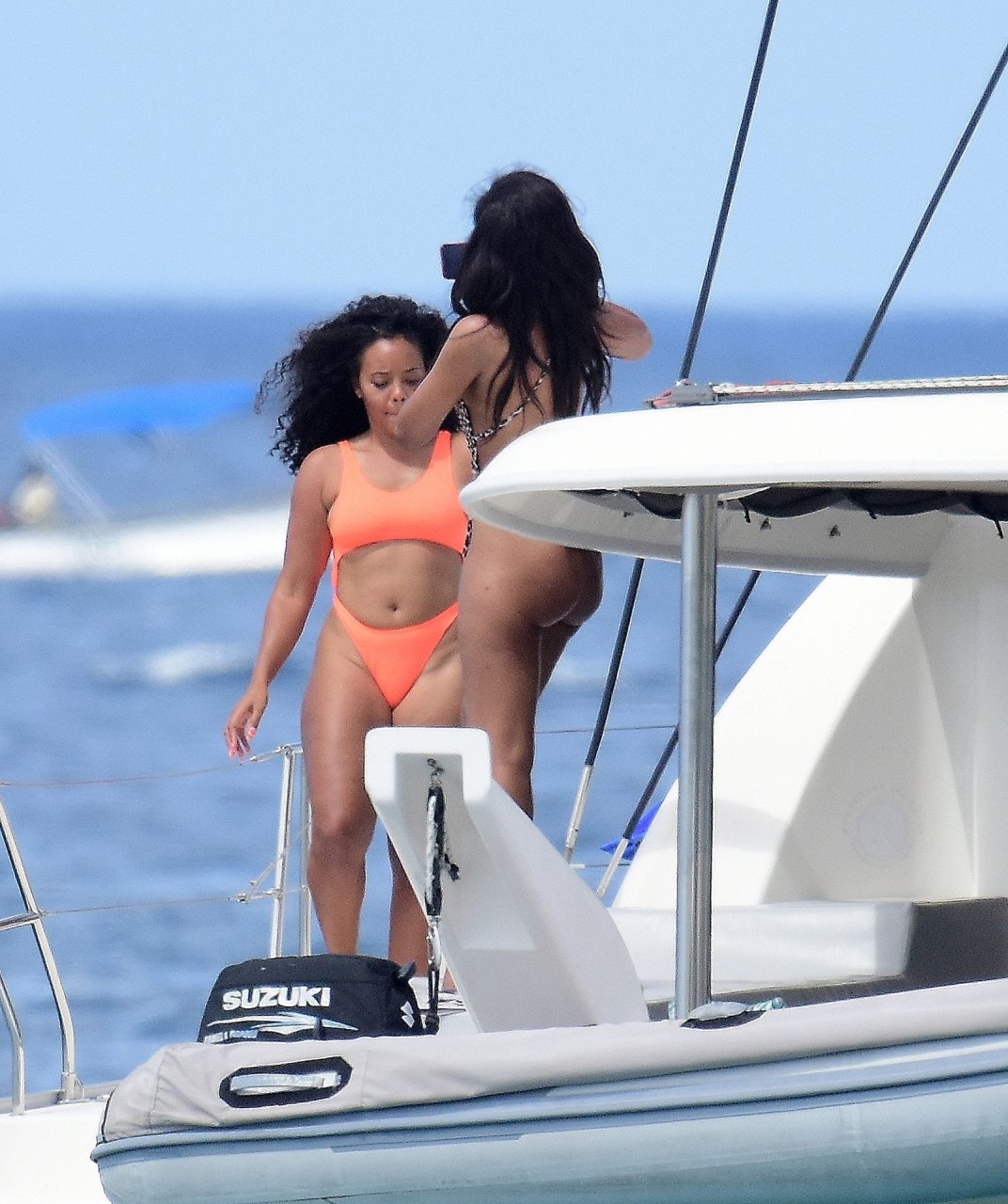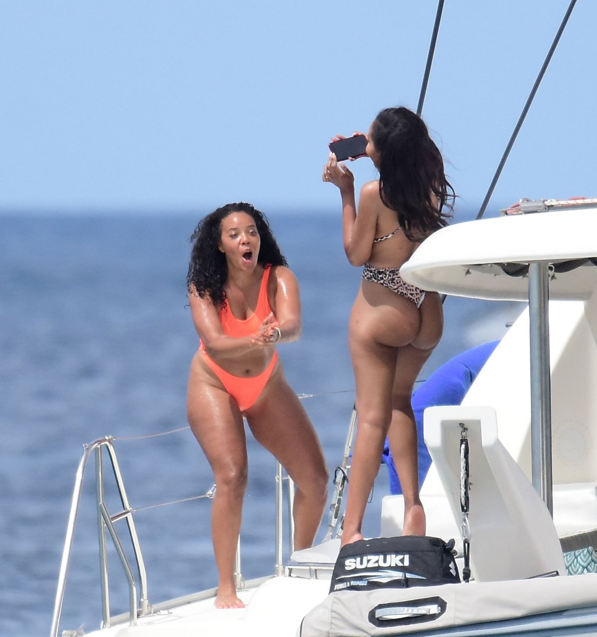 Анжела Симмонс демонстрирует тело в оранжевом бикини на катамаране с друзьями на Барбадосе, 02/07/2019. Анжела Симмонс — 31-летняя американская звезда реалити-шоу (Run’s House, Daddy’s Girls) и дизайнер обуви/одежды.
