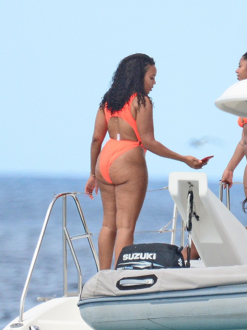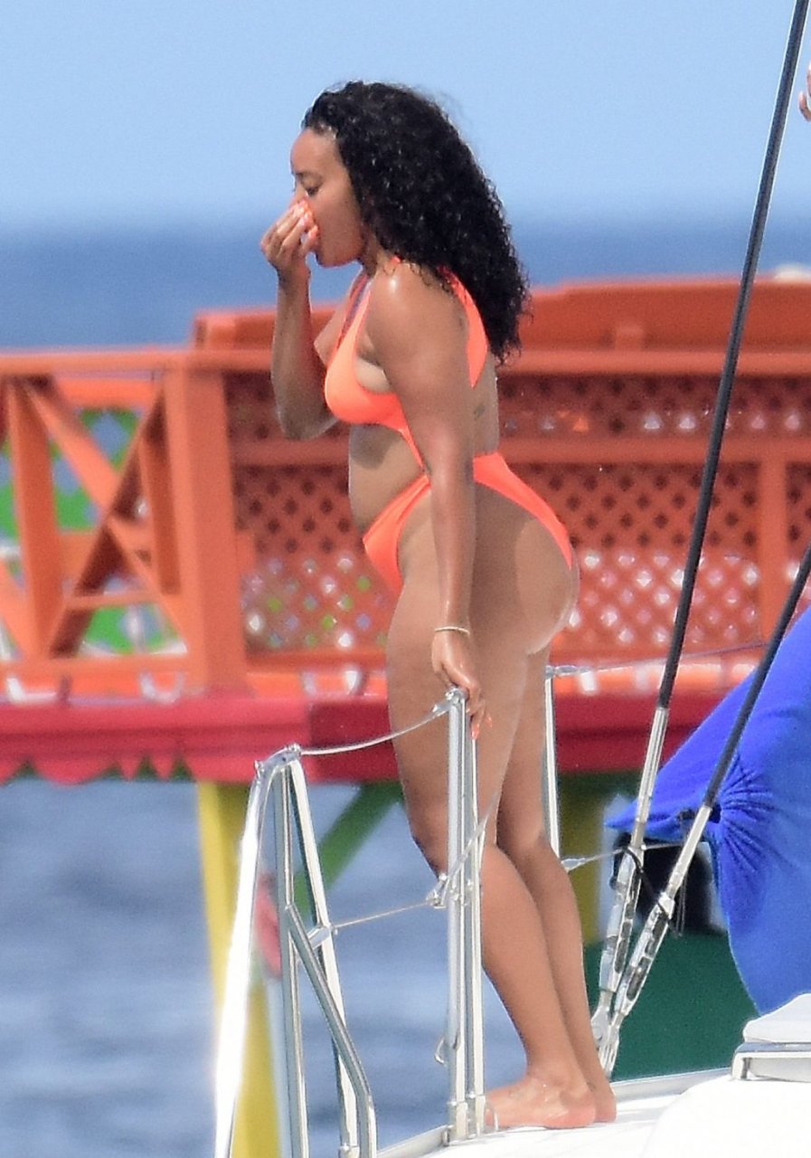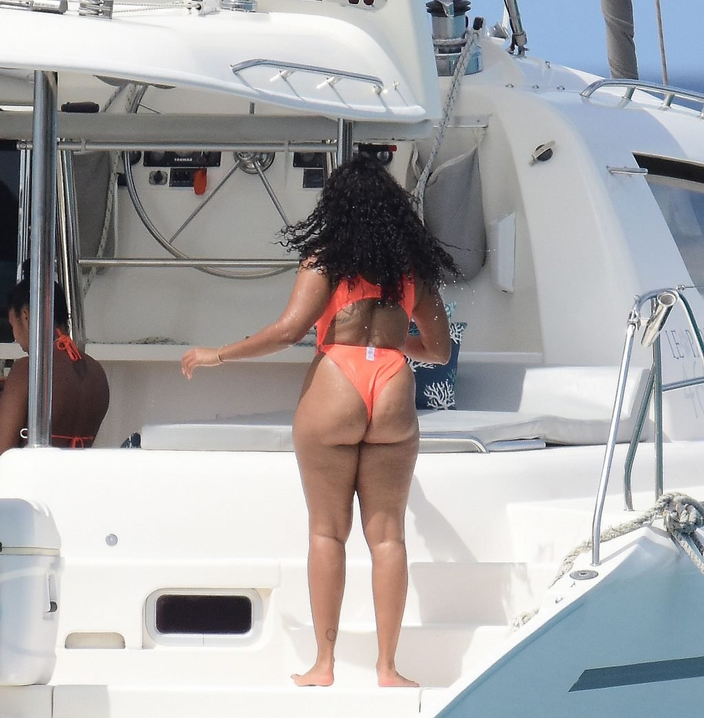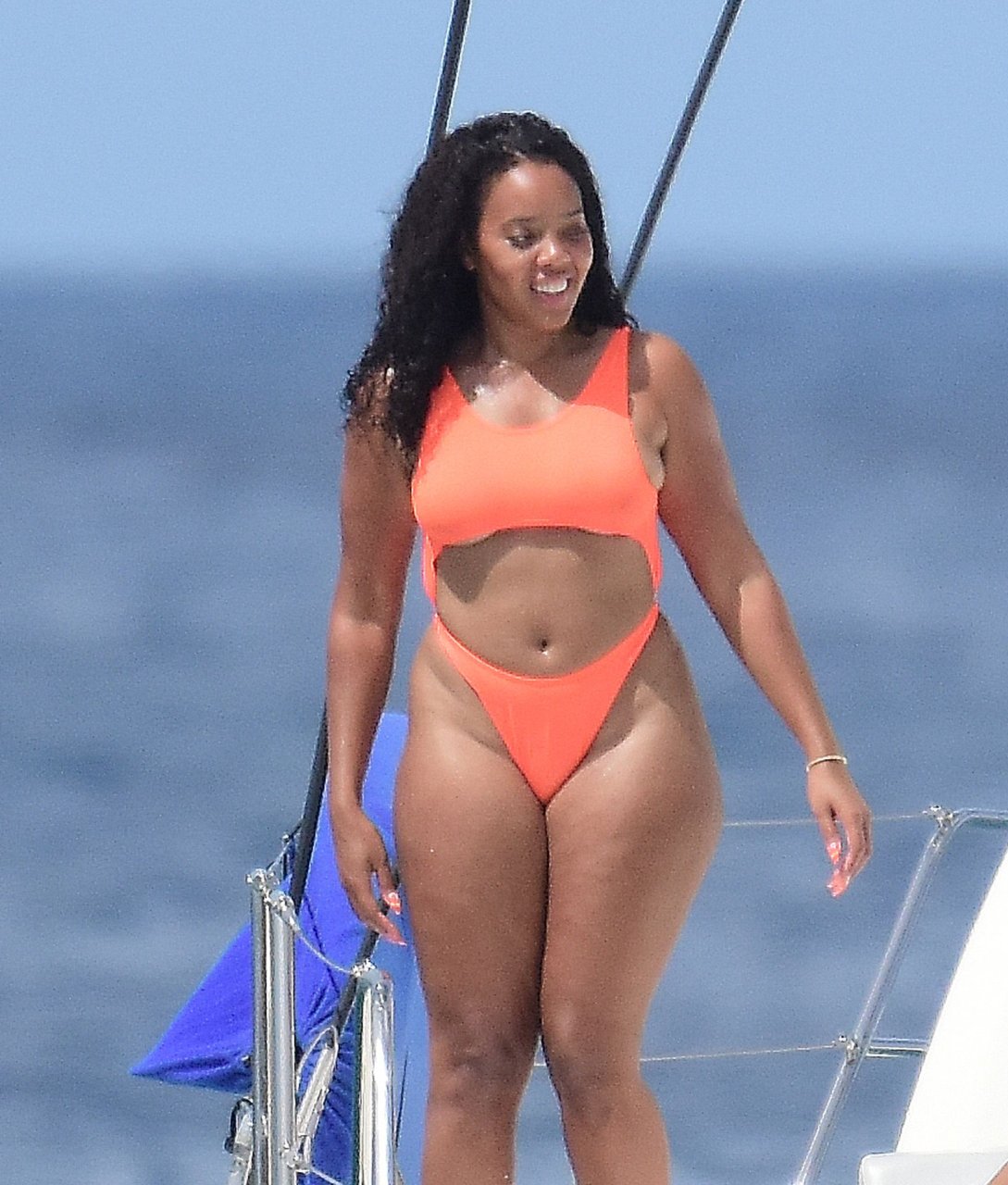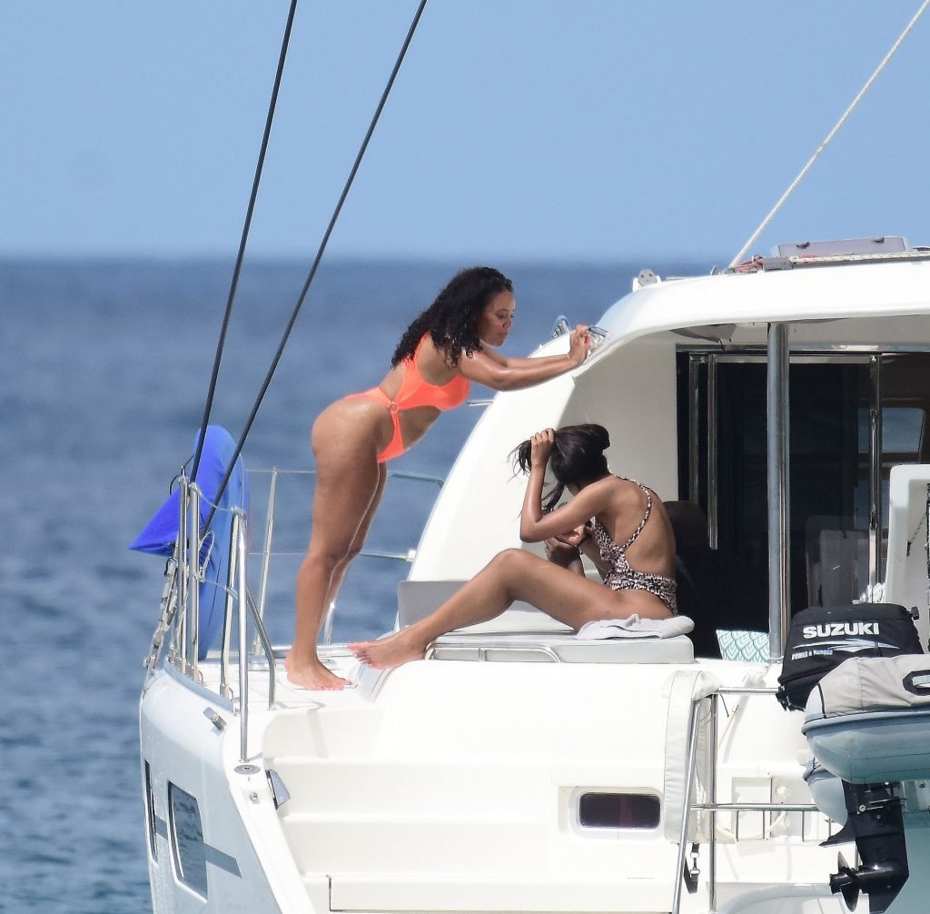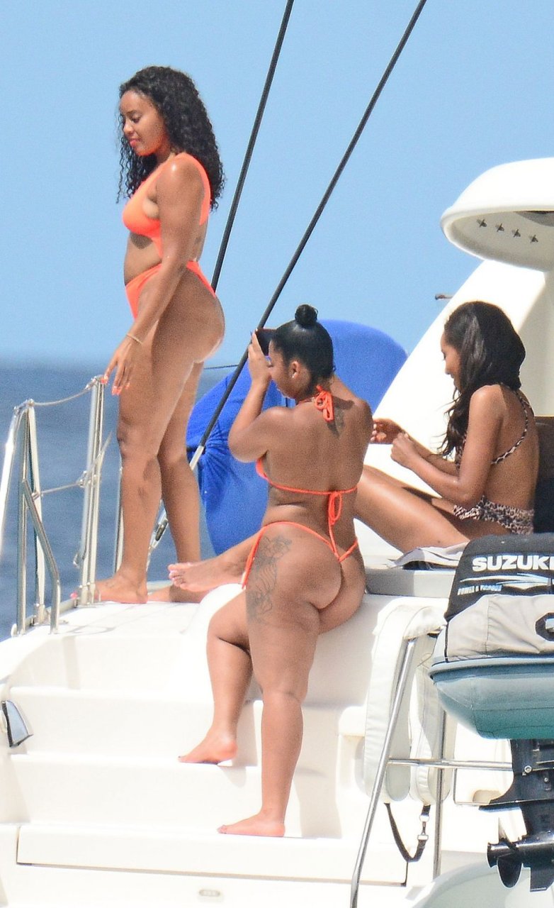 Анжела Симмонс демонстрирует тело в оранжевом бикини на катамаране с друзьями на Барбадосе, 02/07/2019. Анжела Симмонс — 31-летняя американская звезда реалити-шоу (Run’s House, Daddy’s Girls) и дизайнер обуви/одежды.