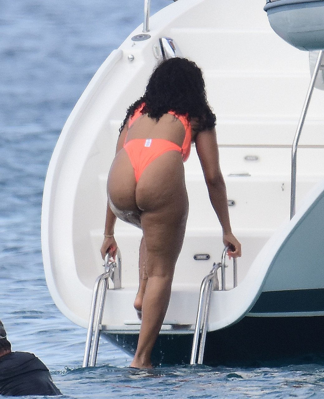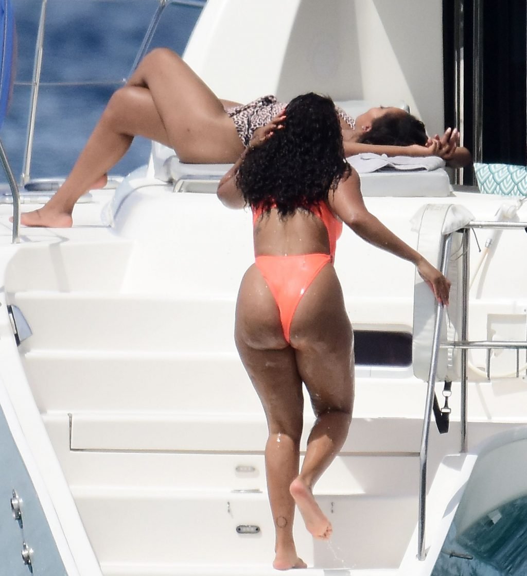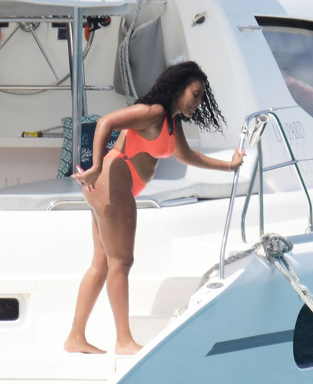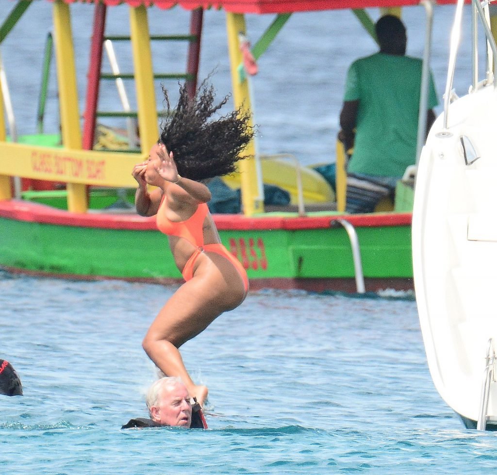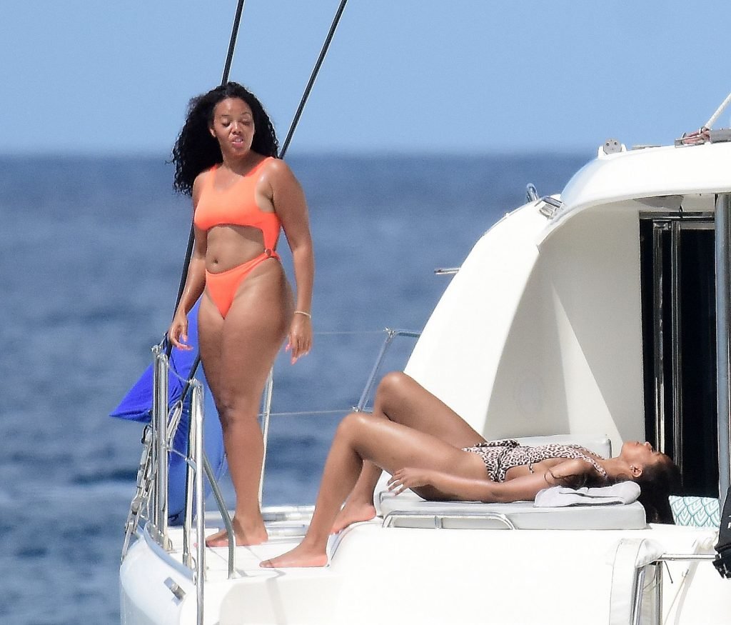 Анжела Симмонс демонстрирует тело в оранжевом бикини на катамаране с друзьями на Барбадосе, 02/07/2019. Анжела Симмонс — 31-летняя американская звезда реалити-шоу (Run’s House, Daddy’s Girls) и дизайнер обуви/одежды.