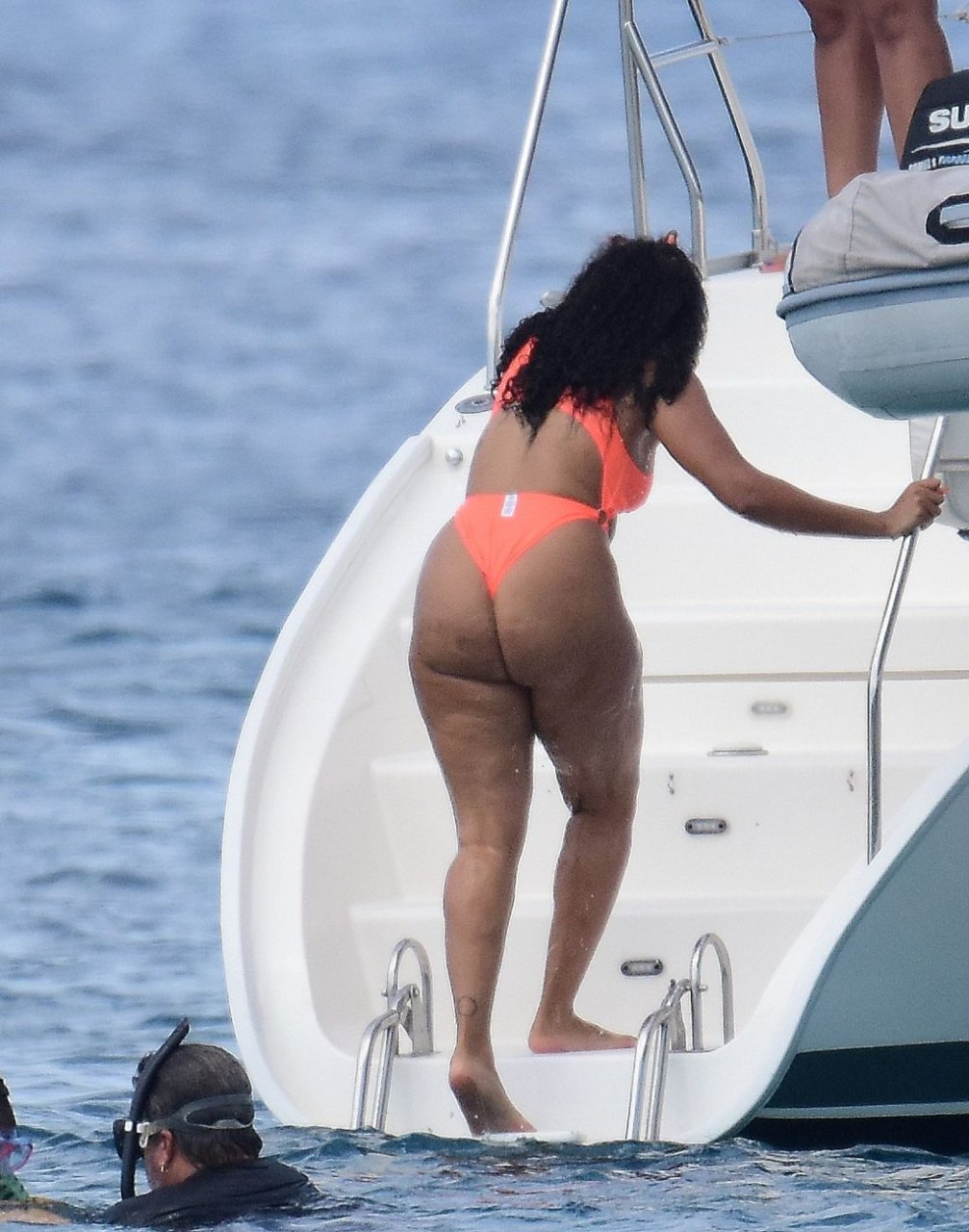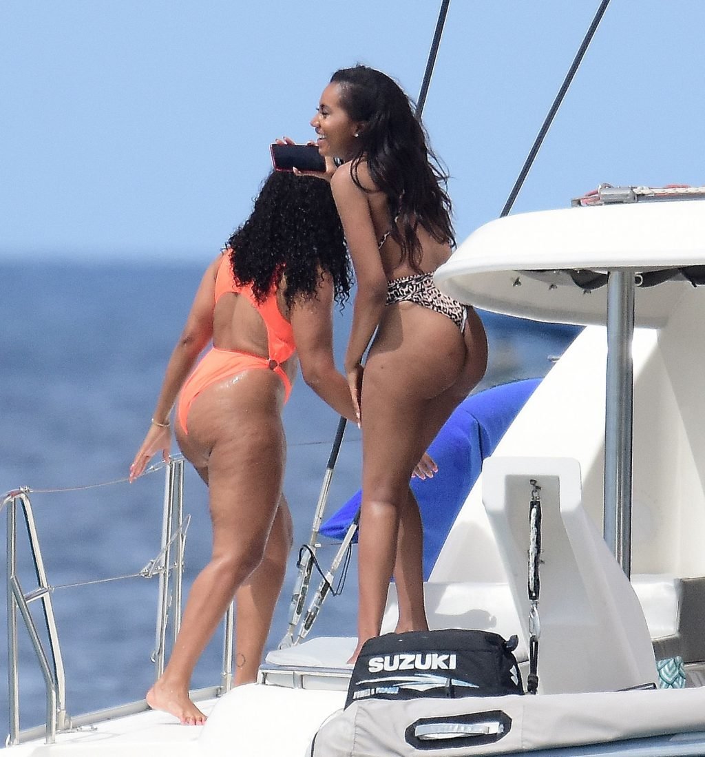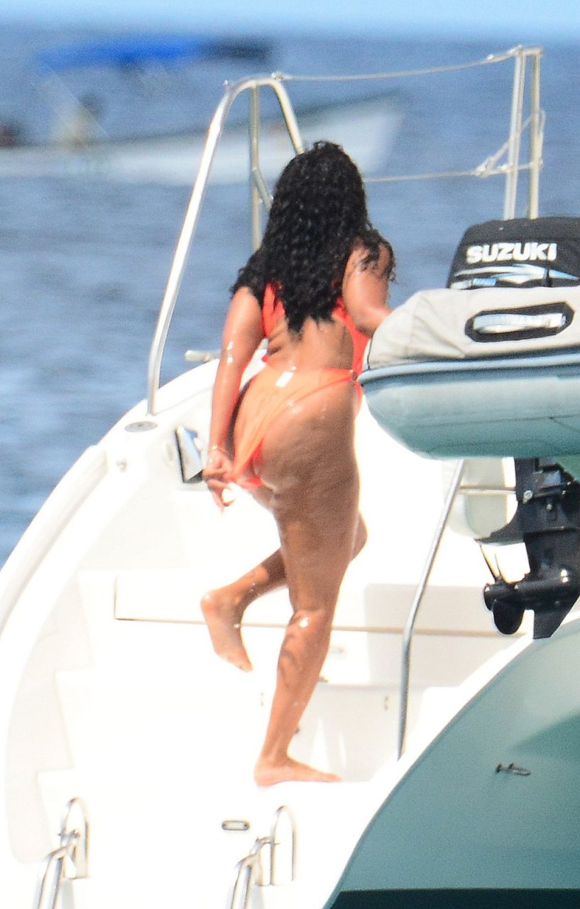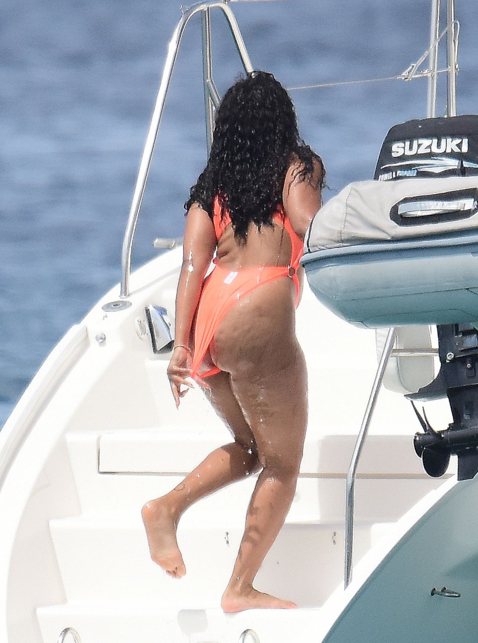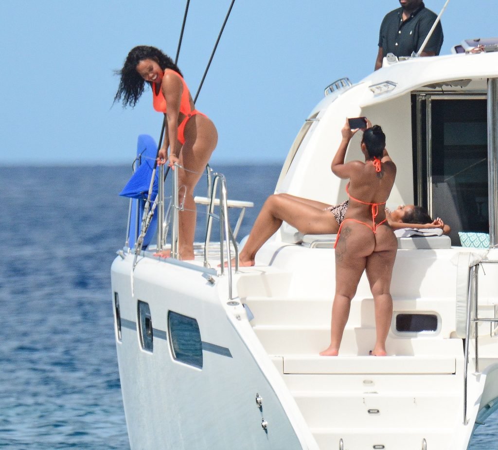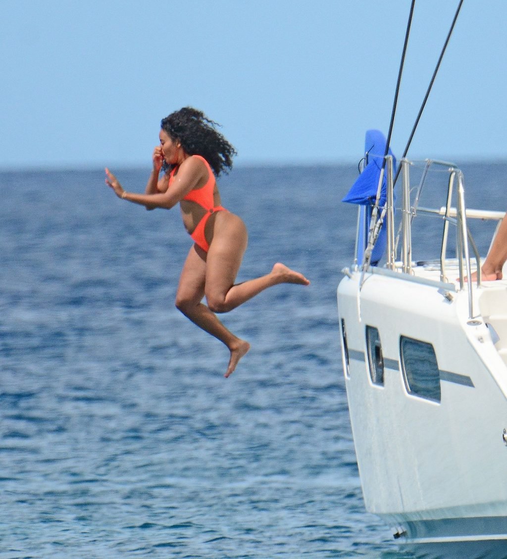 Анжела Симмонс демонстрирует тело в оранжевом бикини на катамаране с друзьями на Барбадосе, 02/07/2019. Анжела Симмонс — 31-летняя американская звезда реалити-шоу (Run’s House, Daddy’s Girls) и дизайнер обуви/одежды.