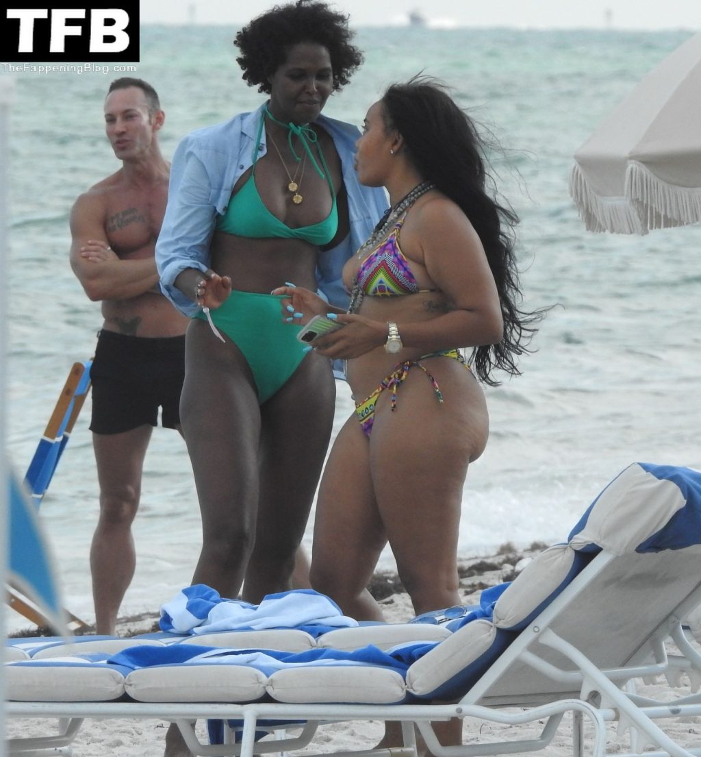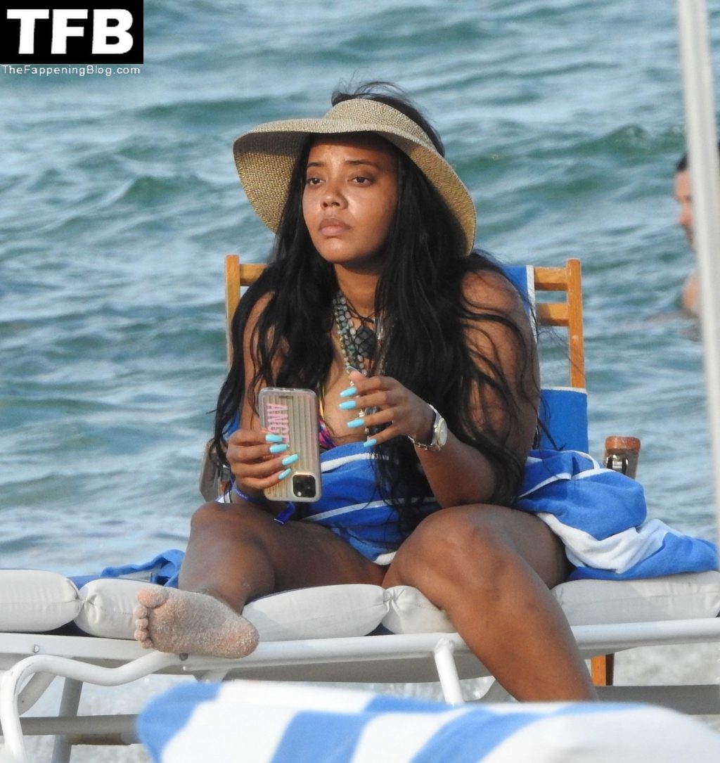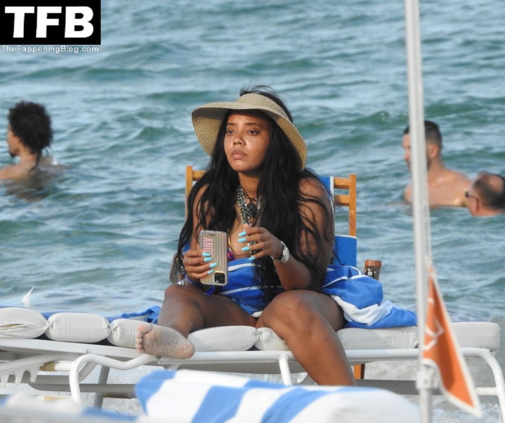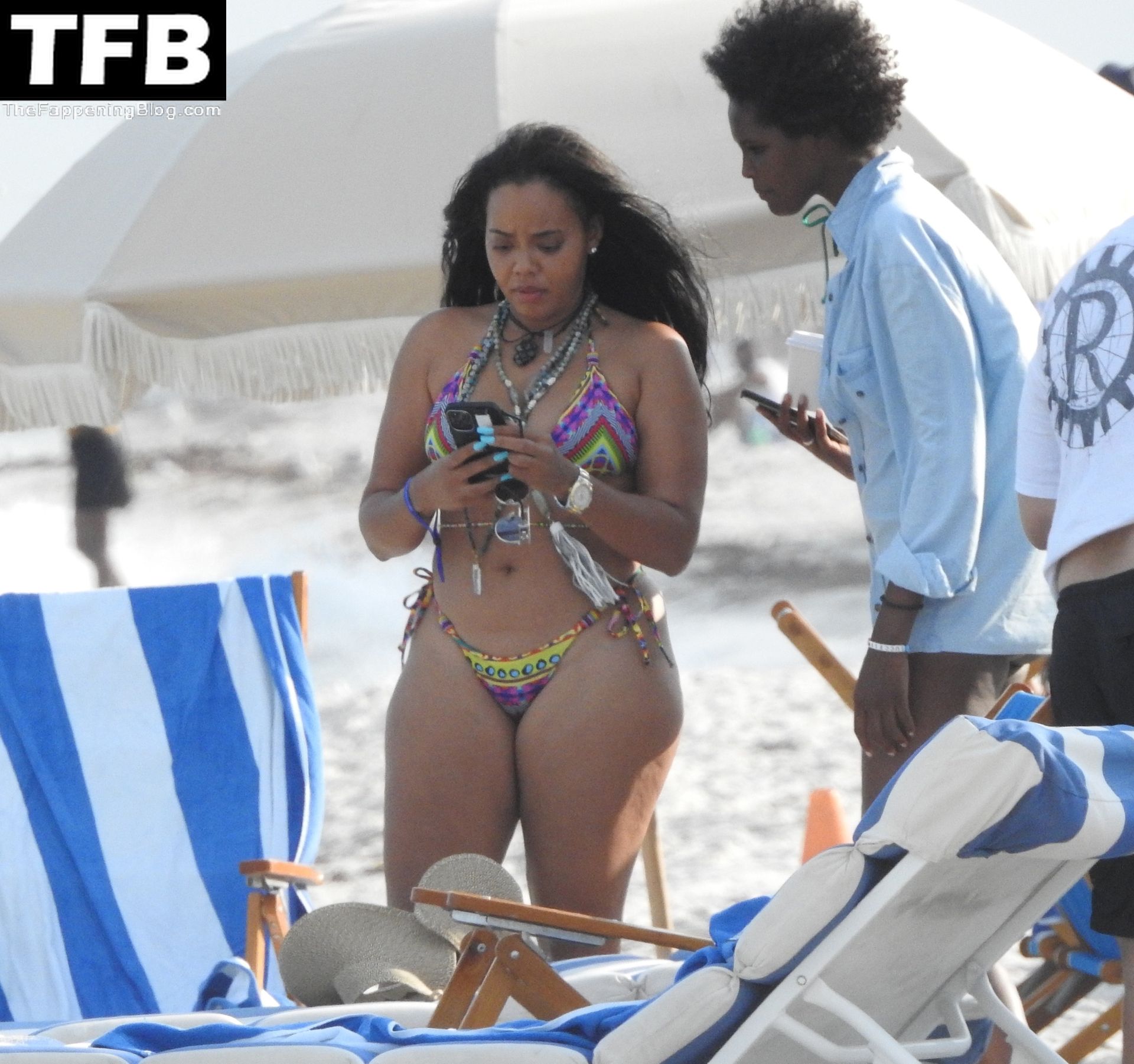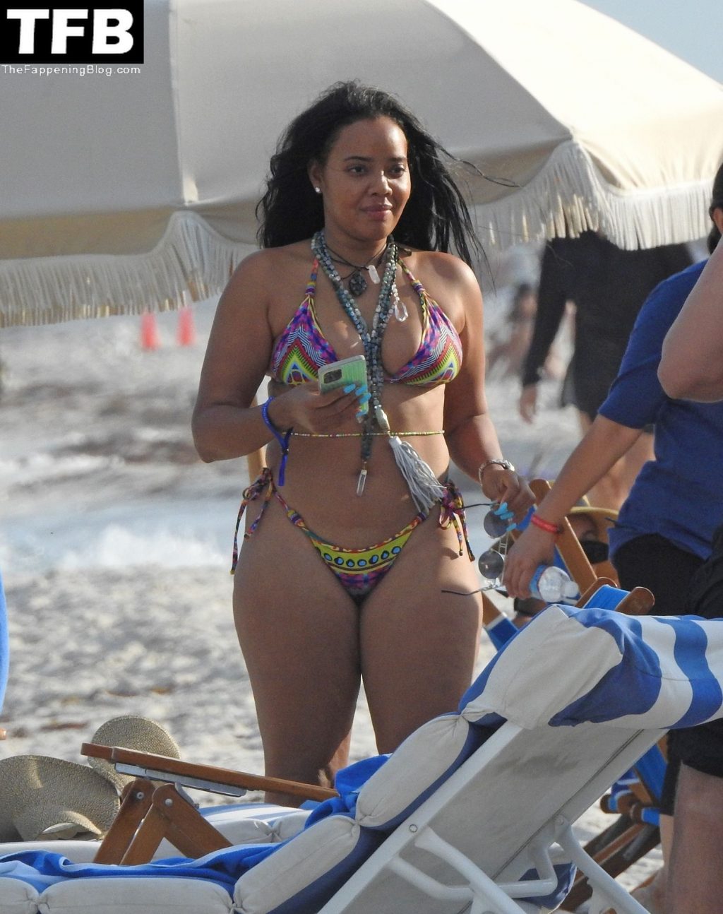 American reality television star Angela Simmons was pictured wearing a sexy multi-colored bikini in Miami Beach.