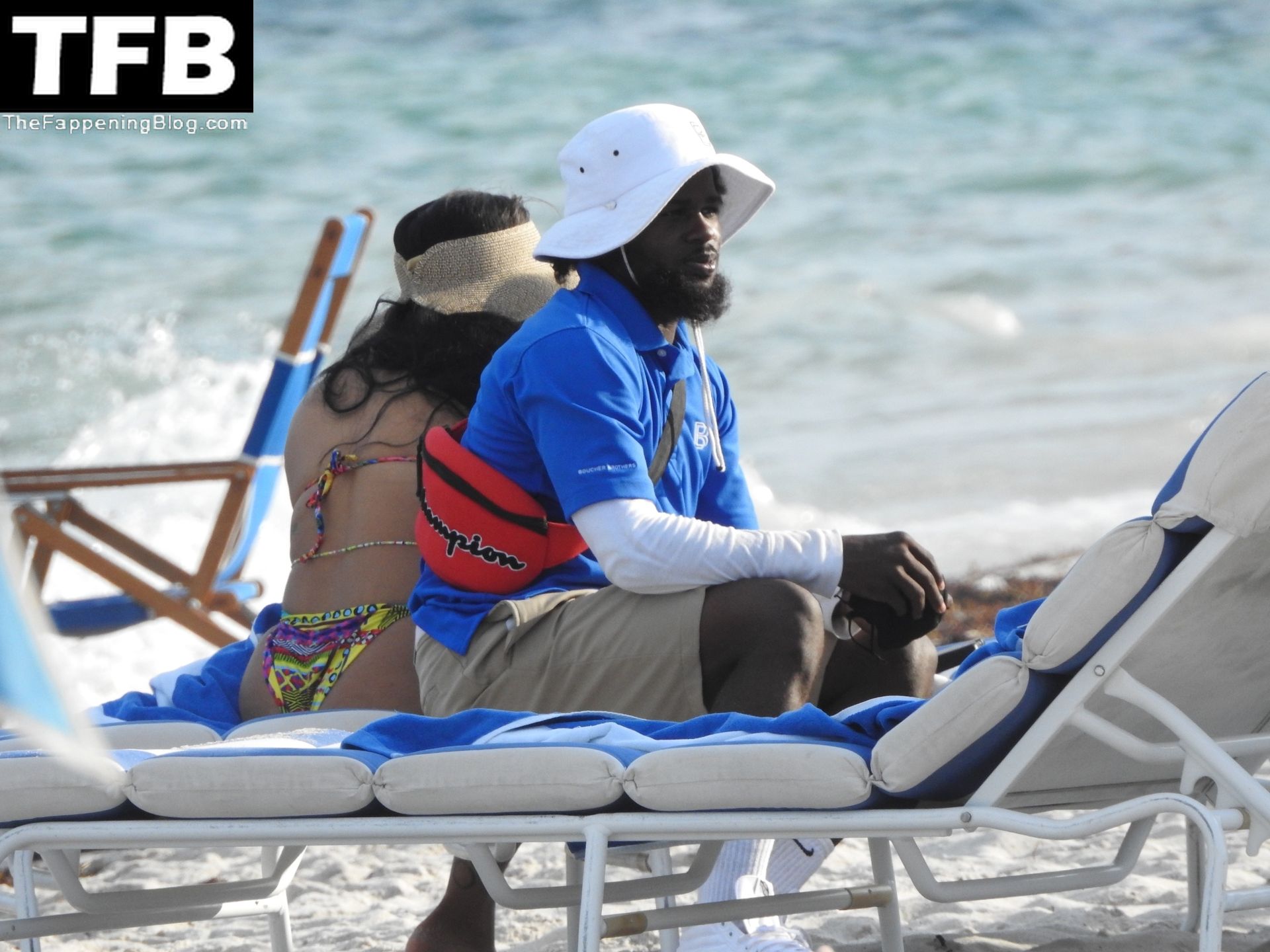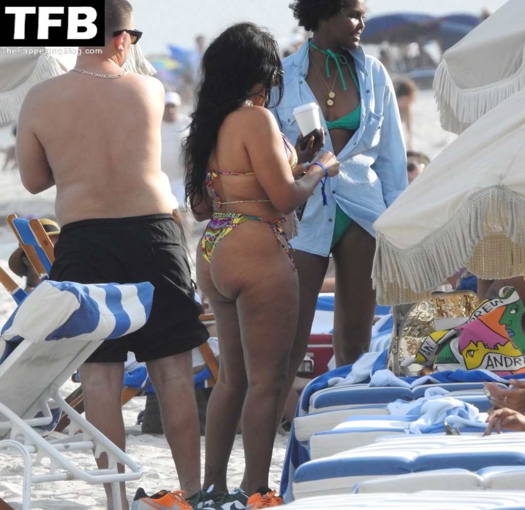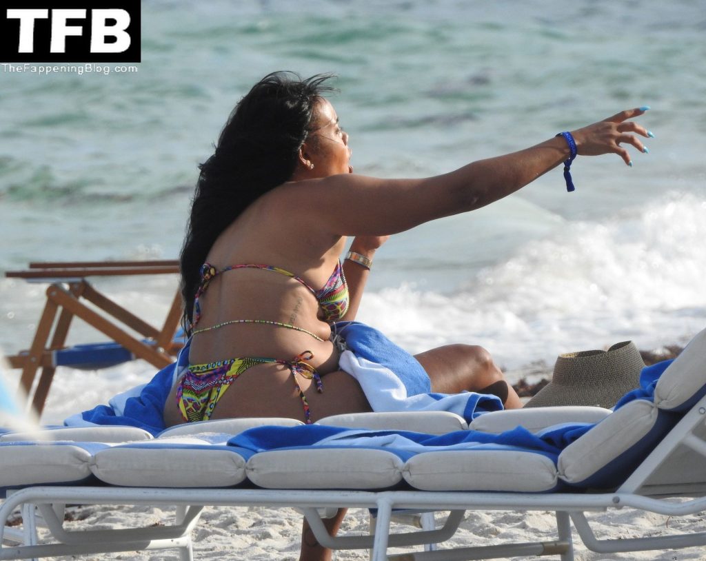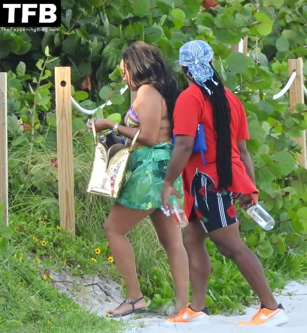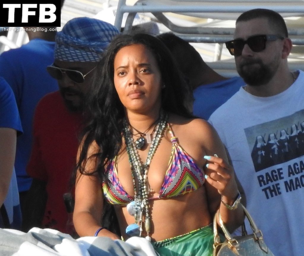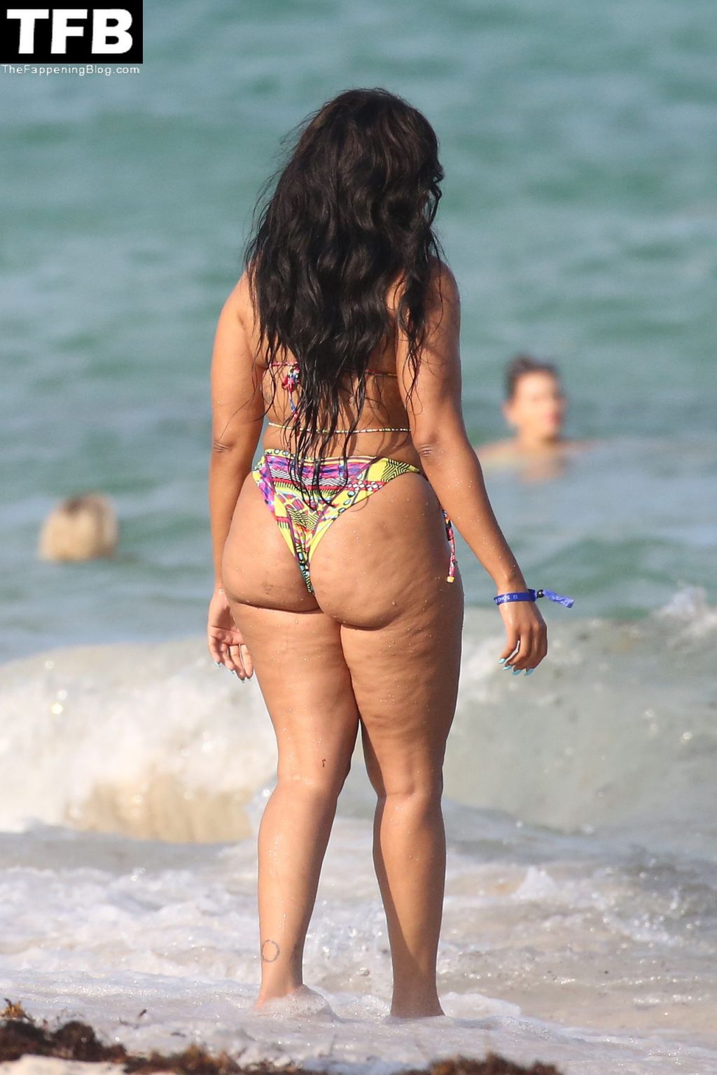 American reality television star Angela Simmons was pictured wearing a sexy multi-colored bikini in Miami Beach.