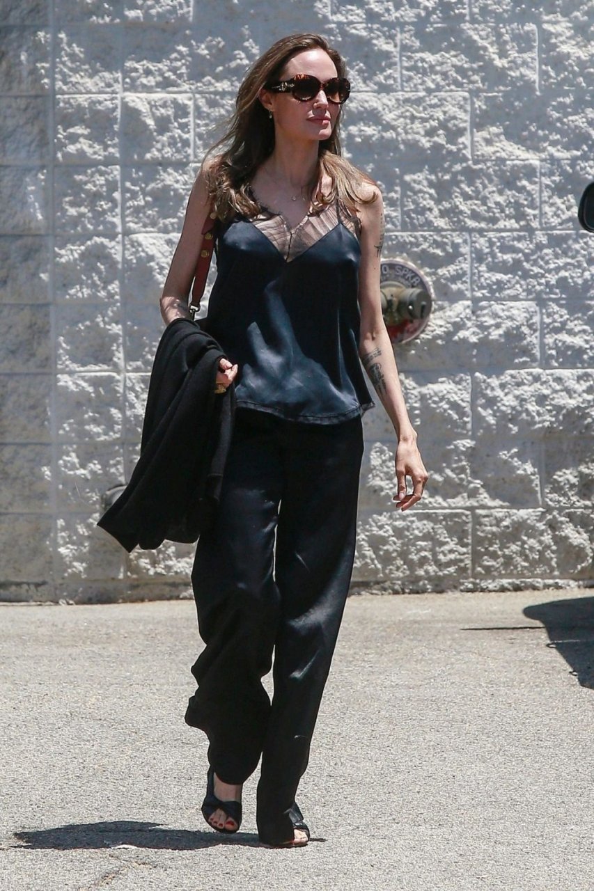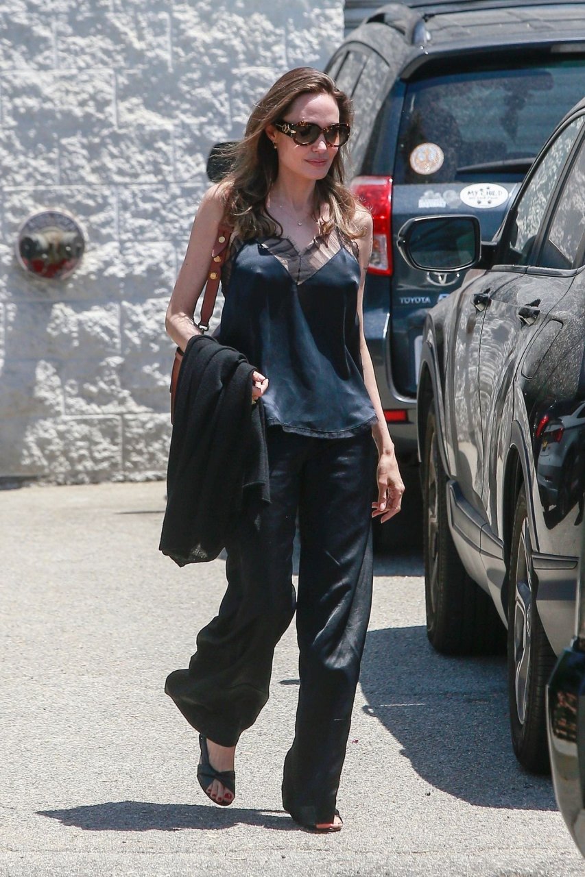 Анджелина Джоли поражает своим образом в полностью черном наряде, выходя из салона к своей машине, выглядя потрясающе и обновленной – Лос-Анджелес, 26.07.2019.