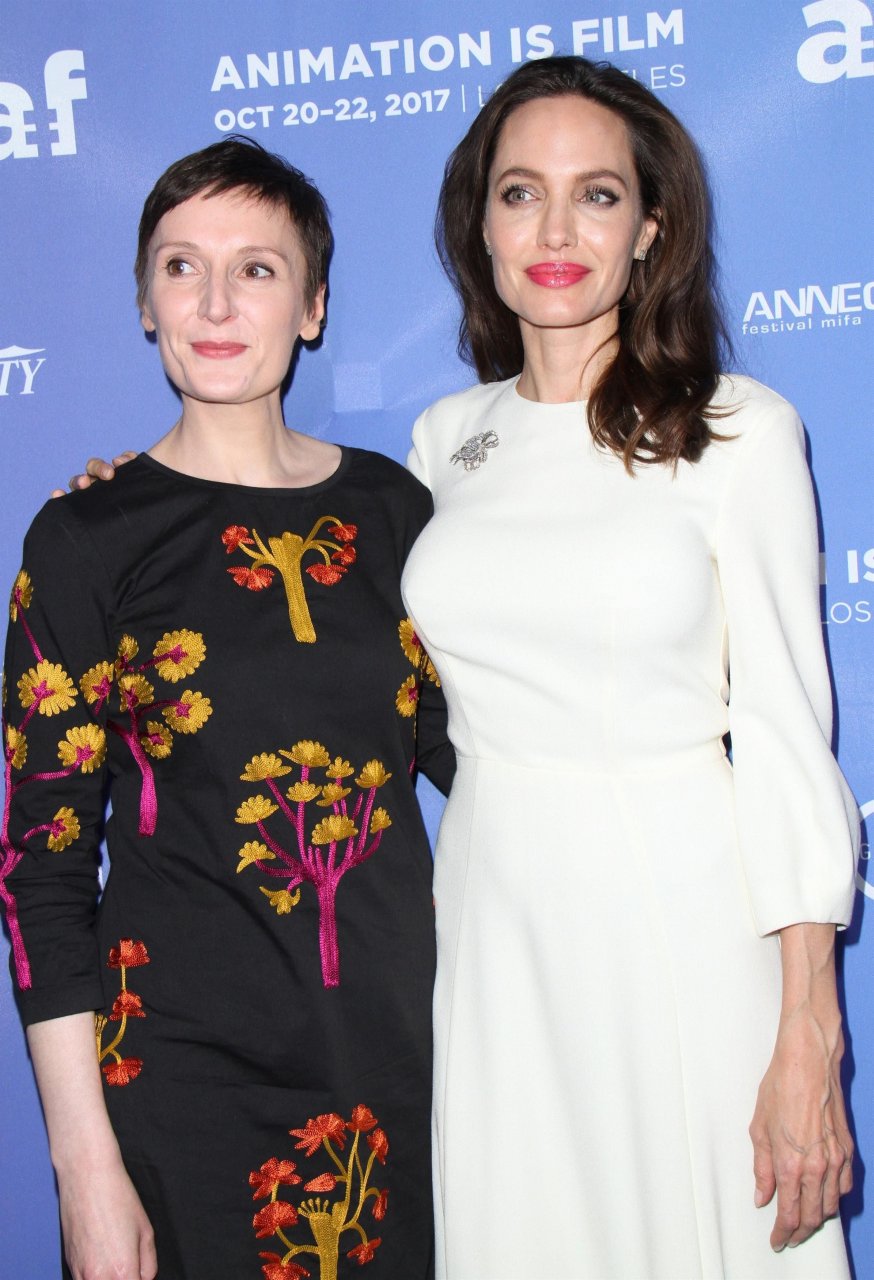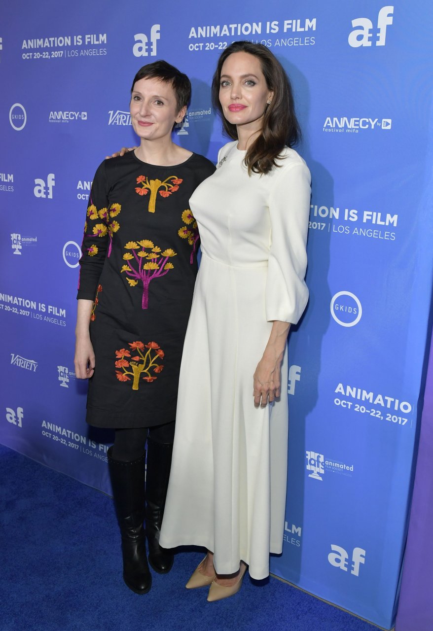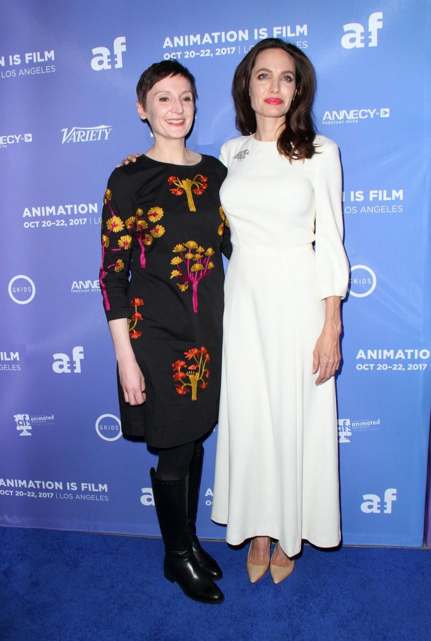 Пышногрудая Энджелина Джоли посещает премьеру фильма “Хлебороб” в Лос-Анджелесе, 20.10.2017. Энджелина Джоли — американская актриса (Original Sin (2001)). Возраст – 42 года.
