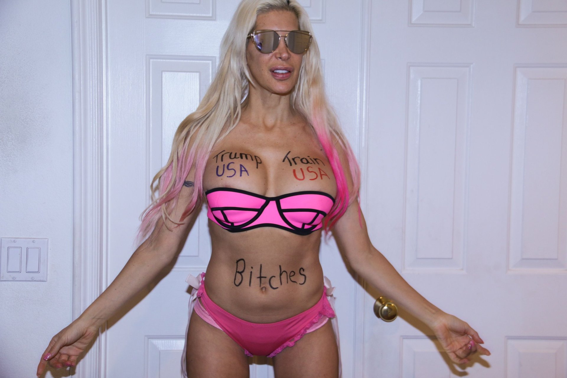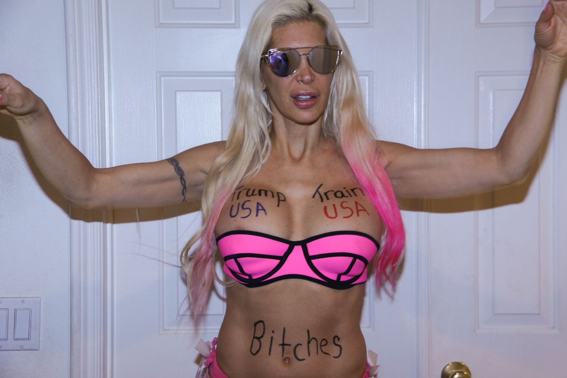 Angelique Morgan носит сексуальный розовый бикини в Малибу, 09.11.2016. Искусственные груди для Трампа. Angelique «Frenchy» Morgan — французская звезда реалити-шоу, актриса, модель и экзотическая танцовщица. Возраст: 41 (22 сентября 1975).