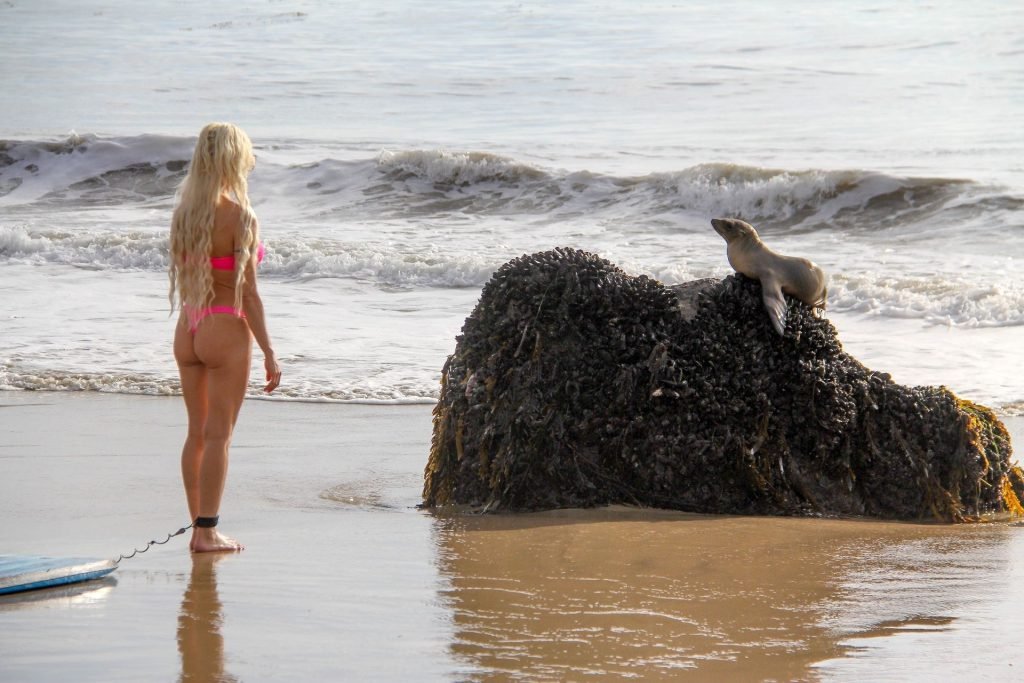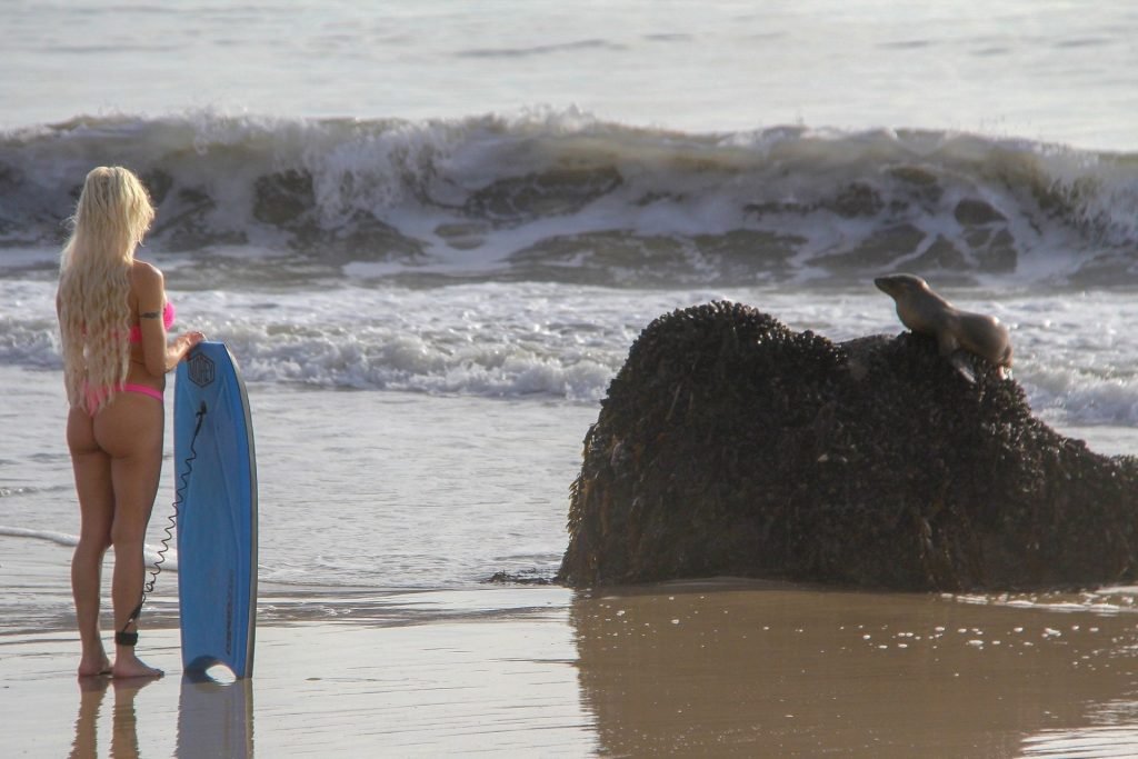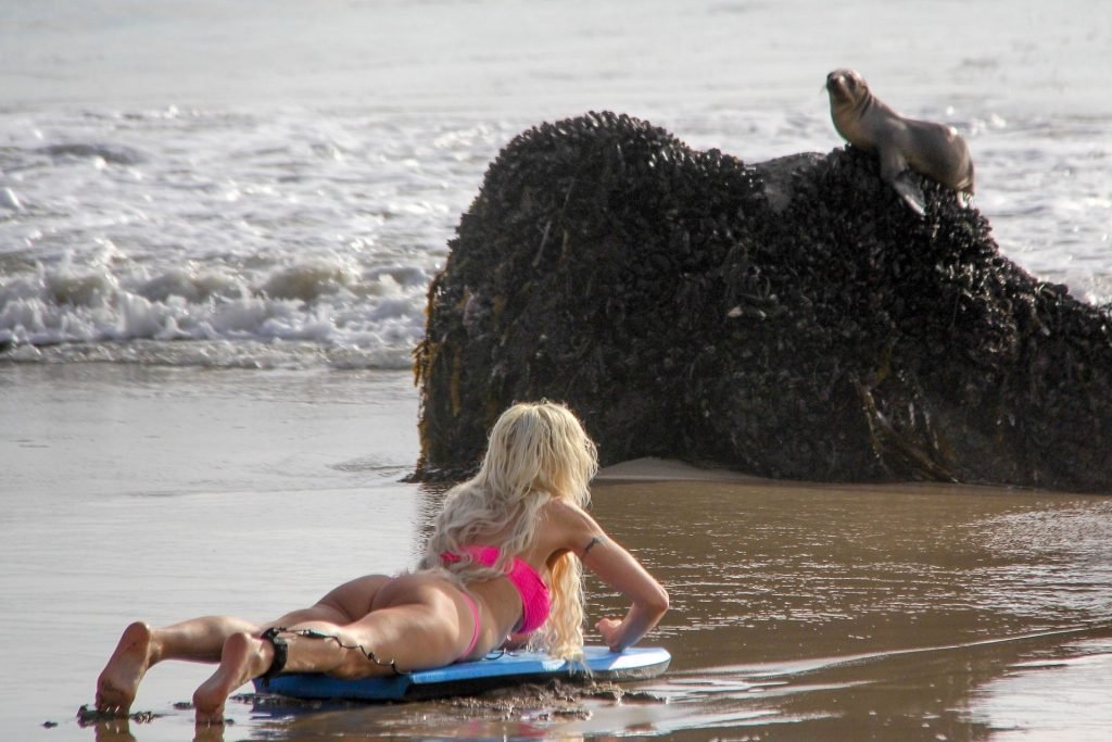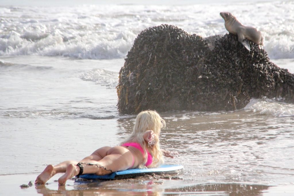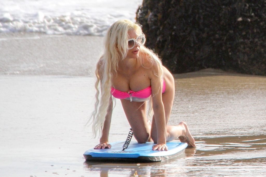 Блондинка Анджелика “Френчи” Морган была замечена в розовом бикини на пляже Малибу, демонстрируя свои навыки бодибординга, 01/03/2019.