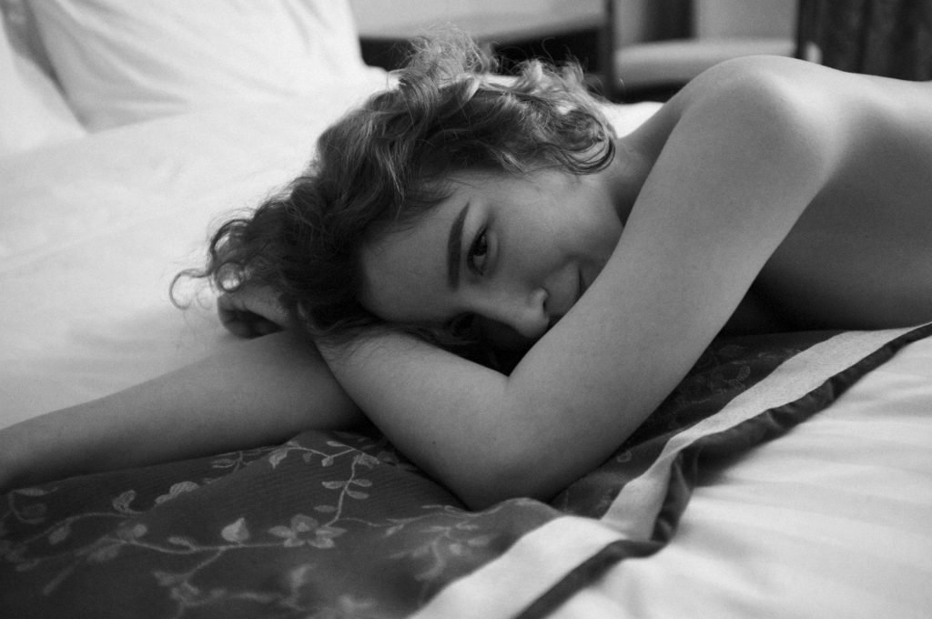 Пышногрудая любительская российская модель Анна Готина позирует обнажённой в чёрно-белой фотосессии Дениса Николенко (2019).