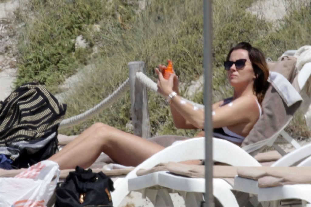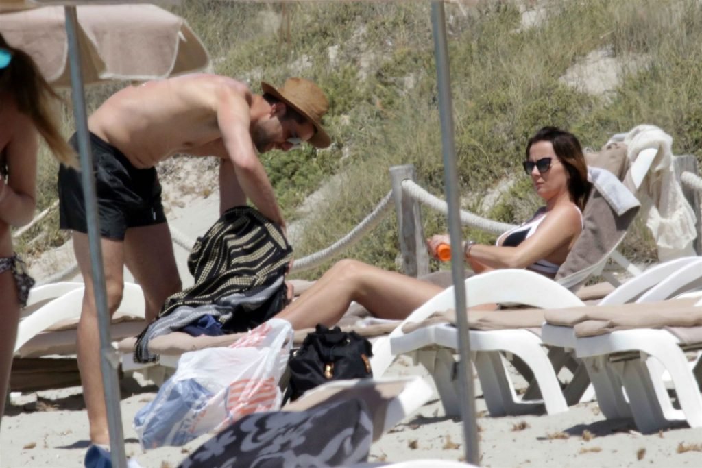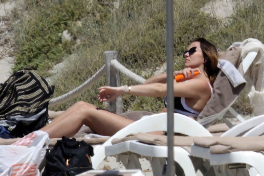Вратарь польской сборной и клуба Вест Хэм Юнайтед Лукаш Фабиански проводит свободное время с женой Анной Грыгер в черно-белом бикини и семьей на отдыхе в Форментере, 15.05.2019.