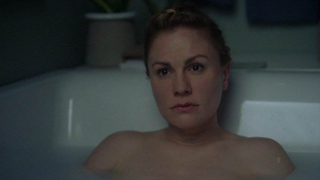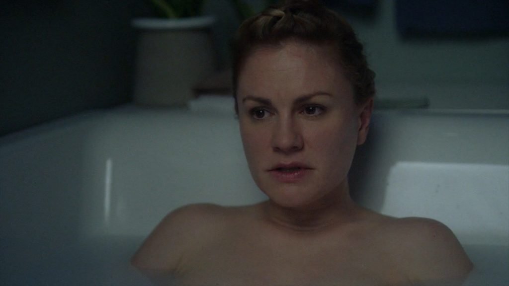 Смотрите новое обнажённое видео Анны Пакуин из сериала Случай (2019) сезон 5 серия 1 (s05e01), где вы можете увидеть её топлесс. Грудь Анны видна чуть выше и чуть ниже уровня воды, когда она сидит в ванне и разговаривает с чёрным парнем!