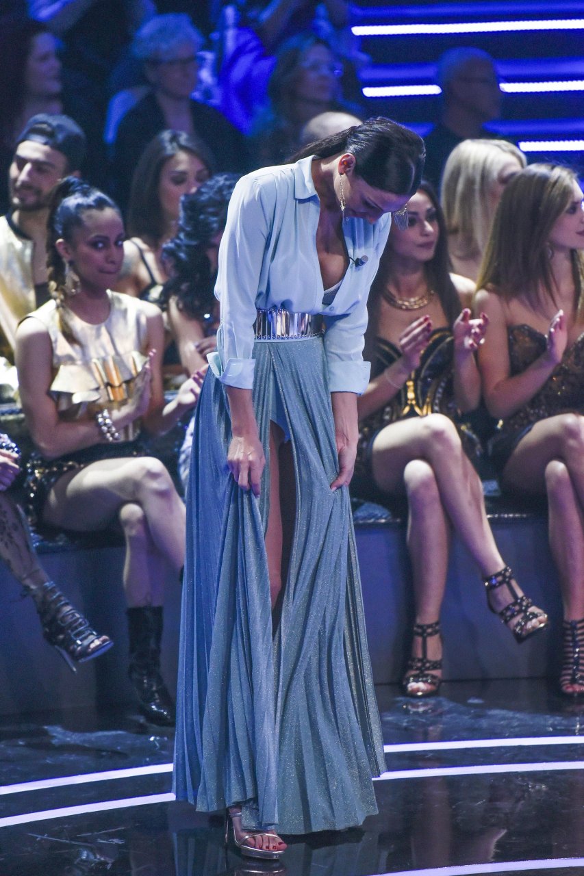 Анна Татанжело переживает сбой в гардеробе на итальянском телешоу “I migliori anni” (Лучшие годы), 28.04.2017. Анна Татанжело — итальянская поп-певица и телеведущая. Возраст: 30 (родилась 9 января 1987).